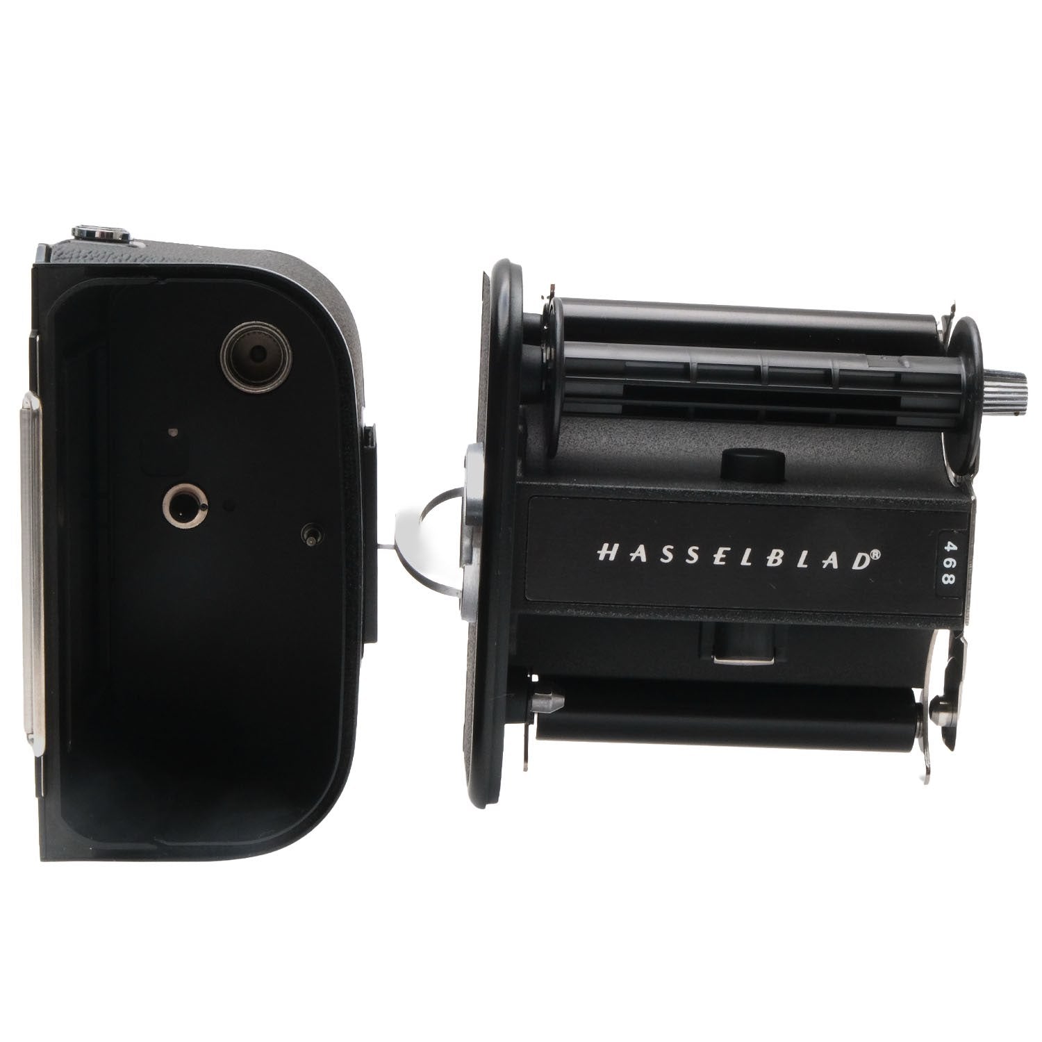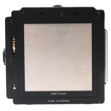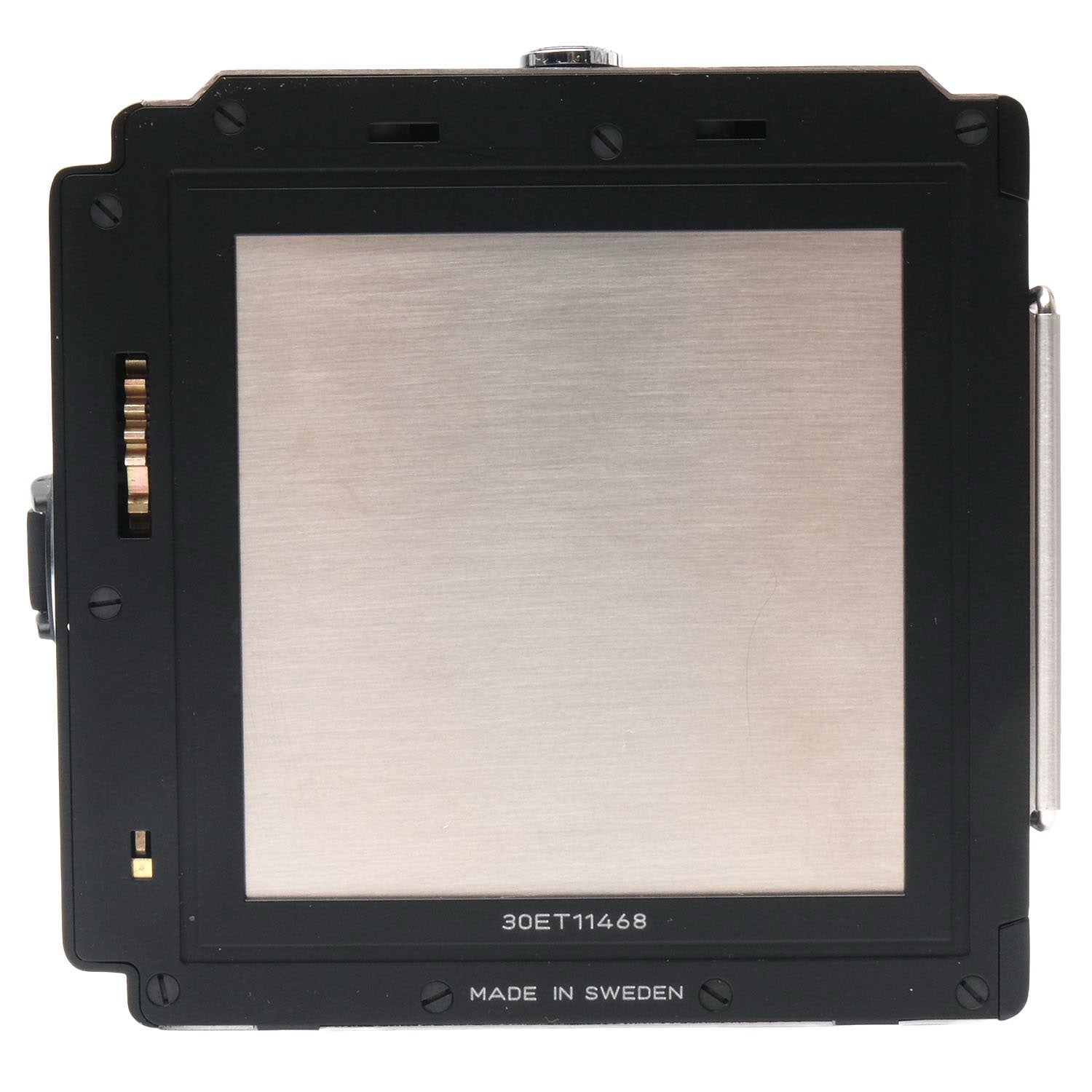 This Hasselblad A12 Type III Film Back (Black), #30ET11468, is in excellent condition with only faint handling wear. I rate it cosmetically a (10-). The back is in proper working order; film advances properly and the film holder has a matching serial number. It includes a darkslide and the original instructions & box. Please refer to the photos for details.