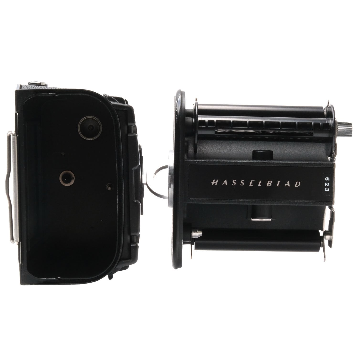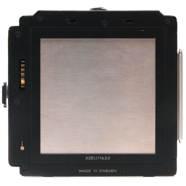 This Hasselblad A24 Type IV Film Back (Black), #32EU11623, is in great condition with minor handling wear. I rate it cosmetically a (9). The back is in proper working order; film advances properly and the film holder has a matching serial number. It includes a darkslide. Please refer to the photos for details.