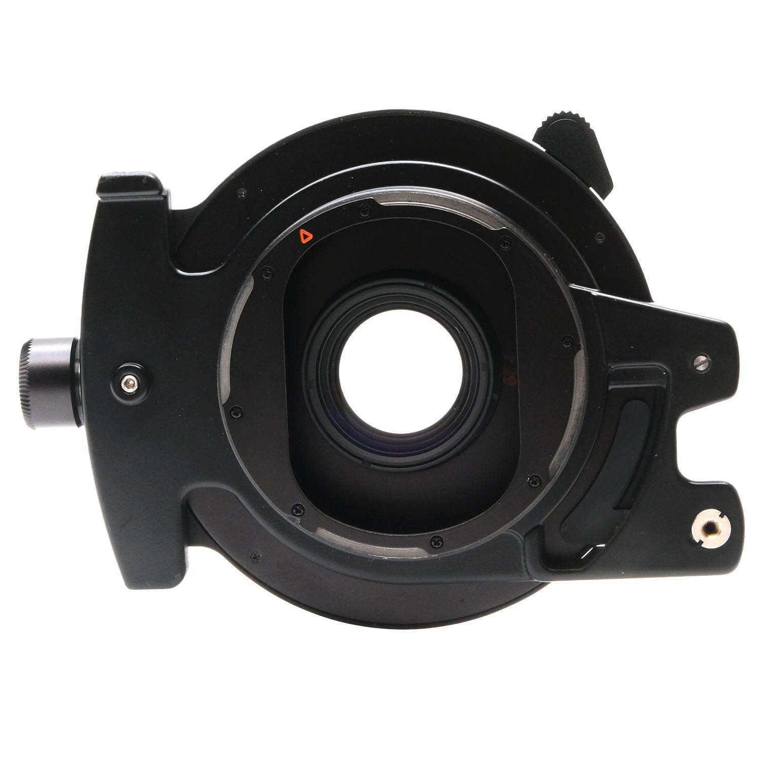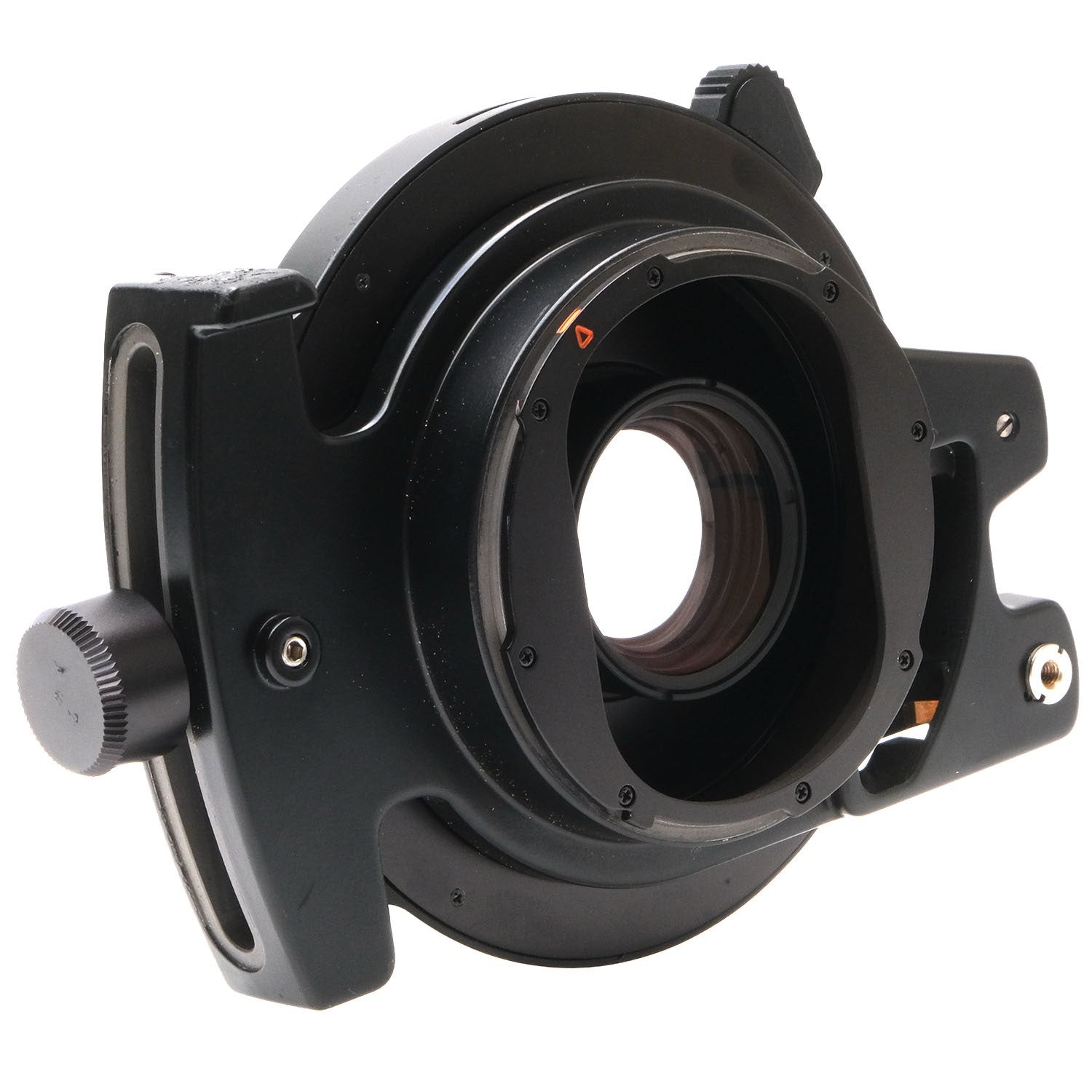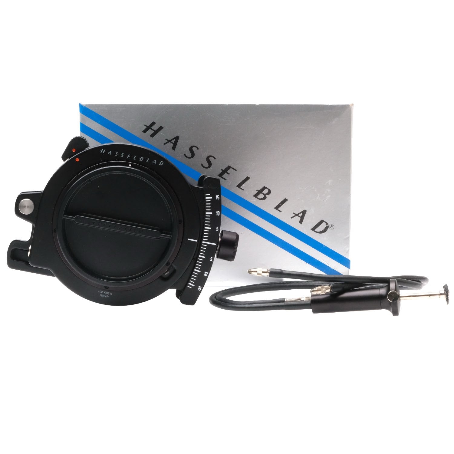 This Hasselblad PC-Mutar 1.4x Shift Converter, #7227851, is in great condition with minor handling wear. I rate it cosmetically a (9+). The converter is in proper working order; all of the components loosen & tighten and have a full range of motion and the glass is clear. It includes a shutter release cable, front & rear caps, and the original instructions & box. Please refer to the photos for details.