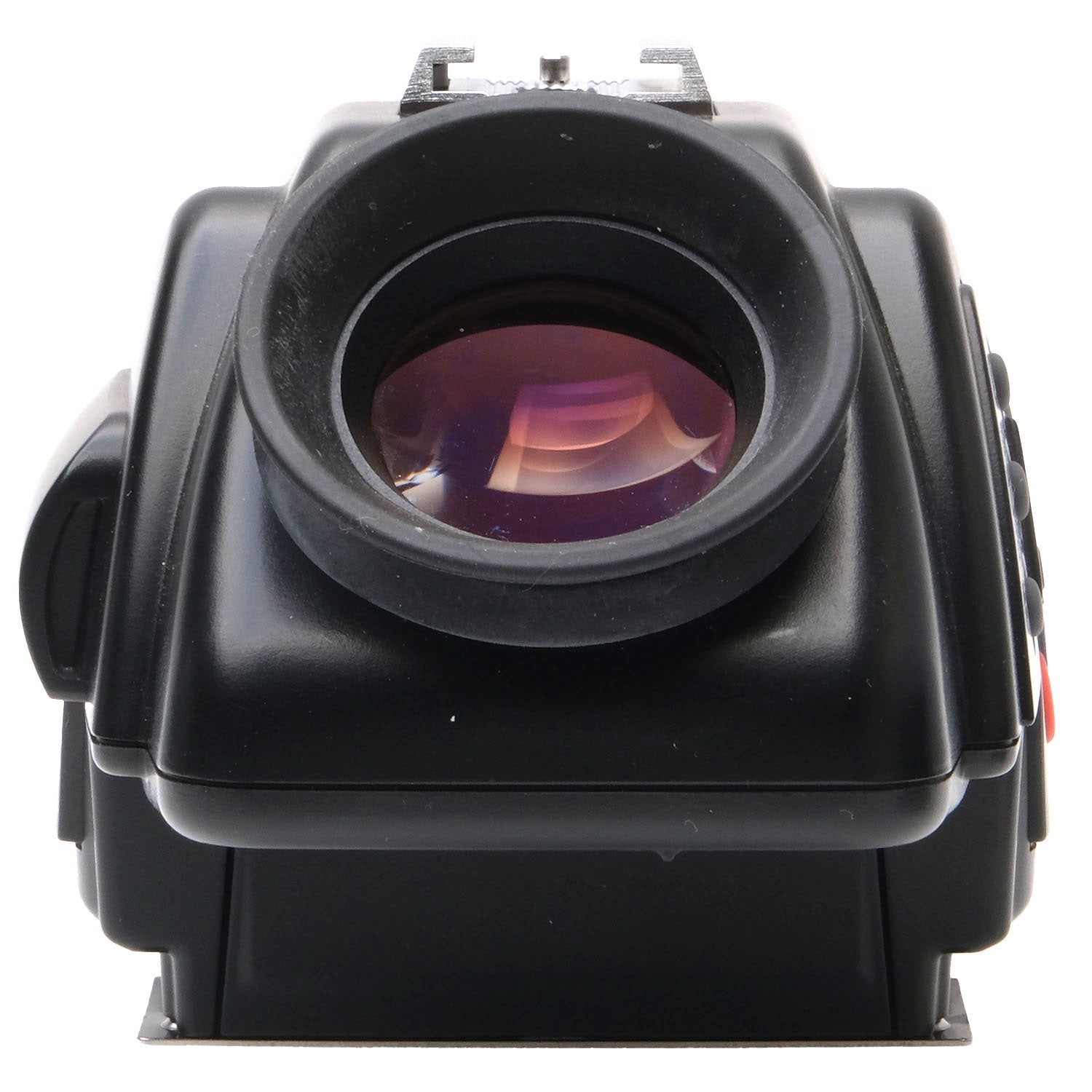 This Hasselblad PME 45 Meter Prism Viewfinder, #403SV1968, is in excellent condition with only faint handling wear. I rate it cosmetically a (10-). The viewfinder is in proper working order and ready to be used. The glass is clear, the meter functions, and the battery compartment is corrosion-free. It includes a protective cover and the original instructions & box. It uses one (1) CR2 battery (not included). Please refer to the photos for details.
