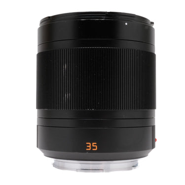 This Leica 35mm f/1.4 Summilux-TL lens is in good cosmetic condition with minor handling and edge wear found throughout; please see photos for visual reference. Cosmetically, this lens has been rated at a (8+) condition. This lens is in proper working order; the autofocus is accurate and the focus ring turns smoothly. The aperture functions properly, and the glass is clean and clear with no marks, fungus, or haze. This lens includes front and rear caps and hood.