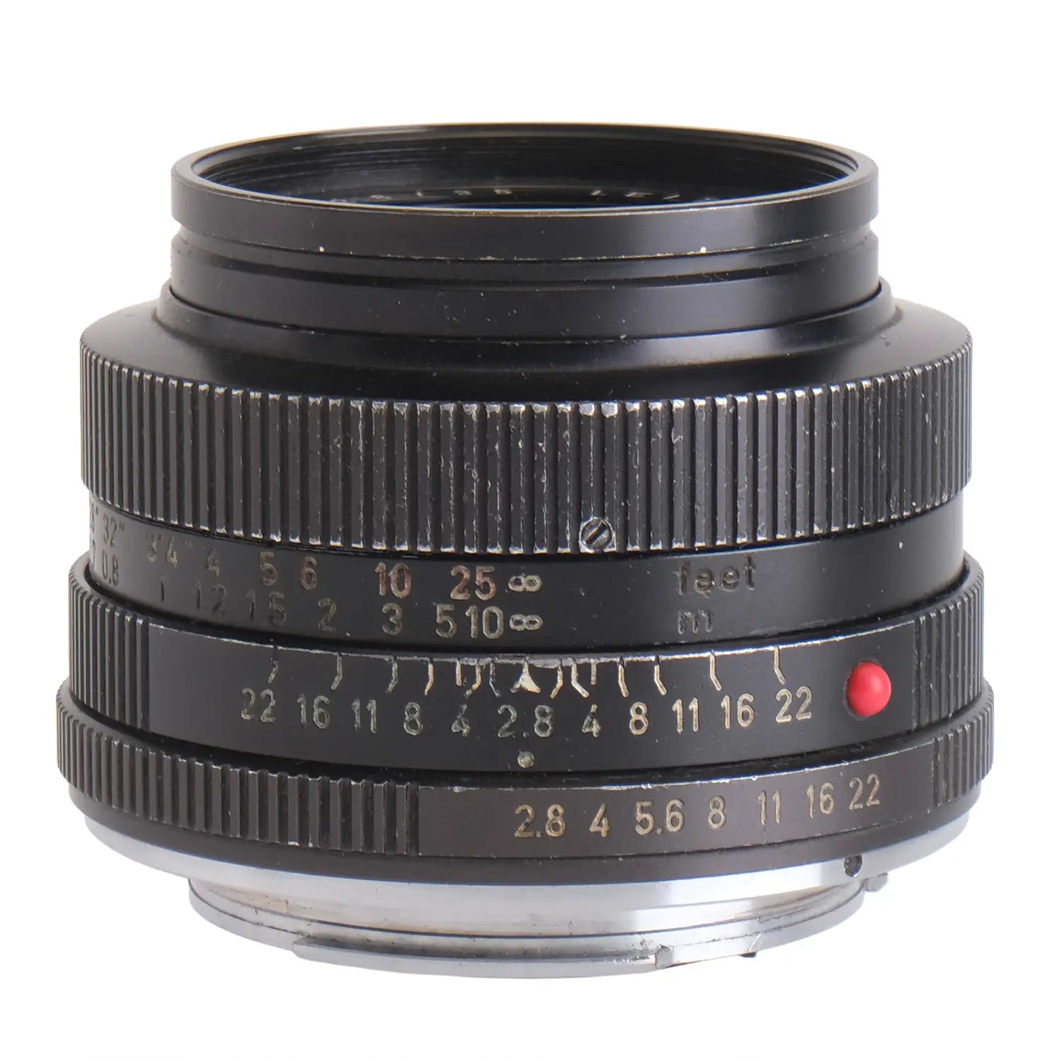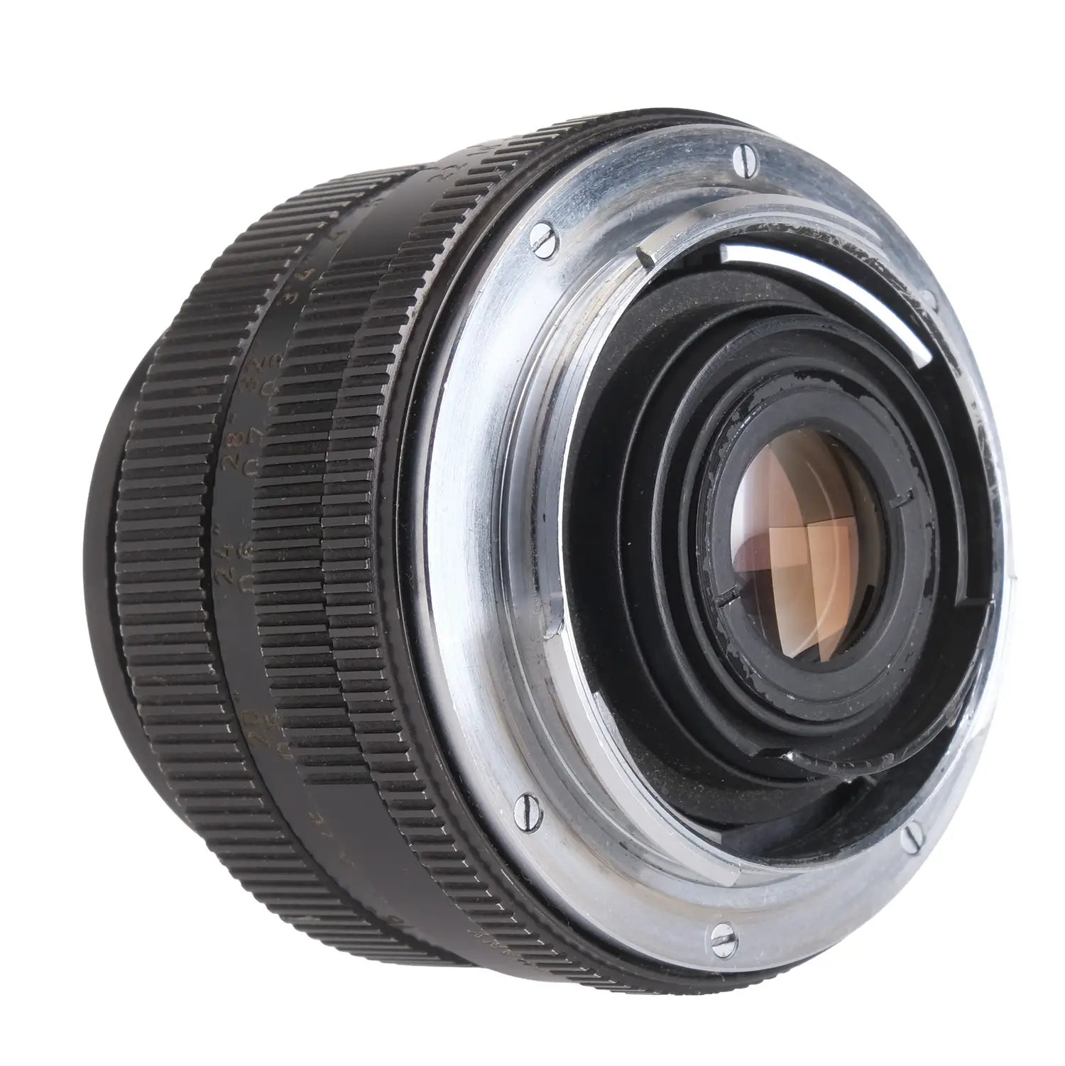 This Leica 35mm f2.8 Elmarit-R 3-Cam Lens #2364545, is in average cosmetic condition with heavy signs of handling wear found throughout, please see photos for visual reference. Cosmetically, this lens has been rated at a (8) condition. This lens is in proper working order; the aperture and focus are smooth, and the glass has minor haze which may affect image quality. There are no signs of fungus present. Please note, the aperture ring has been declicked. This lens comes with a lens shade and a rear cap only. This lens comes as is.