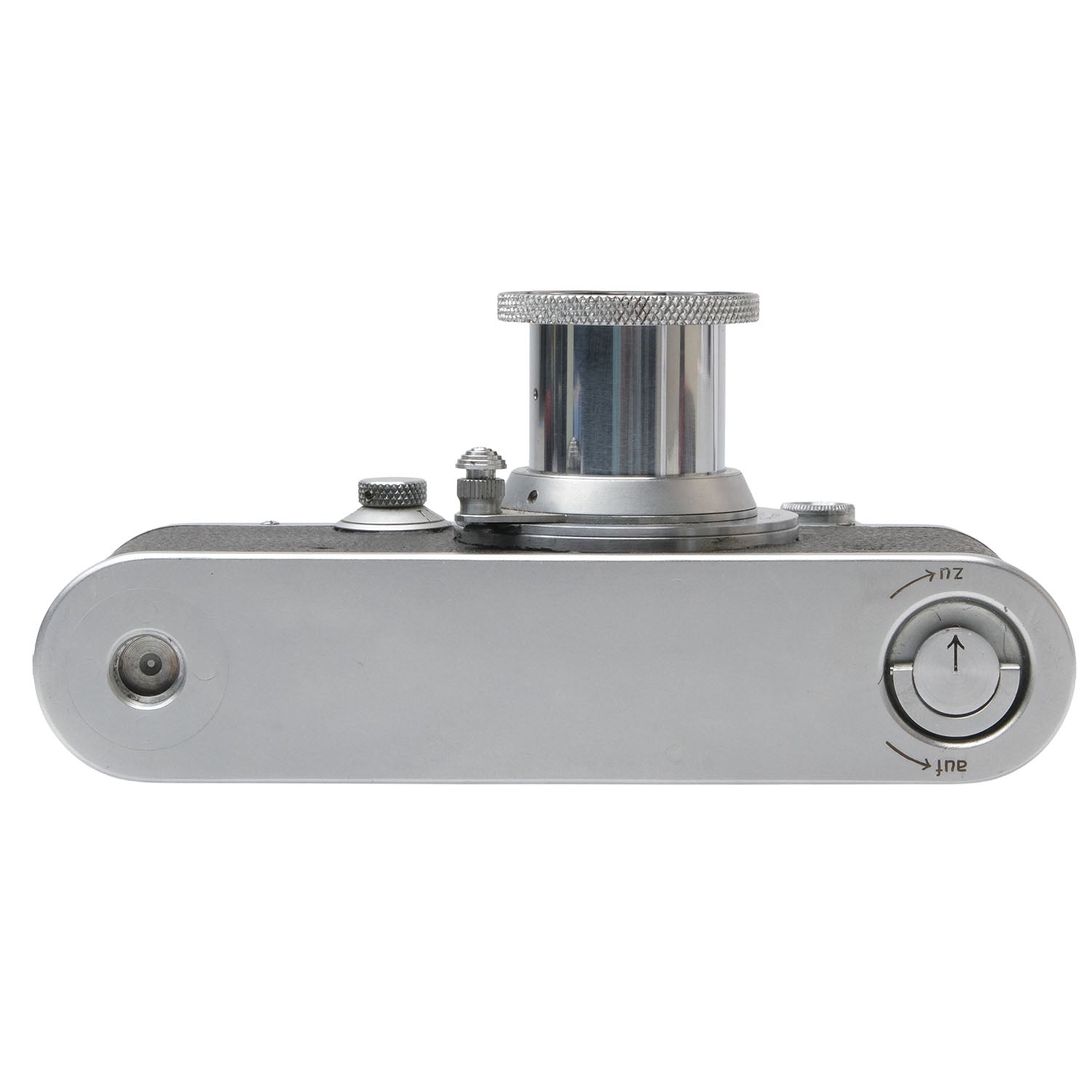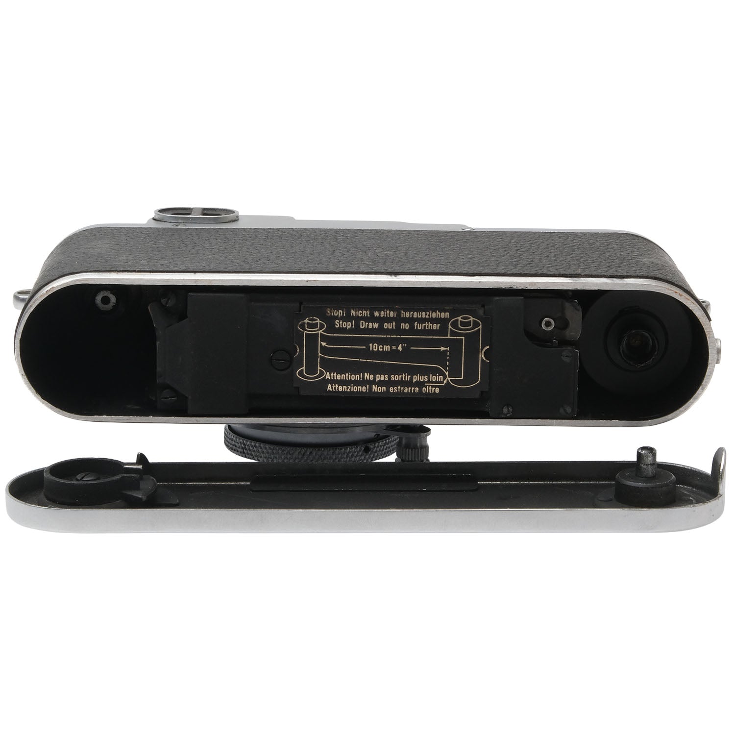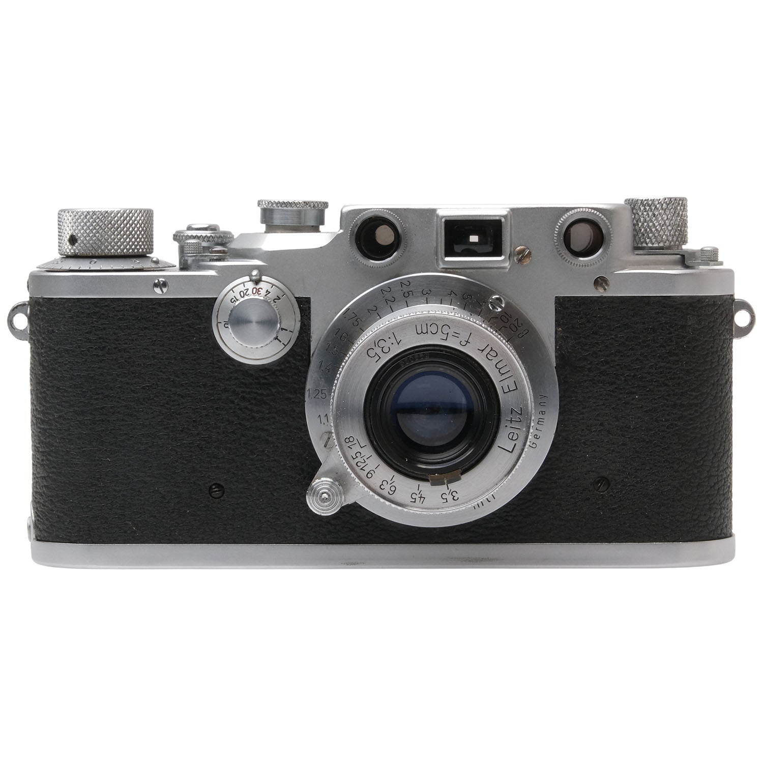 This Leica IIIc #396032, with 5cm f3.5 Elmar is in excellent condition with only faint handling wear. I rate it cosmetically at (9+) condition. The camera was just returned to us from DAG where a full overhaul was performed. The advance is smooth and the finder is clean and clear, bright and accurate. The shutter curtains are not dry and the speeds are accurate at all settings. The focus is smooth and the aperture works properly. The glass is clean and clear with no haze, marks or fungus. The front cap is included. A great set ready to use!