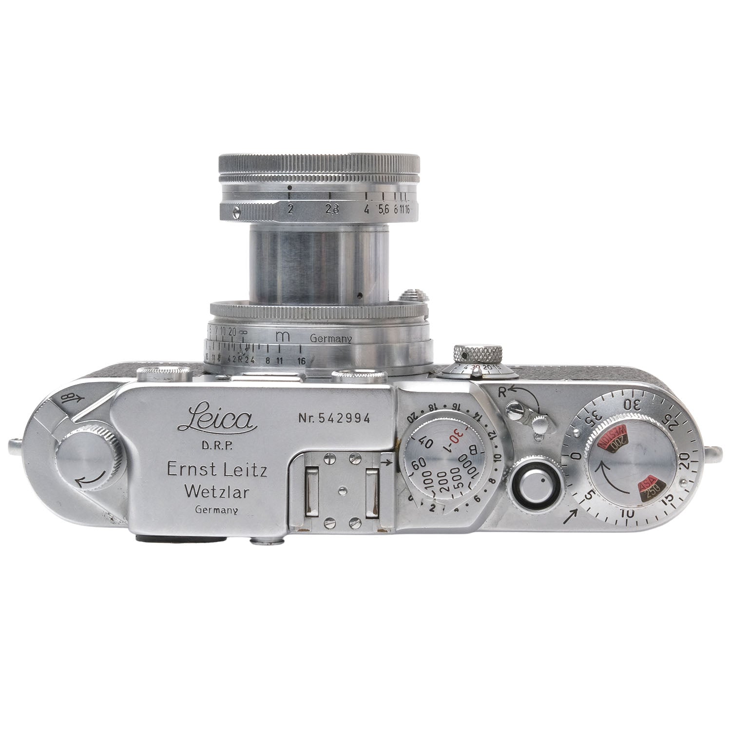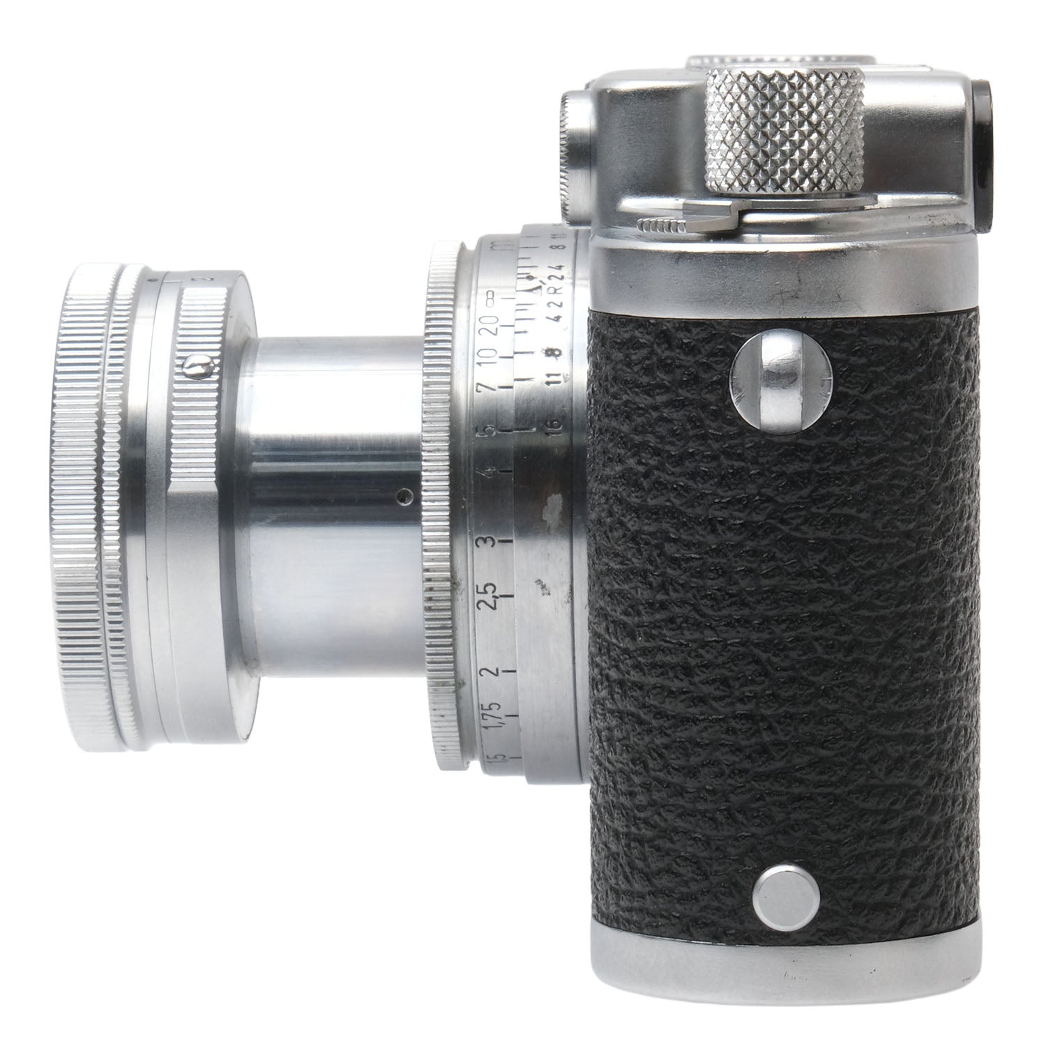 This Leica IIIf #542994, with 5cm f2 Summitar is in nice condition with only minor edge wear. I rate it cosmetically at (9) condition. The camera was just returned to us from DAG where a full overhaul was performed. The advance is smooth and the finder is clean and clear, bright and accurate. The shutter curtains are not dry and the speeds are accurate at all settings. The focus is smooth and the aperture works properly. The glass is clean and clear with no haze, marks or fungus. There is edge separation the the front group that does not affect the image quality. The front cap is included. A great set ready to use!
