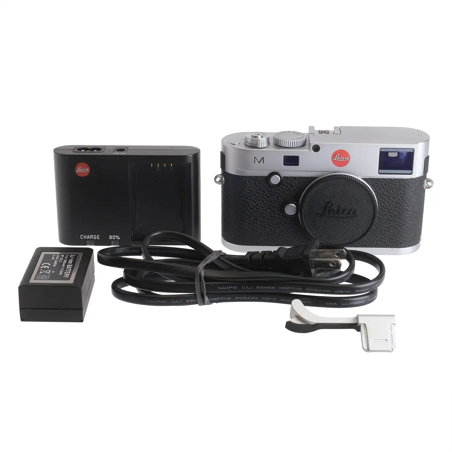 This Leica M240 Camera Silver #4715169, is in good cosmetic condition with minor signs of handling wear found throughout, please see photos for visual reference. Cosmetically, this camera has been rated at a (9) condition. This camera is in proper working order; the finder is bright and accurate, the sensor is unmarked, and the memory card slot reads and writes. This camera comes with a silver thumb grip, a battery, and a charger. This camera is ready for use!