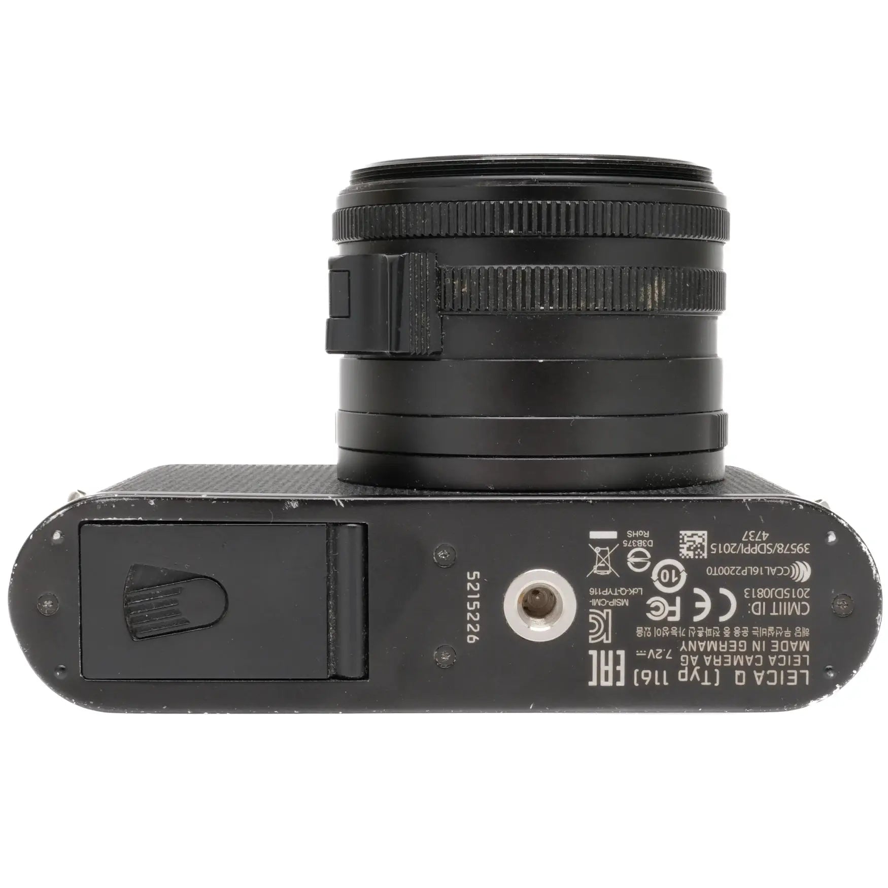 This Leica Q Typ 116, #5215226, is in Bargain condition with edge and handling wear. I rate it cosmetically at (7+) condition. The card slot and ports are good and the camera is in good working order. There is no shade, front cap or charging block. The original strap, some cable and the inner box are included. A great deal on an iconic digital camera!