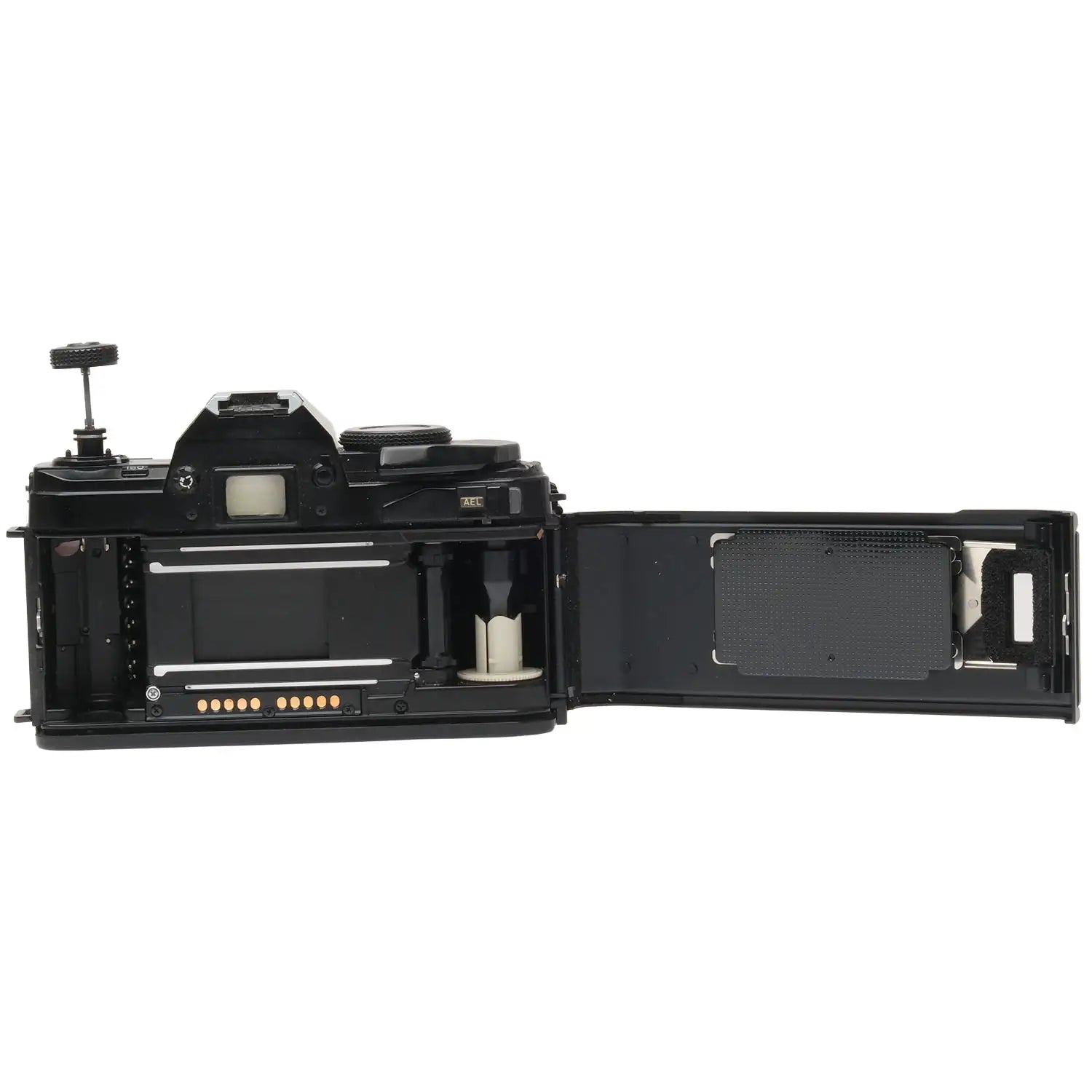 This Minolta Maxxum 9000, #17012423, is in good condition with some handling wear. I rate it cosmetically an (8+). The camera is in proper working order; film advances properly, the meter functions, and the battery compartment is corrosion-free. The top LCD display is broken, but not necessary to use the camera. The included Minolta Maxxum AF 35-105mm f3.5-4.5 and Minolta Maxxum AF 70-210mm f4 lenses are in similar condition, also rated an (8+). The focus rings are smooth, but the zoom rings are a bit stiff. The autofocus and apertures function properly and the glass is clean and clear with no haze, marks, or fungus. There are a few faint specks of dust inside, but they do not affect image quality. The included Minolta MD-90 is also rated an (8+). The electronics function and the battery compartment is corrosion-free. This listing also includes front & rear caps for both lenses, a lens hood for the 35-105mm, and body cap. The camera body uses two (2) AA batteries and the motor drive uses twelve (12) AA batteries (not included). Please refer to the photos for details.
