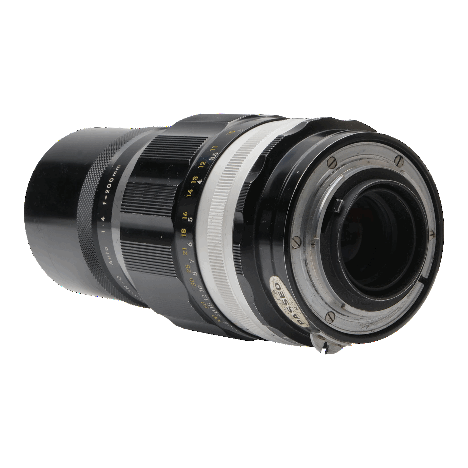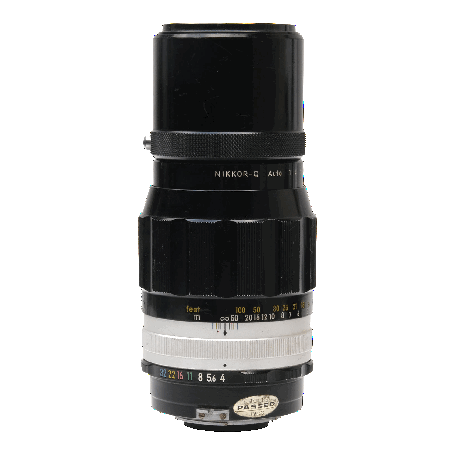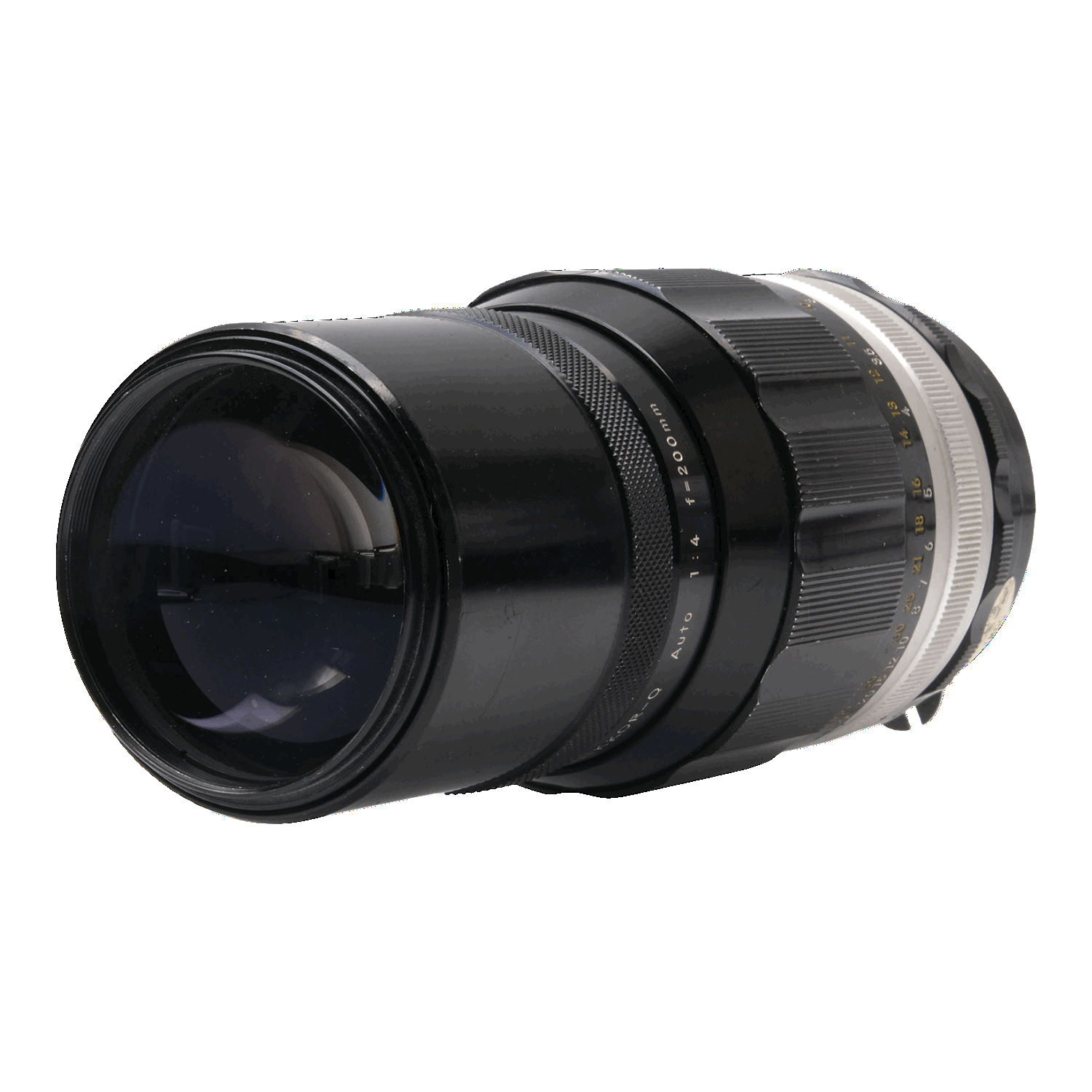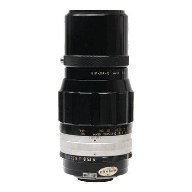 This Nikon Non-AI 200mm f4 Nikkor-Q Lens, #440655, is in fair condition with heavy handling wear. I rate it cosmetically a (7+). The aperture ring is a bit jerky and the focus ring is a bit rough & stiff, but the aperture functions properly and the glass is clean and clear with no haze, marks, or fungus. There are a few faint specks of dust inside, but they do not affect image quality. This lens includes front & rear caps. Please refer to the photos for details.
