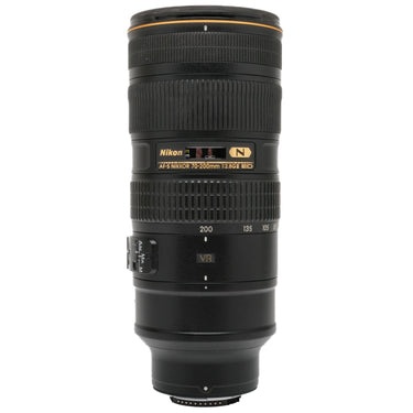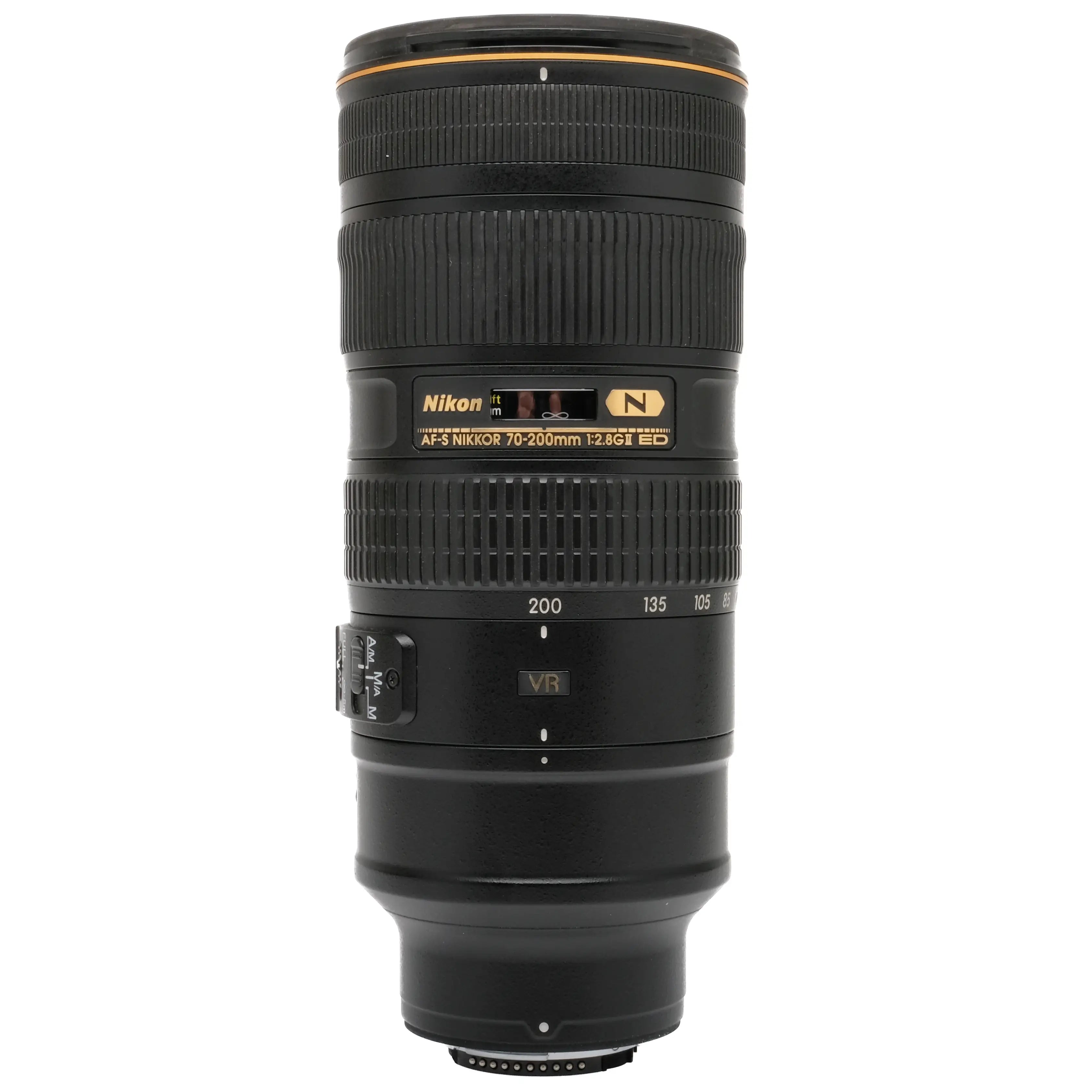 This Nikon 70-200mm f2.8 II #20391295 is in great cosmetic condition with minor handling wear found throughout, please see photos for visual reference. Cosmetically, this lens has been rated at a (9) condition. This lens is in proper working order; the zoom and the focus ring turn smoothly, the autofocus is accurate, and the glass is clean and clear with no signs of fungus, haze, or marks present. This lens includes front/rear caps and hood.
