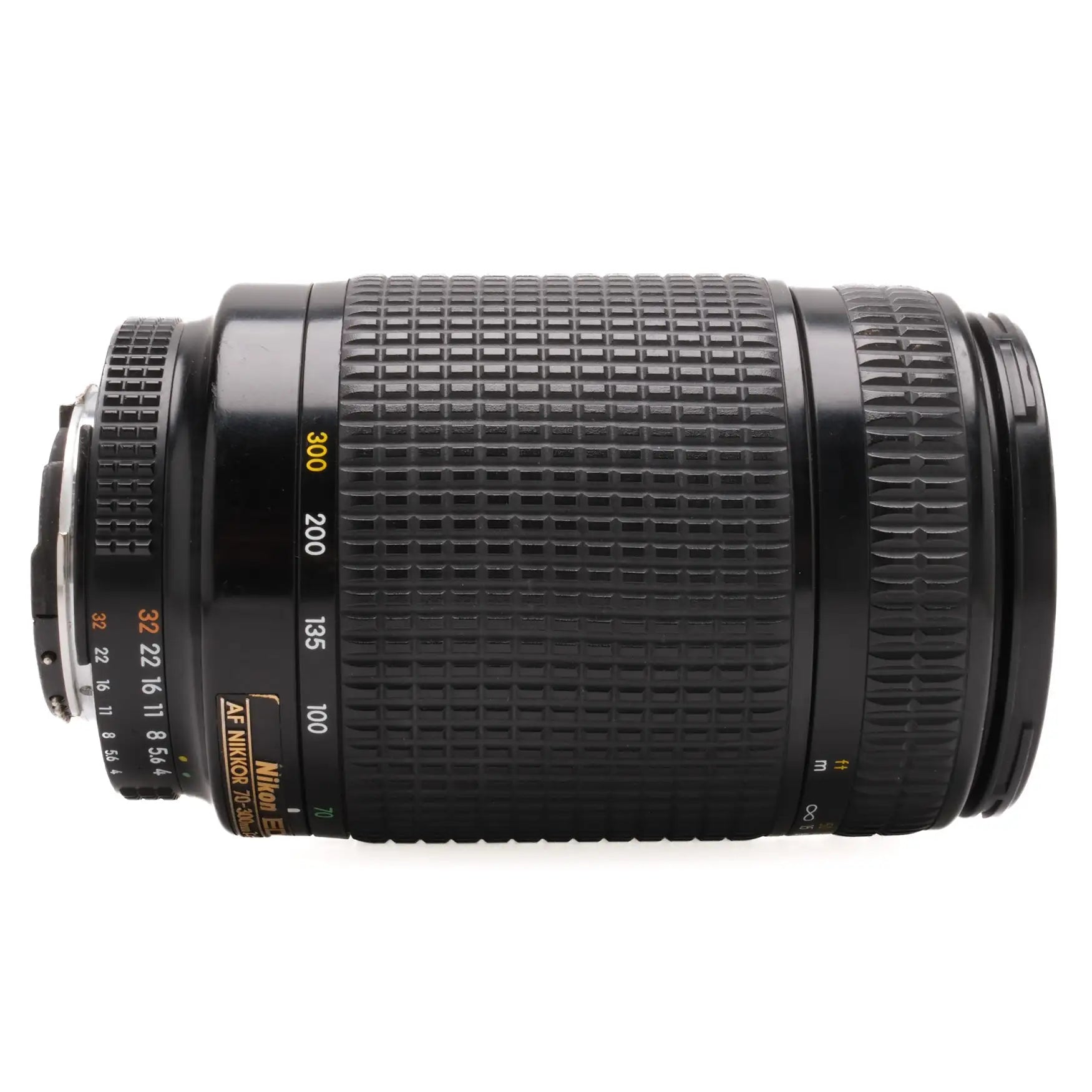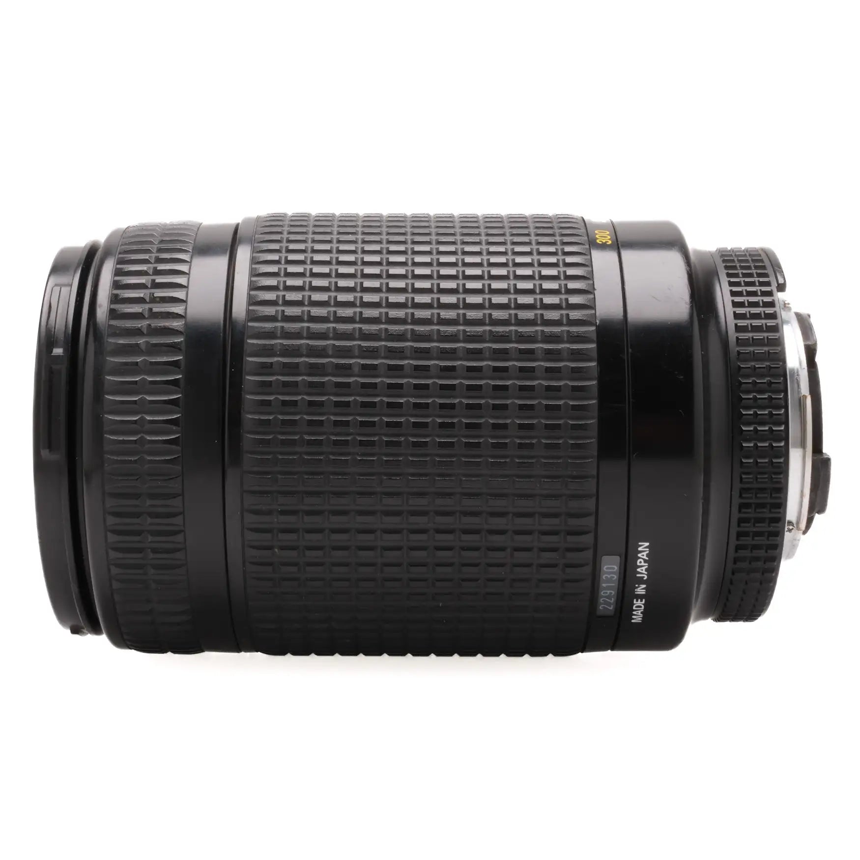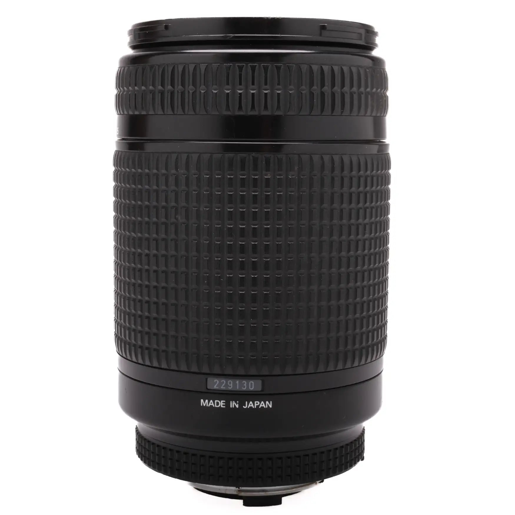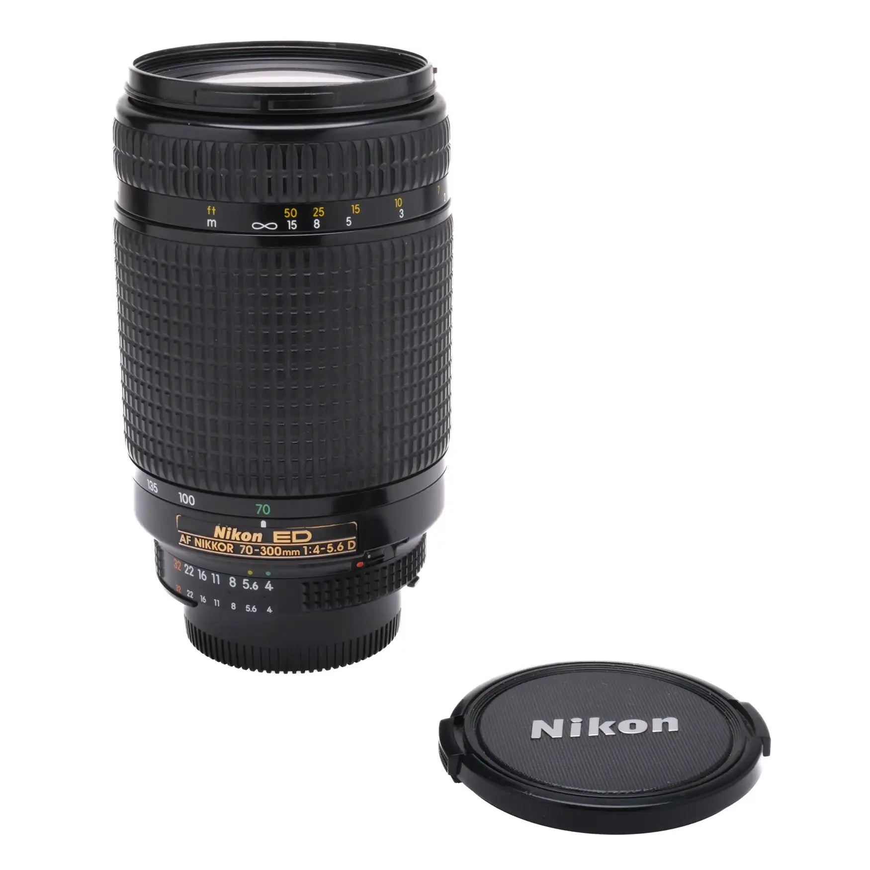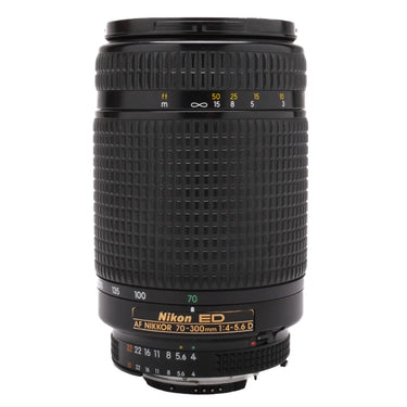 This Nikon AF Nikkor 70-300mm f/4-5.6D ED #229130 is in good cosmetic condition with minor handling/edge wear found throughout, please see photos for visual reference. Cosmetically, this lens has been rated at a (8+) condition. This lens is in proper working order; the aperture, zoom and focus are smooth, and the glass is clean and clear with no signs of fungus, haze, or marks present. Please note, when turning the focus ring there is an audible squeak. This lens includes front and rear caps.