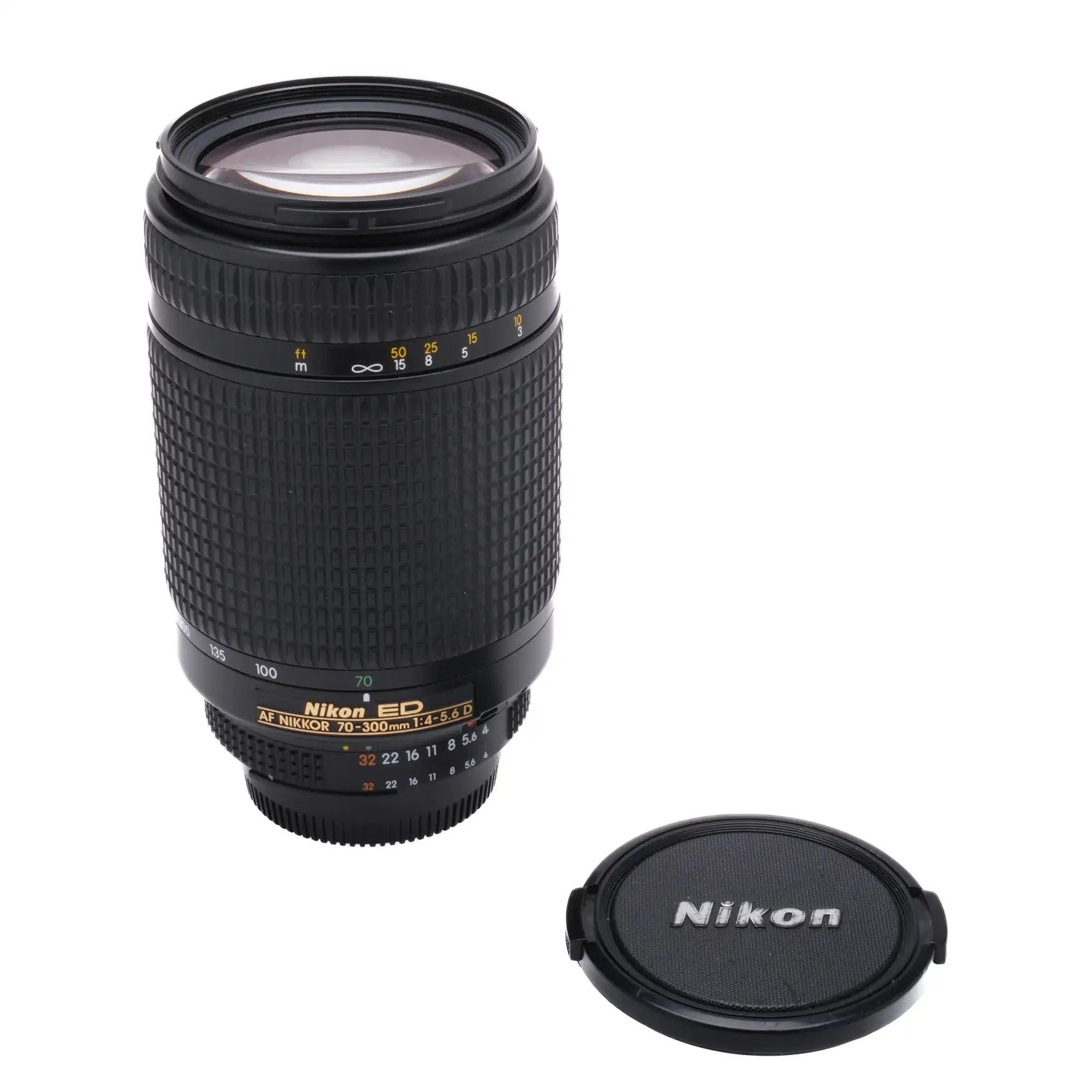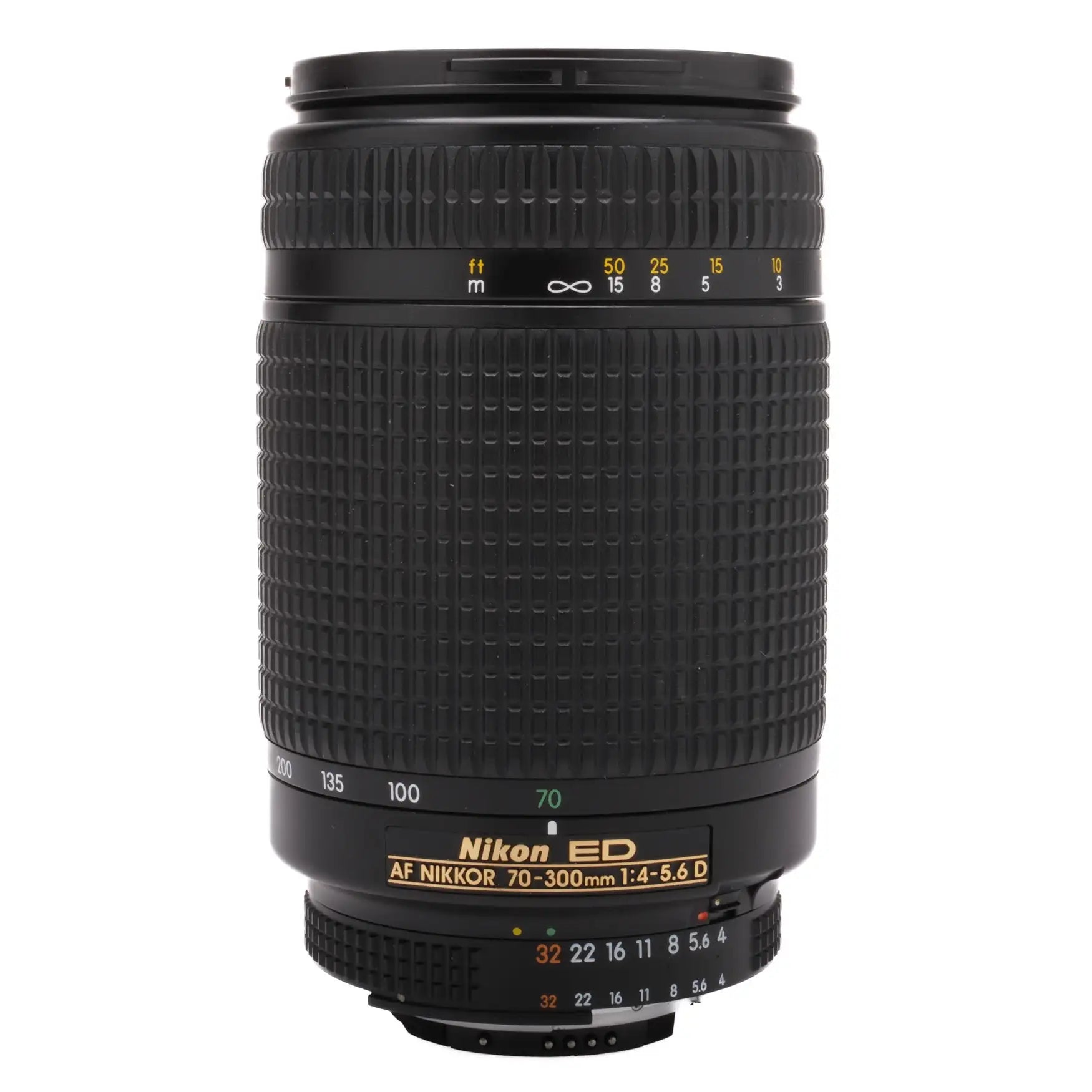 This Nikon AF Nikkor 70-300mm f/4-5.6D ED #342802 is in excellent cosmetic condition with faint handling wear found throughout, please see photos for visual reference. Cosmetically, this lens has been rated at a (9+) condition. This lens is in proper working order; the aperture, zoom and focus are smooth, and the glass is clean and clear with no signs of fungus, haze, or marks present. This lens includes front and rear caps.