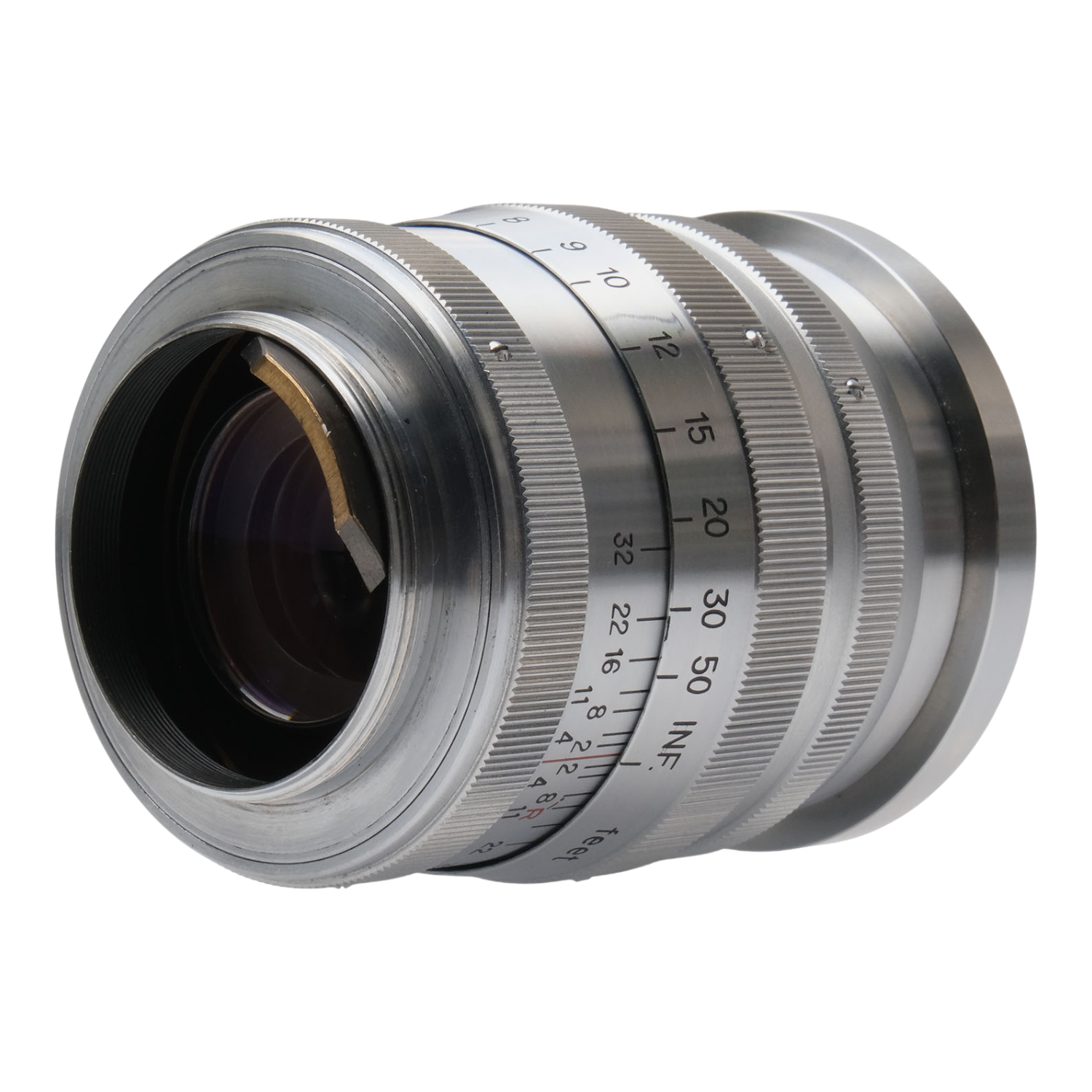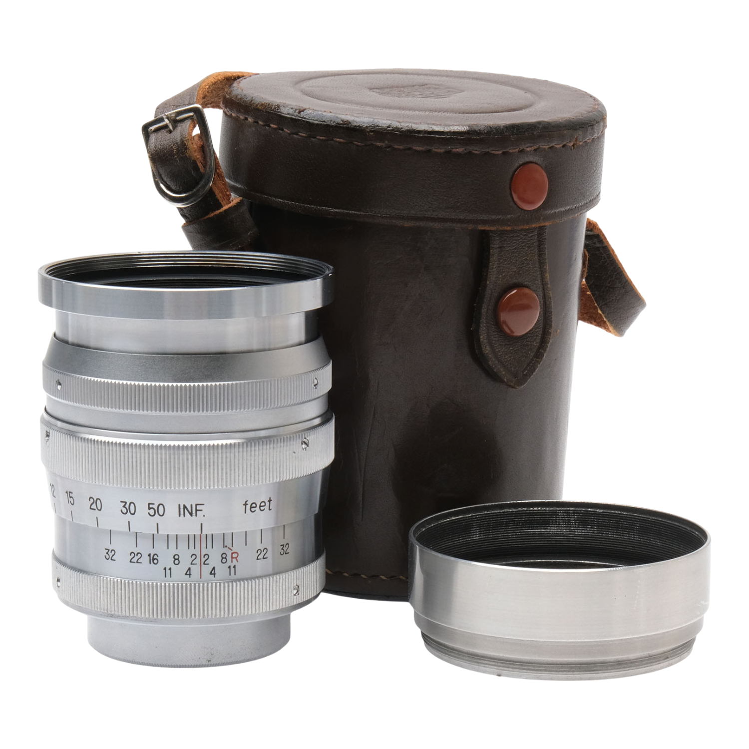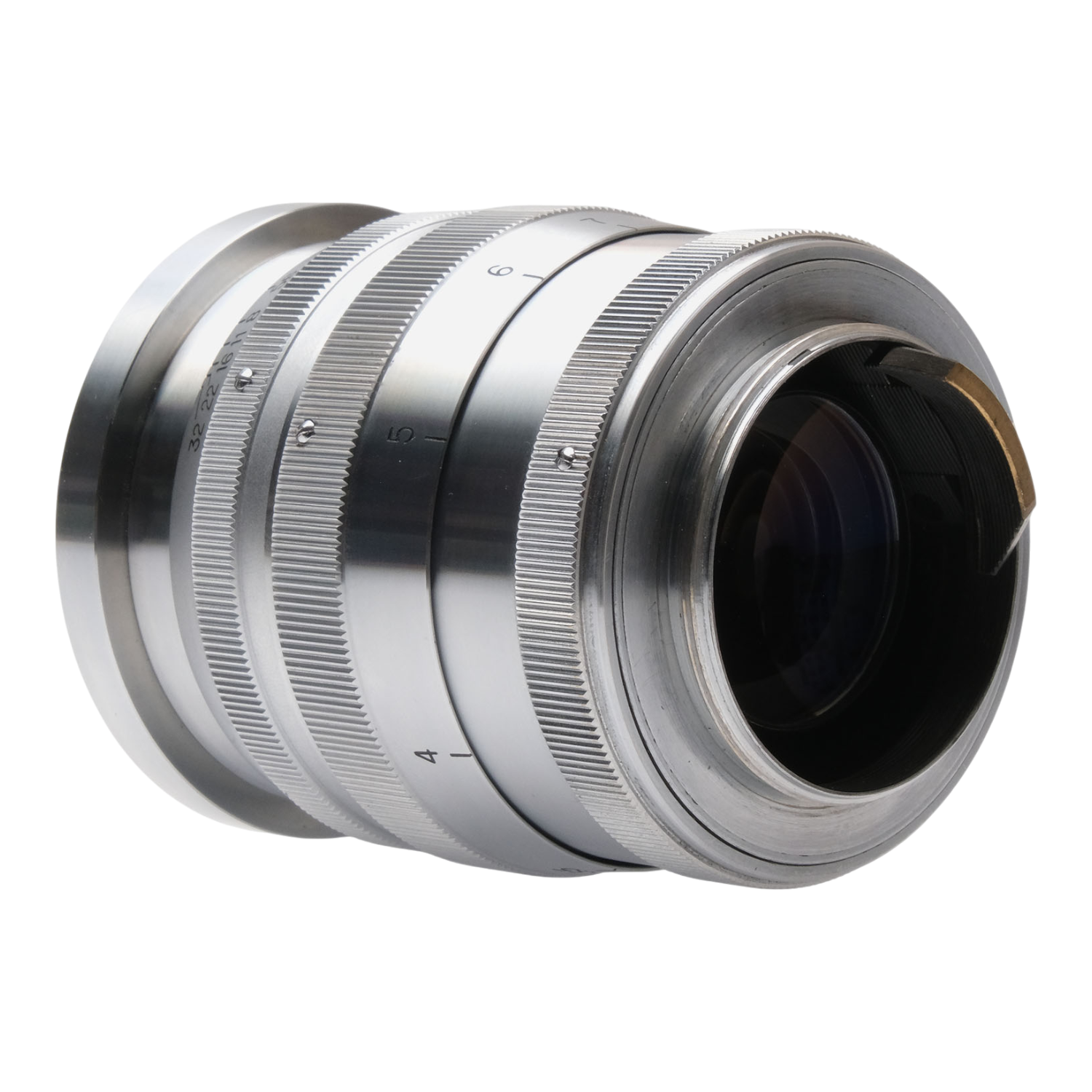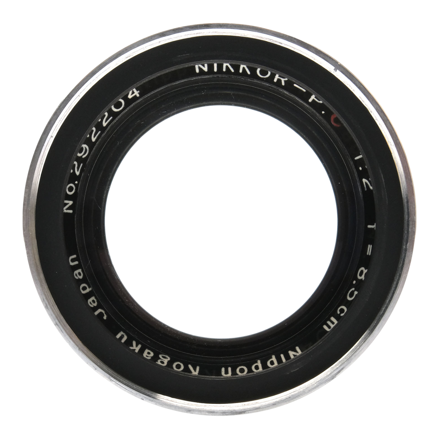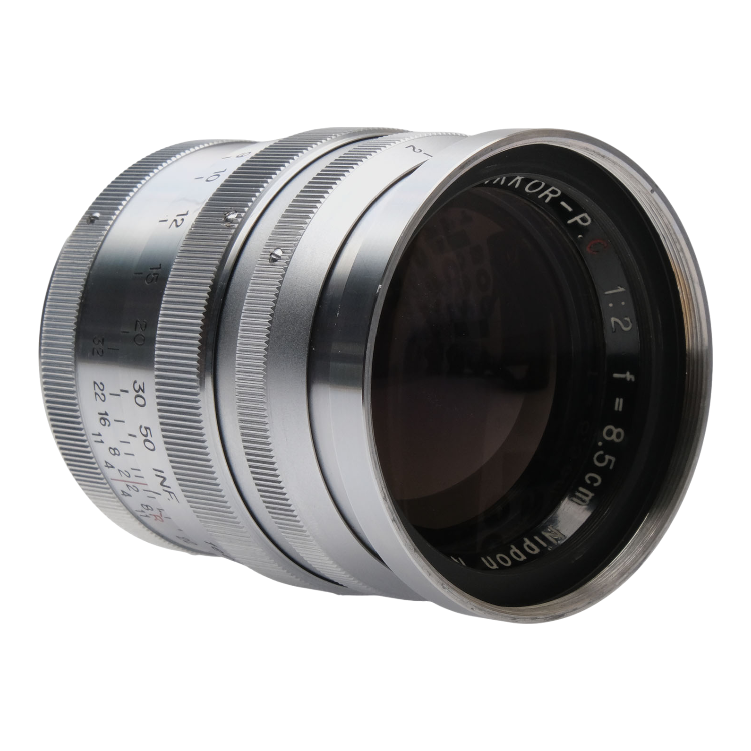 This Nikon 8.5cm f2 Nikkor-P.C Lens, #292204, is in great condition with minor handling wear. I rate it cosmetically a (9). The focus and aperture rings are smooth, but there's some oil on the aperture blades. The aperture functions properly and the glass is clean and clear with no haze, marks, or fungus. There are a few faint specks of dust inside, but they do not affect image quality. This lens includes a leather Nikon lens case, a threaded Nikon lens hood, and rear lens cap. No front cap is included. Please refer to the photos for details.