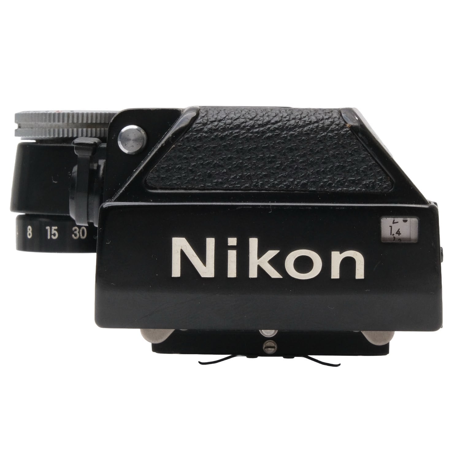 This Nikon DP-1 Photomic Finder for F2, #482049, is in great condition with minor handling wear. I rate it cosmetically a (9+). The finder is in proper working order; the glass is clear and the electronics function. It includes a bottom cover. Please refer to the photos for details.
