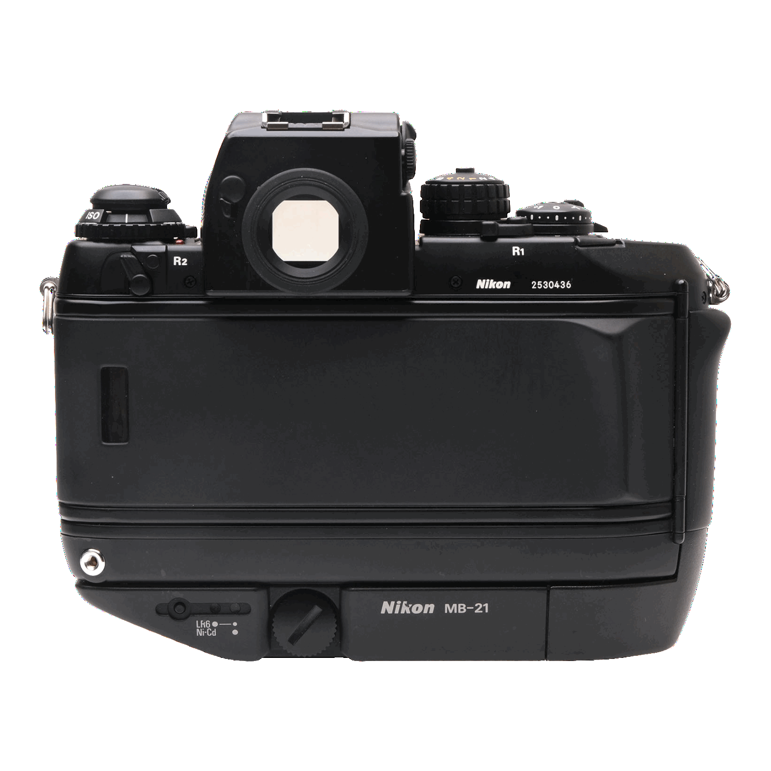 This Nikon F4s, #2530436, is in great condition with minor handling wear. I rate it cosmetically a (7+). The camera is in proper working order; film advances properly, the shutter is accurate at all speeds, the meter and self-timer function, and the battery compartment is corrosion-free. The viewfinder has a few faint specks of dust, but is otherwise clear. The included Nikon MB-21 Motor Drive is in similar condition, also rated a (9+). This camera also includes a body cap. It uses six (6) AA batteries for the body & grip (not included). Please refer to the photos for details.