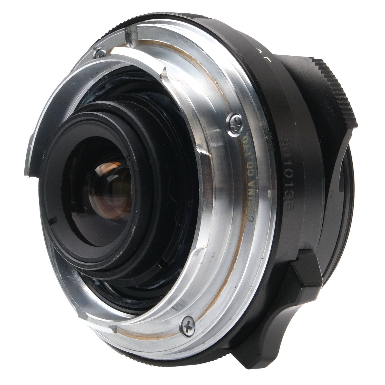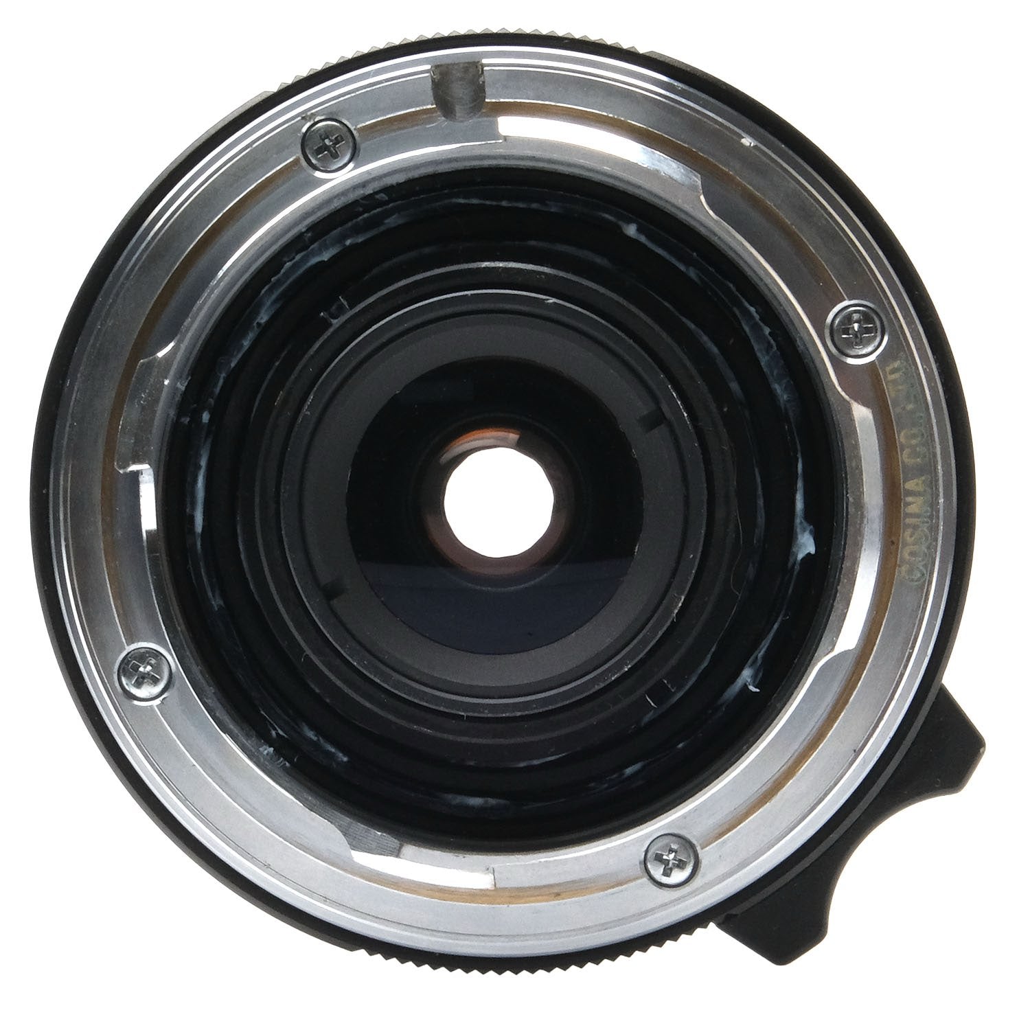 This Voigtlander 25mm f4 Color-Skopar Lens for Leica M (Black), #8010136, is in great condition with minor handling wear. I rate it cosmetically a (9). The focus and aperture rings are smooth, the aperture functions properly and the glass is clean and clear with no haze, marks, or fungus. There are a few faint specks of dust inside, but they do not affect image quality. This lens includes a threaded Voigtlander lens hood with a front cap, a rear lens cap, and the original box. Please refer to the photos for details.