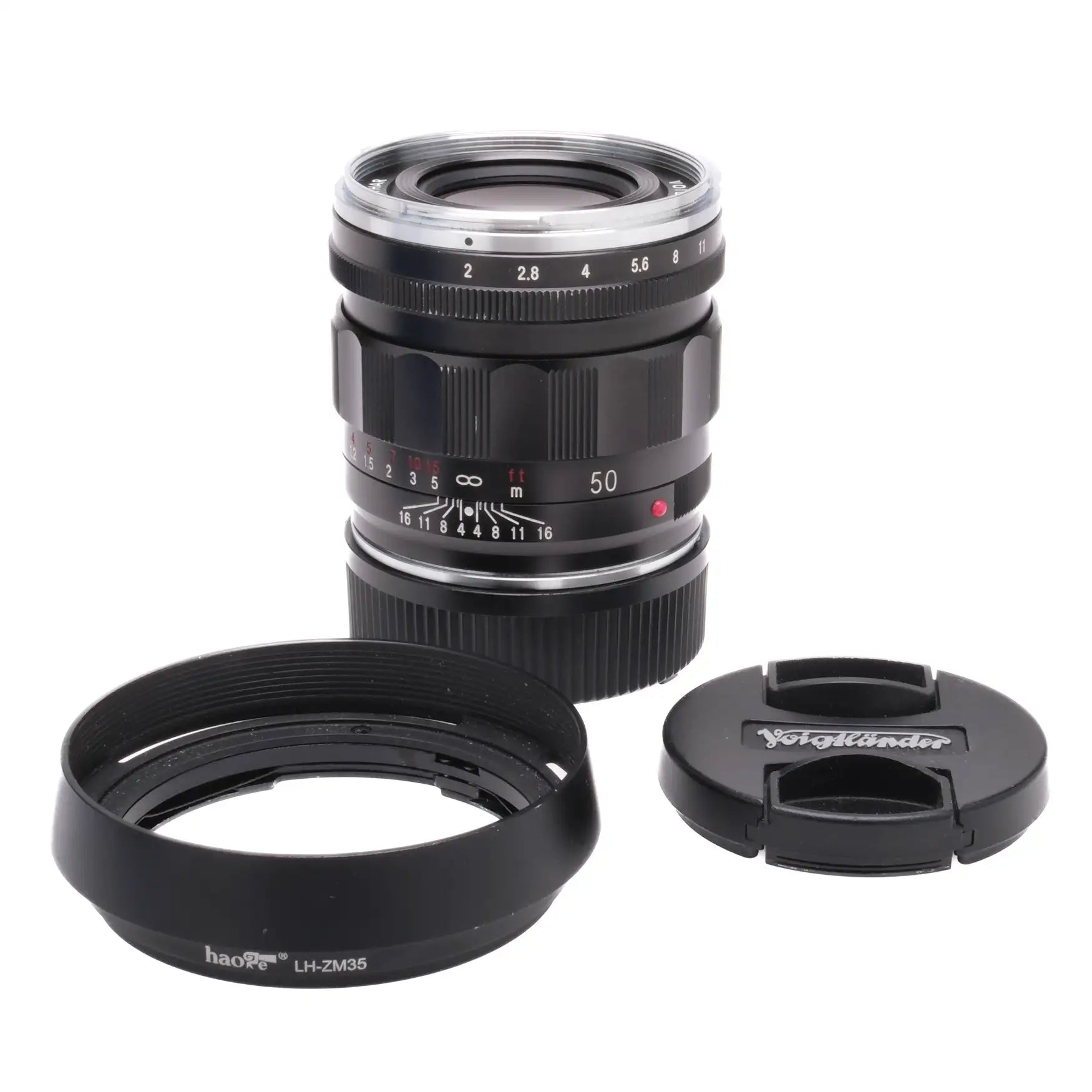 This Voigtlander 50mm f/2 Apo-Lanthar is in great cosmetic condition with minor handling wear found throughout; please see photos for visual reference. Cosmetically, this lens has been rated at a (9) condition. This lens is in proper working order; the aperture and focus are smooth and the glass is clean and clear with no marks, fungus or haze. This lens includes a hood and front/rear caps.