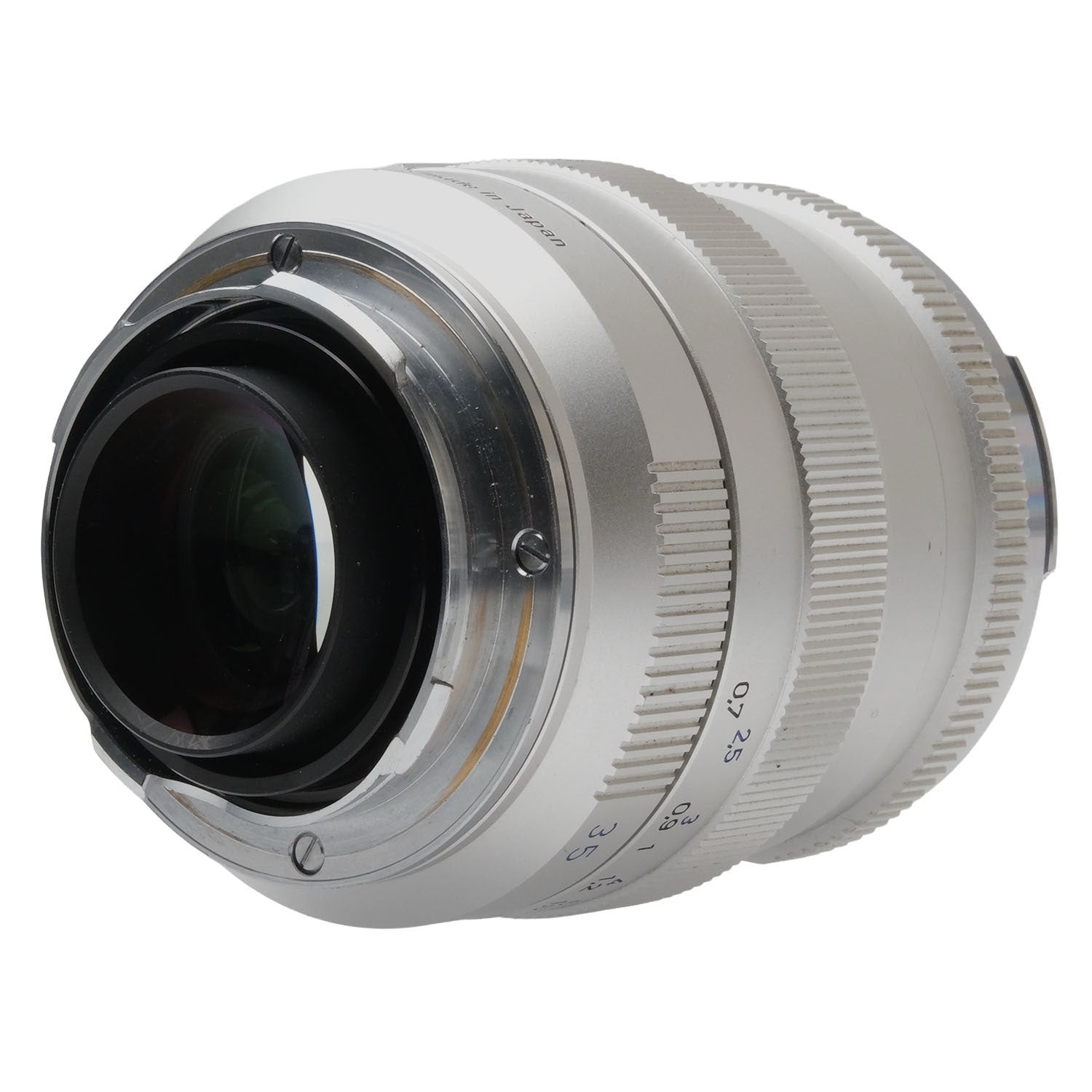 This Zeiss 35mm f1.4 Distagon T* ZM Lens for Leica M (Silver), #51564406, is in great condition with minor handling wear. I rate it cosmetically a (9). The focus ring is a bit stiff, but the aperture ring is smooth. The aperture functions properly and the glass is clean and clear with no haze, marks, or fungus. There are a few faint specks of dust inside, but they do not affect image quality. This lens includes front & rear caps and the original box.