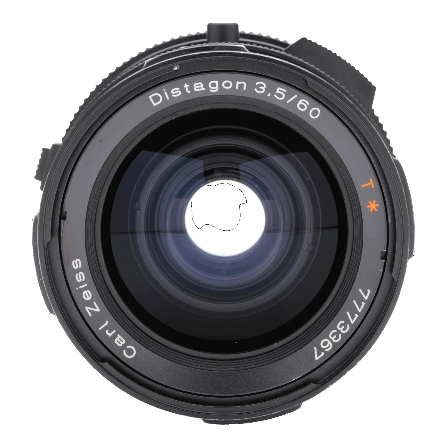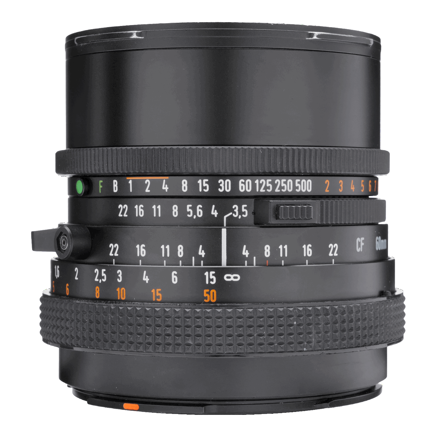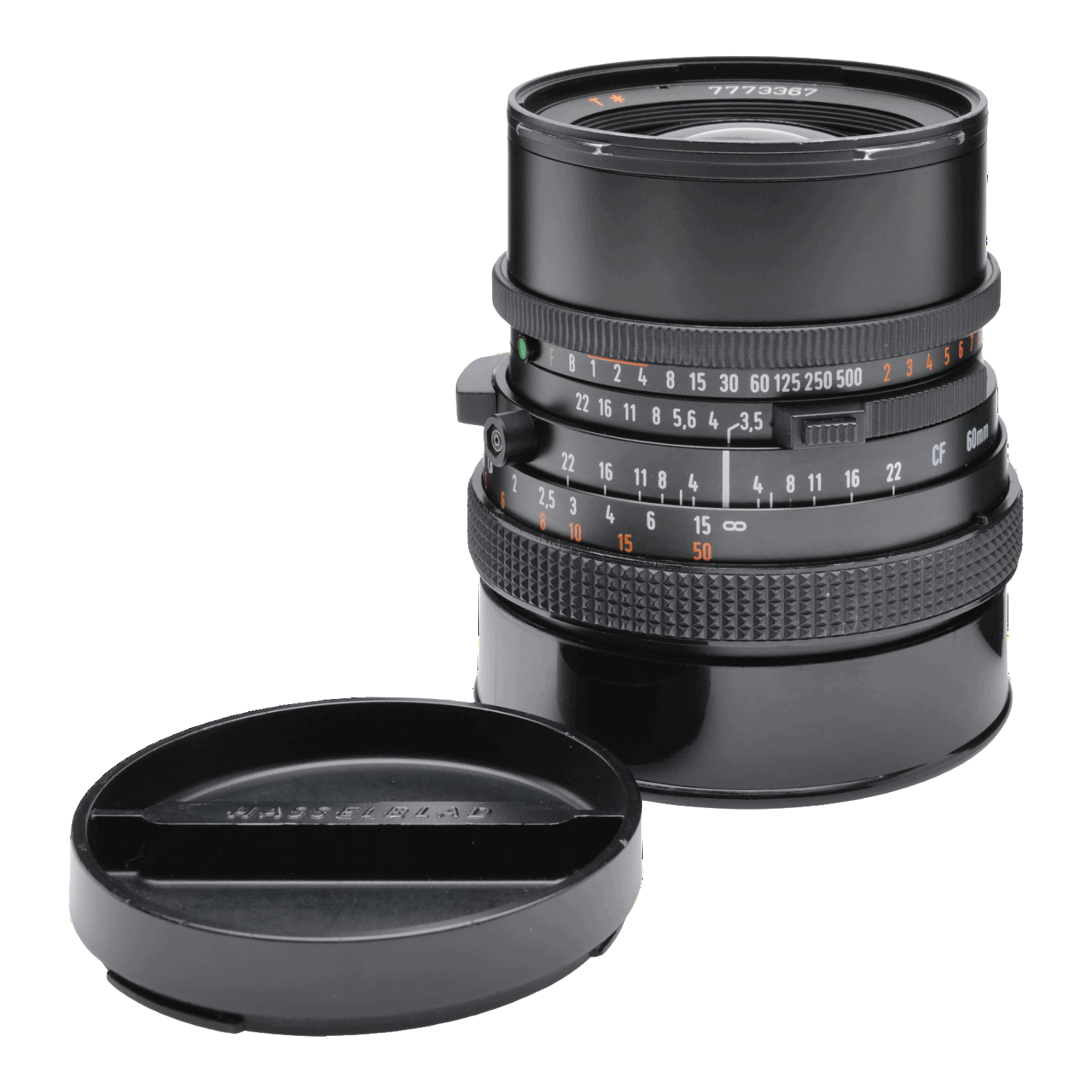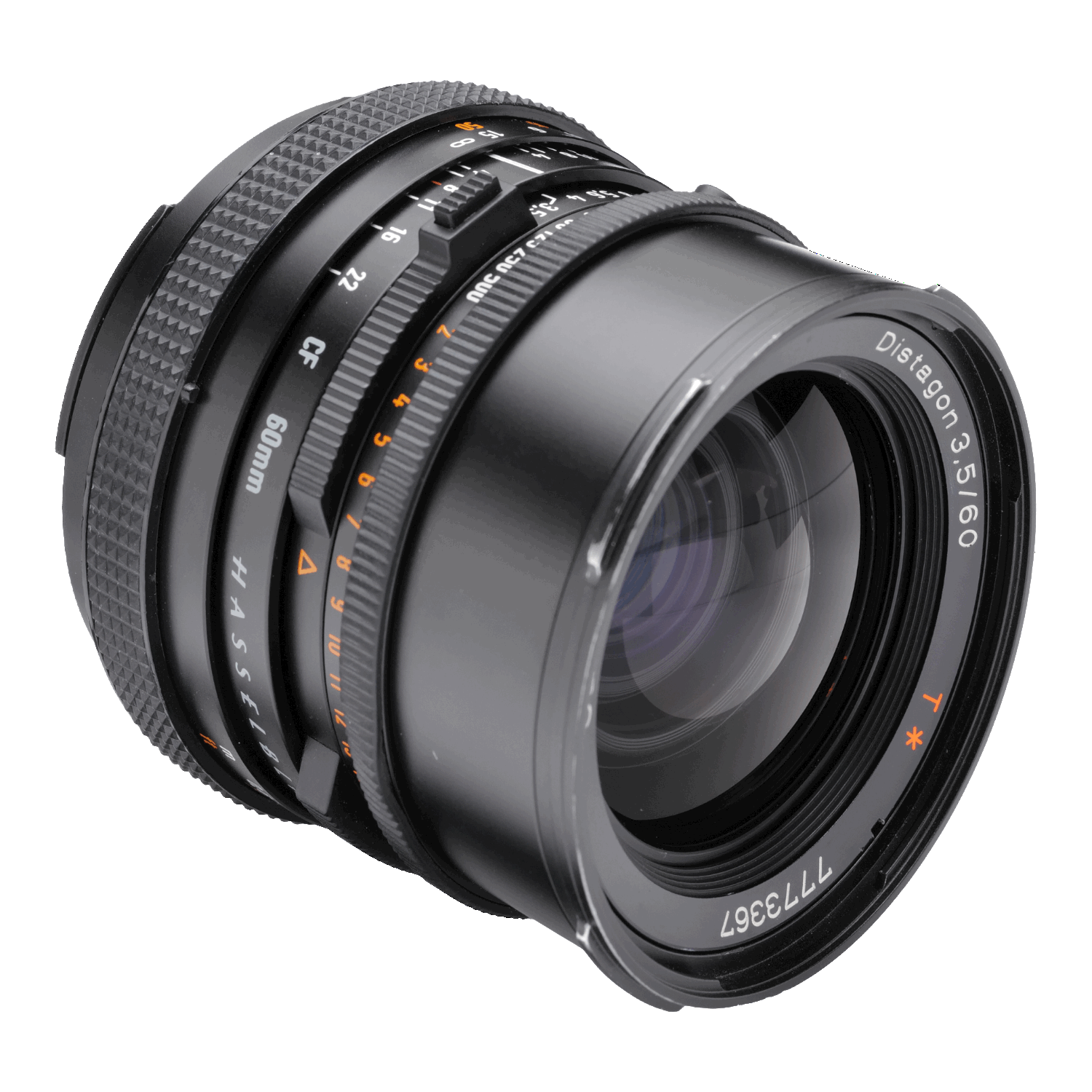 This Hasselblad CF 60mm f3.5 Distagon lens, 7773367 is in nice condition with only edge wear on the front mounting bayonet. I rate it cosmetically at (8+) condition. The focus is smooth, and the aperture works properly. The shutter is accurate at all speeds. The glass is clean and clear with no haze, marks, or fungus. This lens comes with the correct front and rear caps.