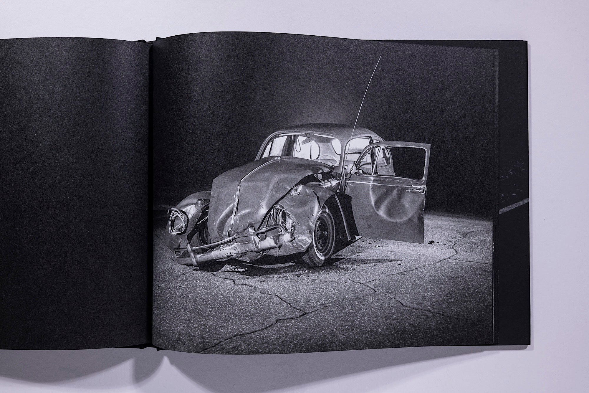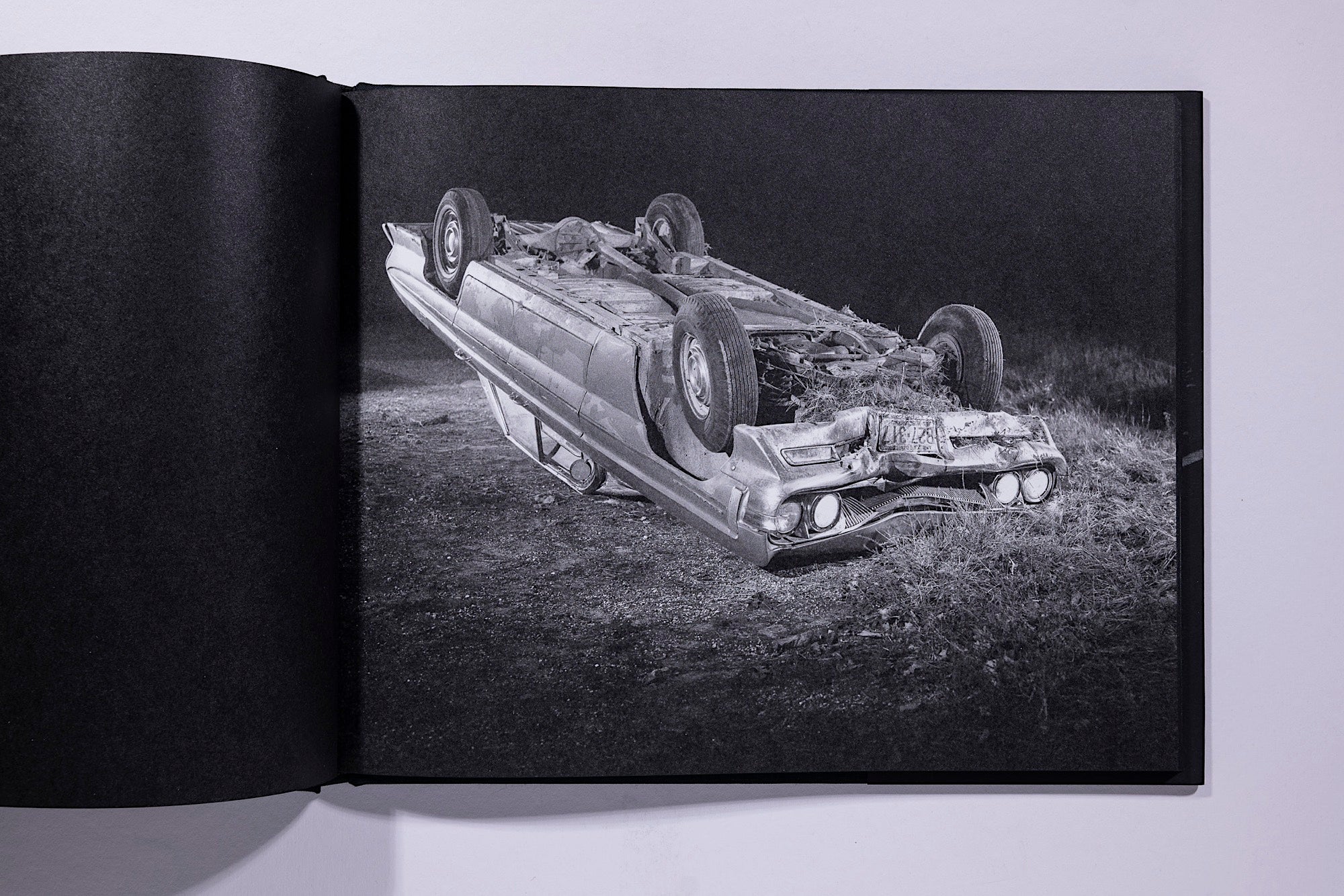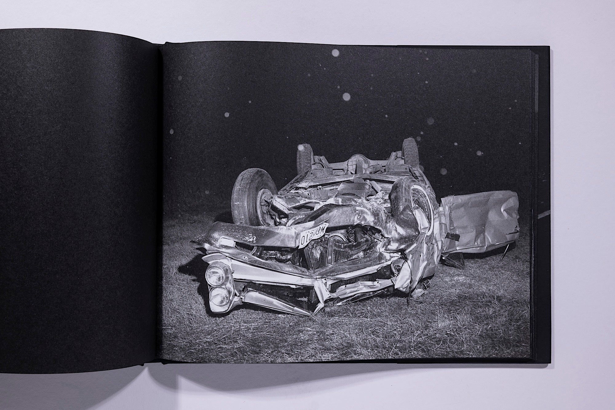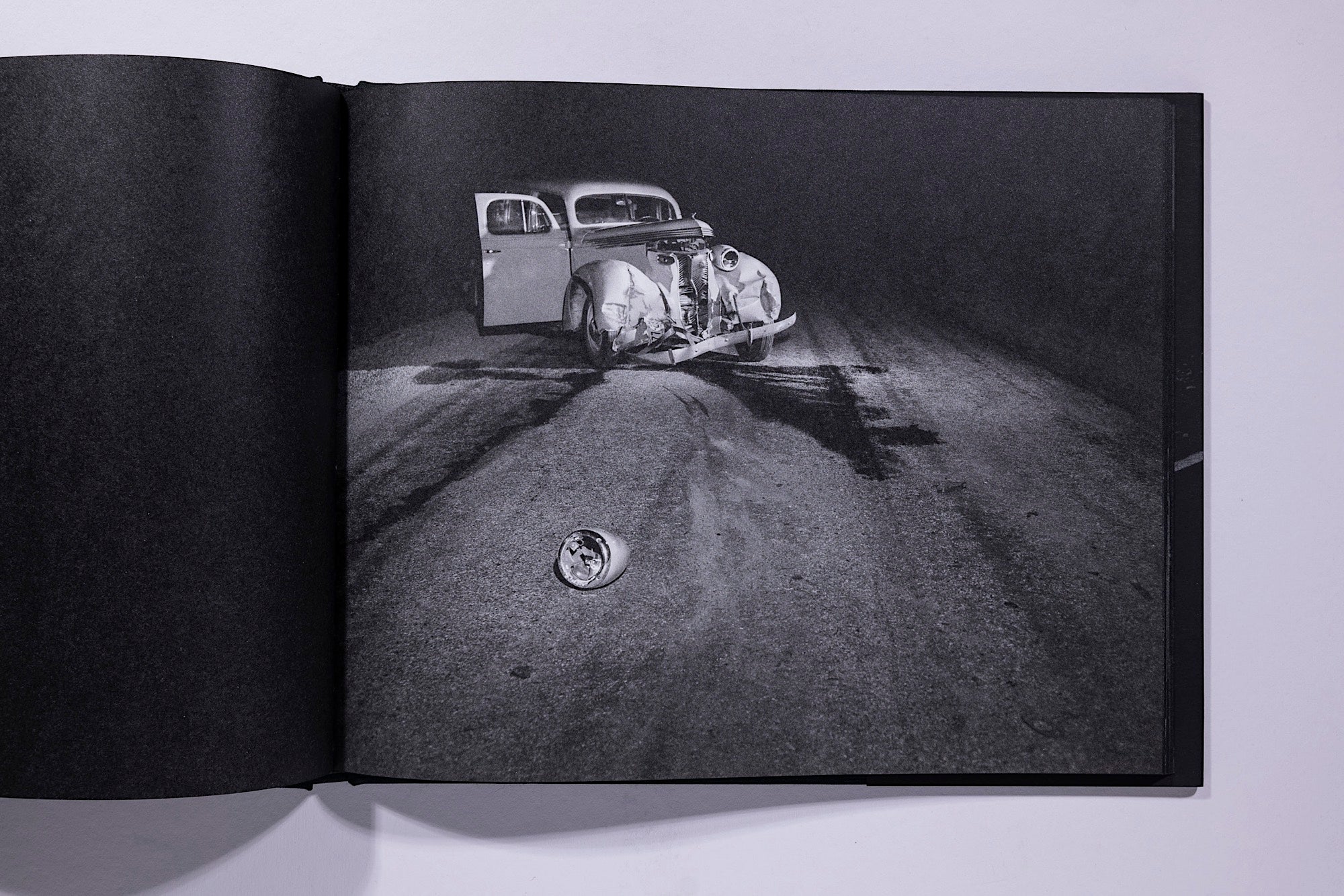 Boltz’s nighttime photographs have a richness similar to that of 1930s black-and-white crime films. I like to think he may have been an admirer of movies like Scarface, with Paul Muni, and The Public Enemy, starring James Cagney. Each car is lit with a nightmarish, chiaroscuro quality. His framing matches the technique of horror and suspense films in which shadows provide gloomy details of the surroundings. The photographs remind me of genres where light and dark represent good and evil. This book is a hymn to unsolved mysteries discovered in the dead of night.