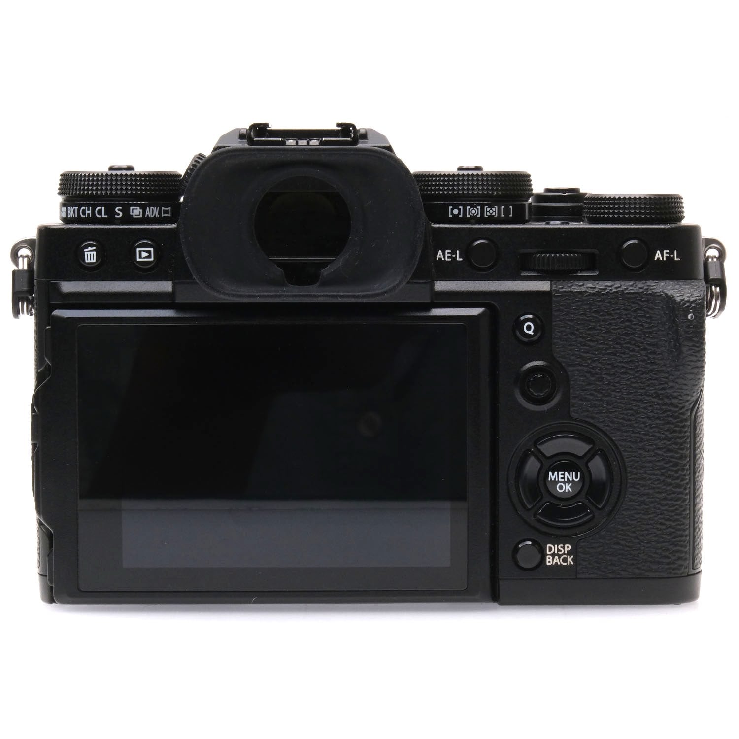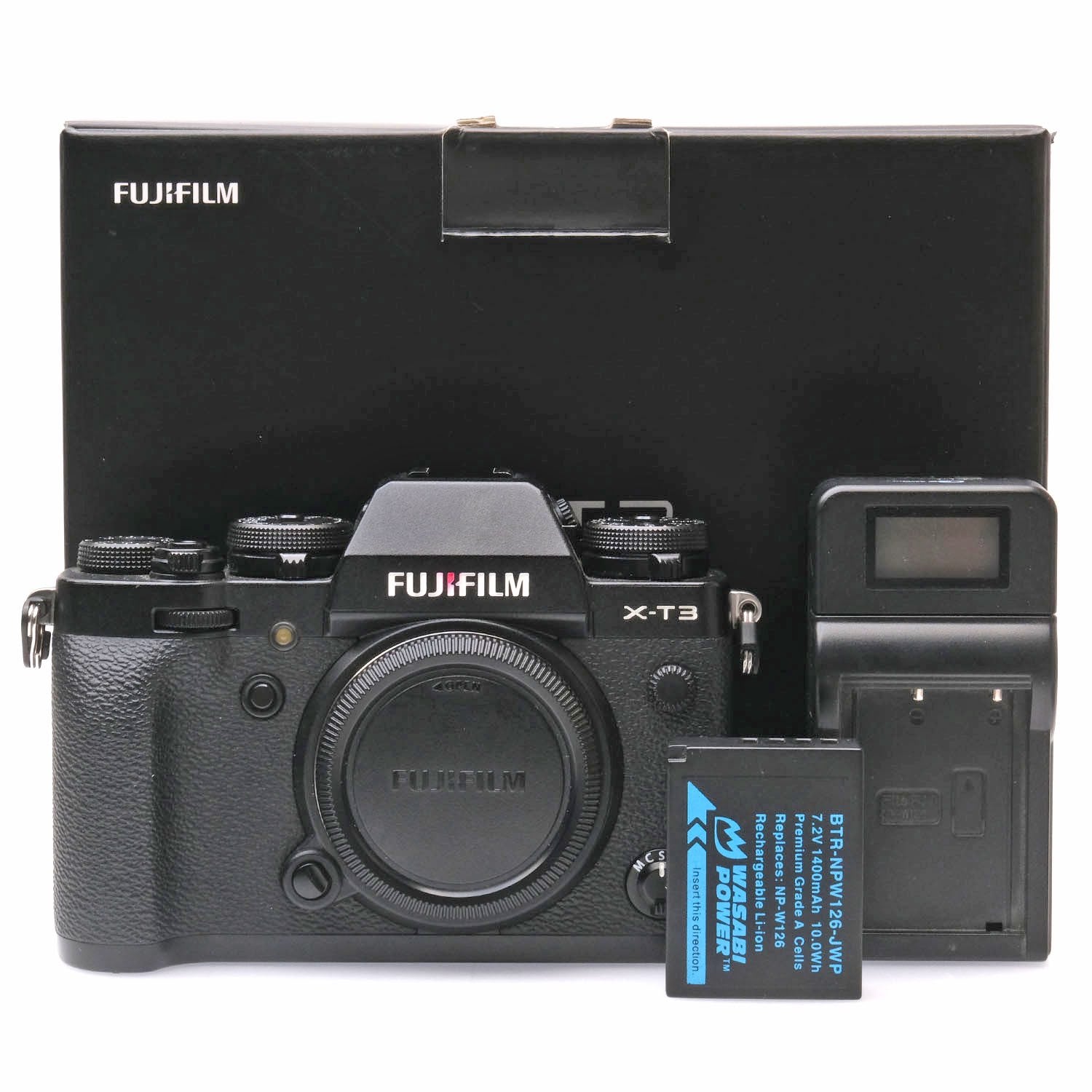 This Fujifilm X-T3 (Black), #1C602533, is in great condition with minor handling wear. I rate it cosmetically a (9+). The camera is in proper working order; the viewfinder is clear, the sensor is unmarked, and the memory card slots read & write. This camera includes a third-party battery, a third-party battery charger, neck strap, body cap, and the original box. Please refer to the photos for details.