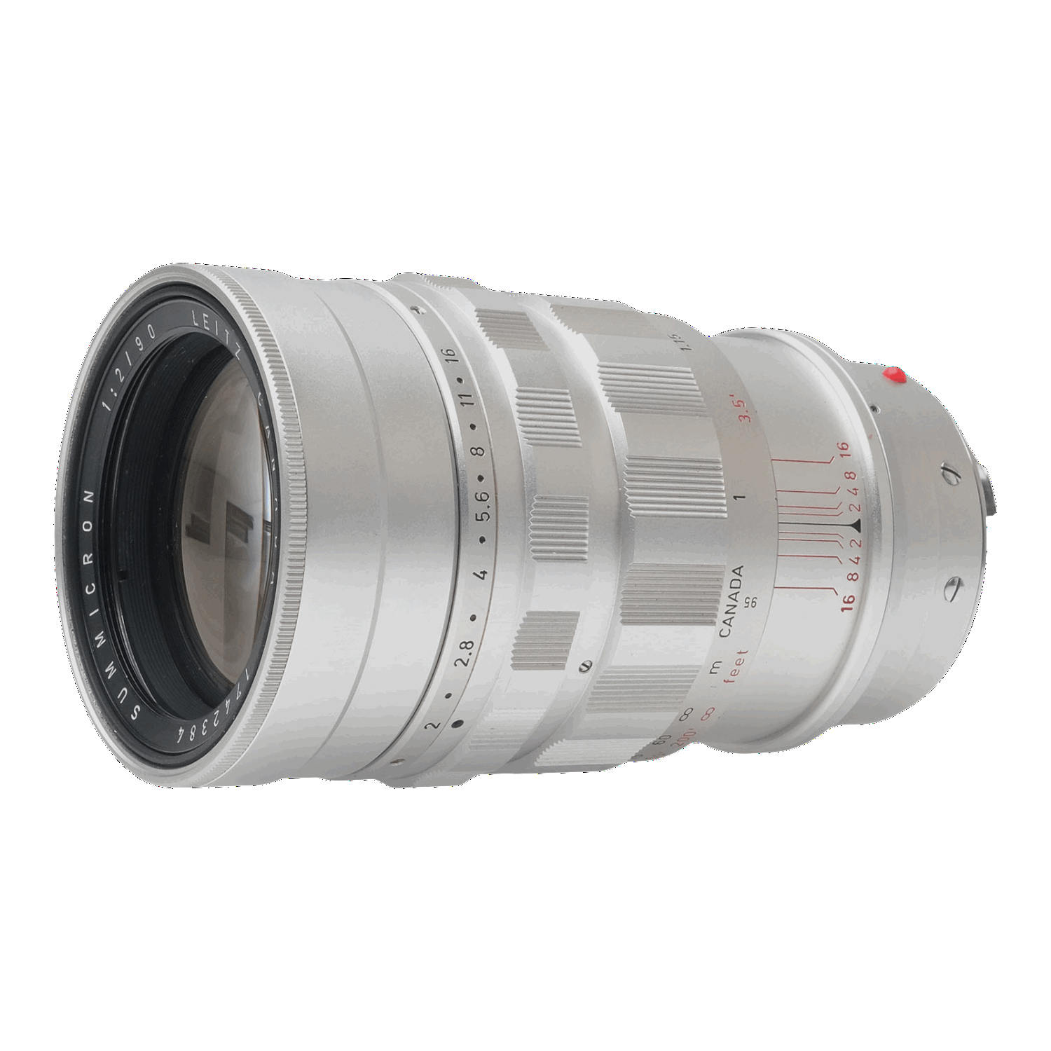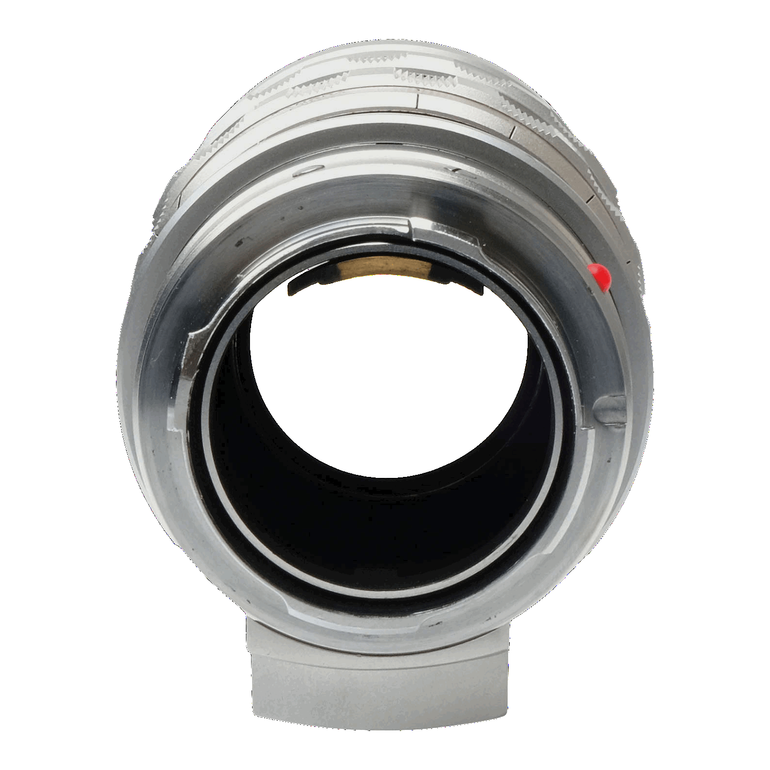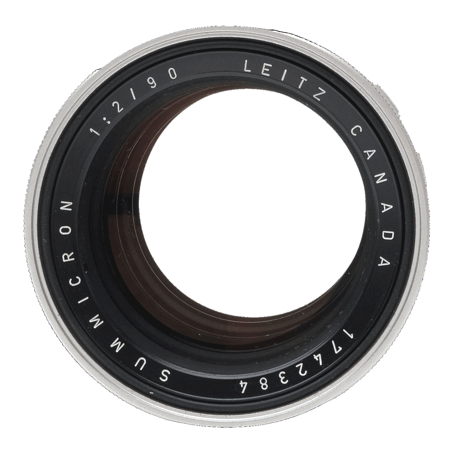 This Leica 90mm f2 Summicron V1 1742384, is in excellent condition with only minor handling wear. I rate it cosmetically a (9+.) The lens is in proper working order. The focus and aperture rings are smooth, and the aperture functions properly. The glass is clean and clear with no marks, haze, or fungus. There are a few faint specks of dust inside, but they do not affect image quality. This lens includes the original front and rear caps.