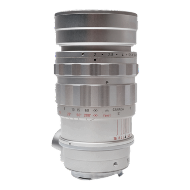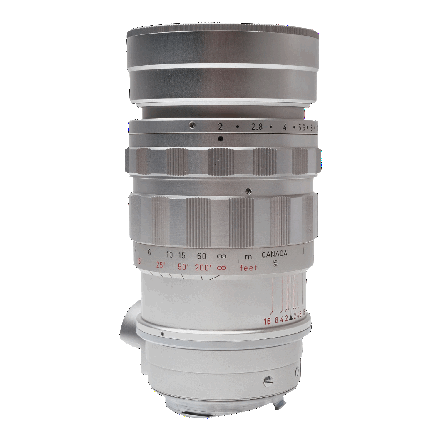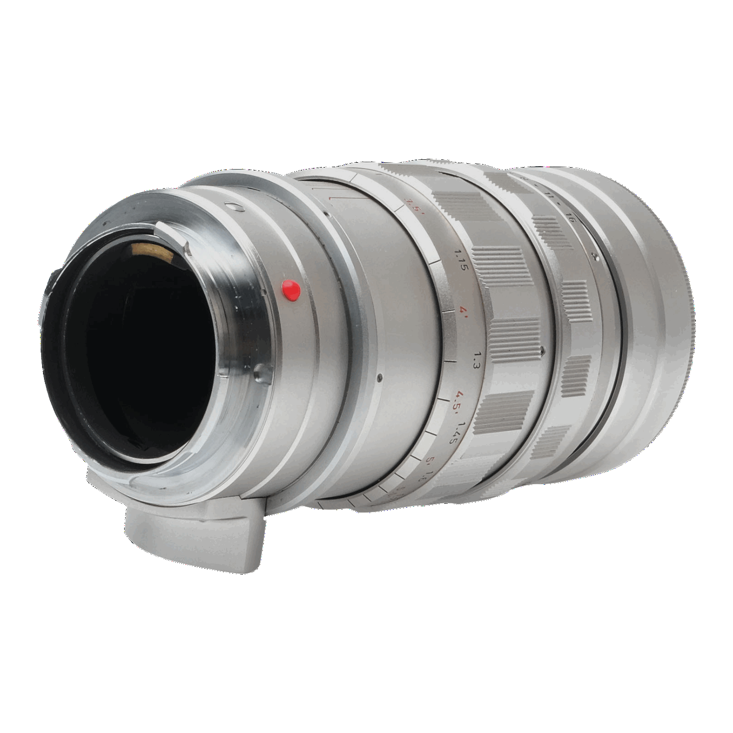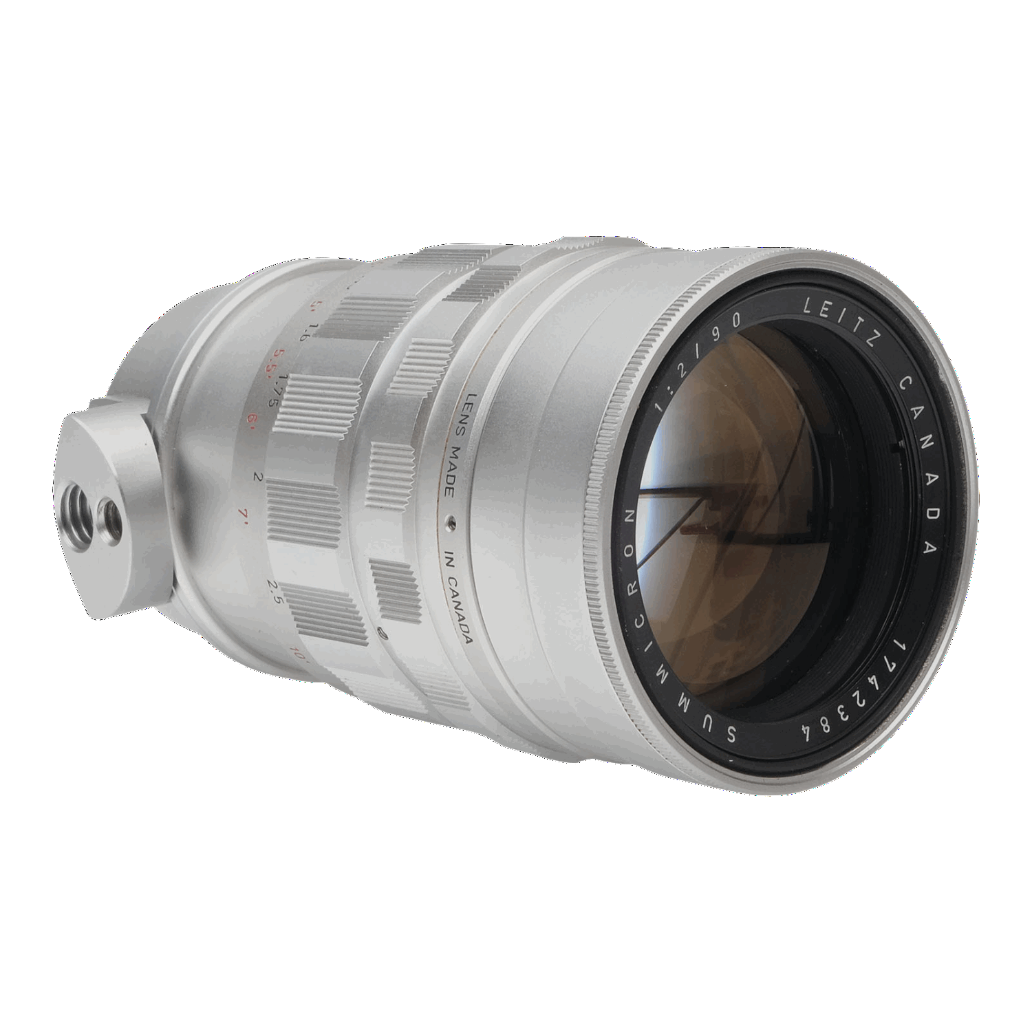 This Leica 90mm f2 Summicron V1 1742384, is in excellent condition with only minor handling wear. I rate it cosmetically a (9+.) The lens is in proper working order. The focus and aperture rings are smooth, and the aperture functions properly. The glass is clean and clear with no marks, haze, or fungus. There are a few faint specks of dust inside, but they do not affect image quality. This lens includes the original front and rear caps.