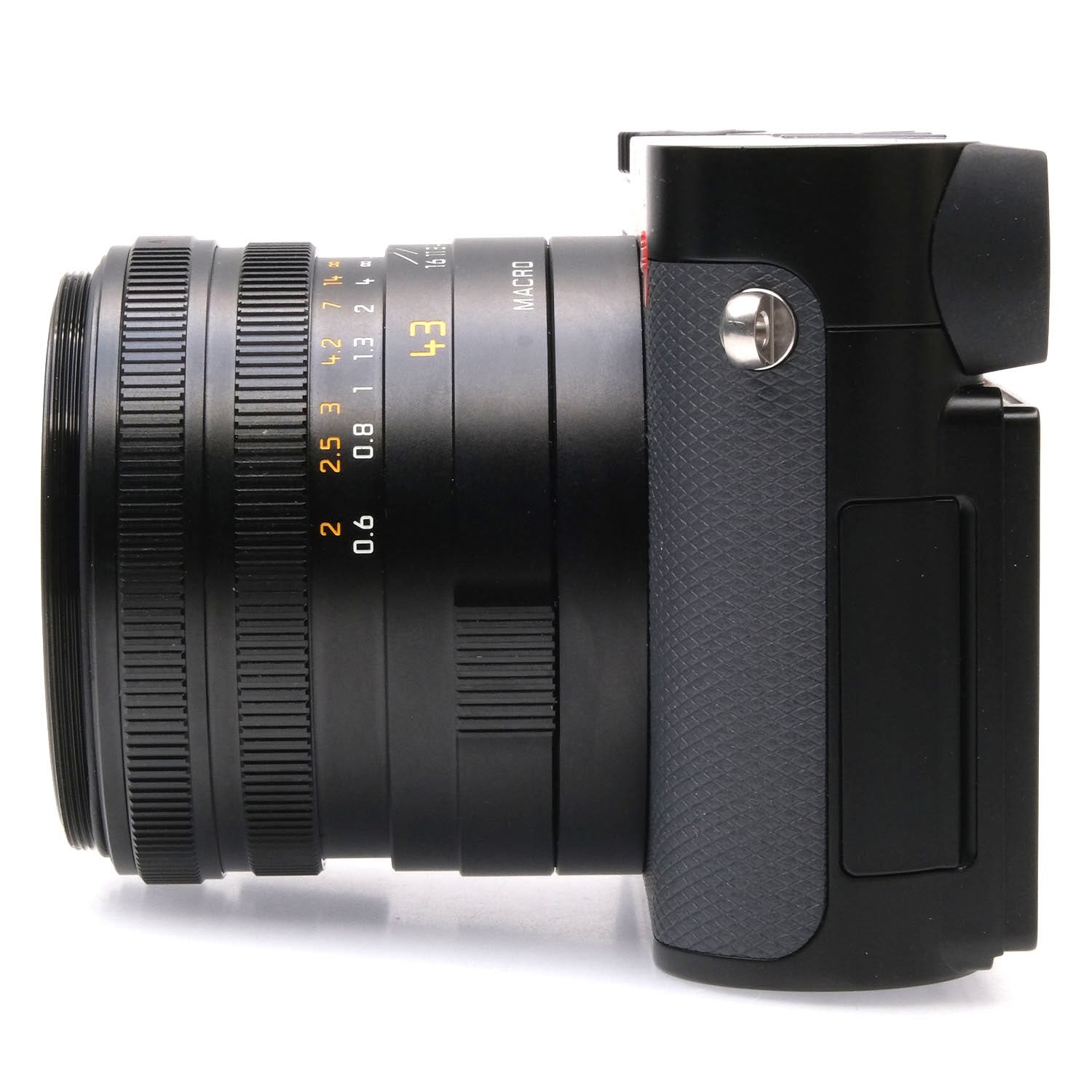 This Leica Q3 43 (Black), #6146512, is in great condition with minor handling wear. I rate it cosmetically a (9+). The camera is in proper working order; the viewfinder is clear, the sensor is unmarked, and the memory card slot reads & writes. The built-in Leica 43mm f2 APO-Summicron Asph lens has smooth focus and aperture rings, the autofocus & aperture function properly, and the glass is clean and clear with no haze, marks, or fungus. This camera includes a Leica battery, a USB-C to USB-C cable, neck strap, threaded lens hood, threaded front ring (which must be removed to mount the lens hood), front lens cap, hot shoe cover, and the original instructions & box. Please refer to the photos for details.
