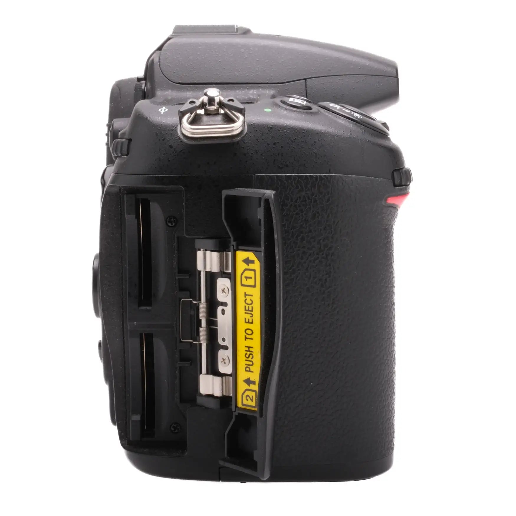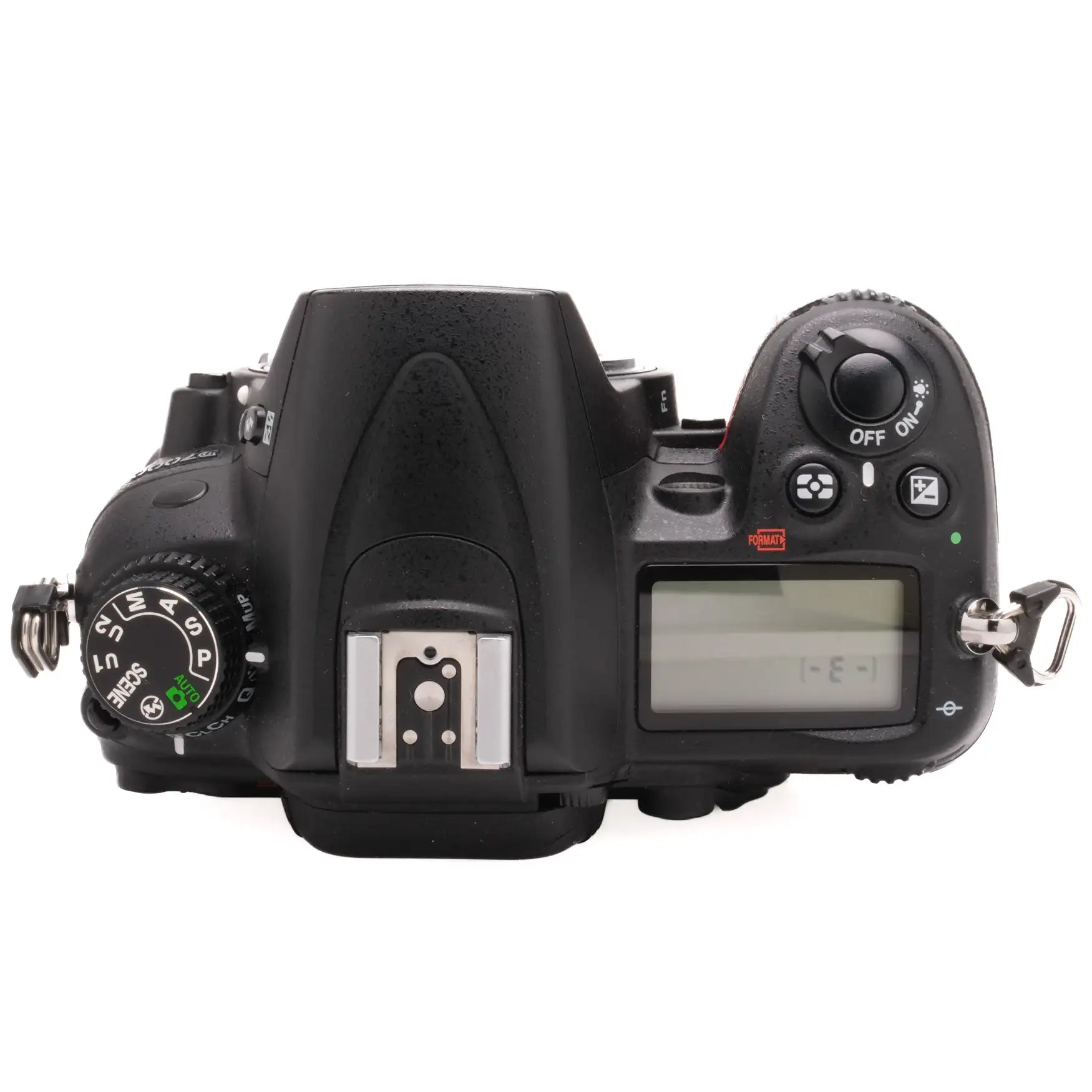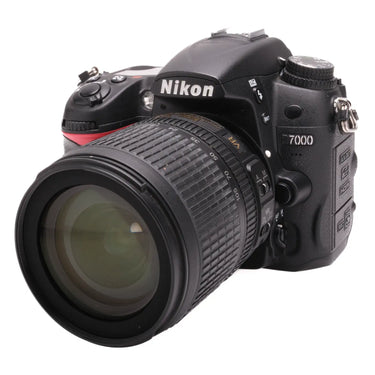 This Nikon D7000 with 18-105mm f3.5-5.6 is in great cosmetic condition with minor handling wear found throughout; please see photos for visual reference. Cosmetically, this camera has been rated at a (9) condition. This camera is in proper working order; the viewfinder is clean, the sensor is unmarked, and the memory card slots read and write. The lens functions properly; autofocus is accurate and the zoom and focus rings turn smoothly and the glass is clean and clear with no marks, fungus or haze. This camera includes the 18-105mm lens, hood, charger, battery, and lens cap.