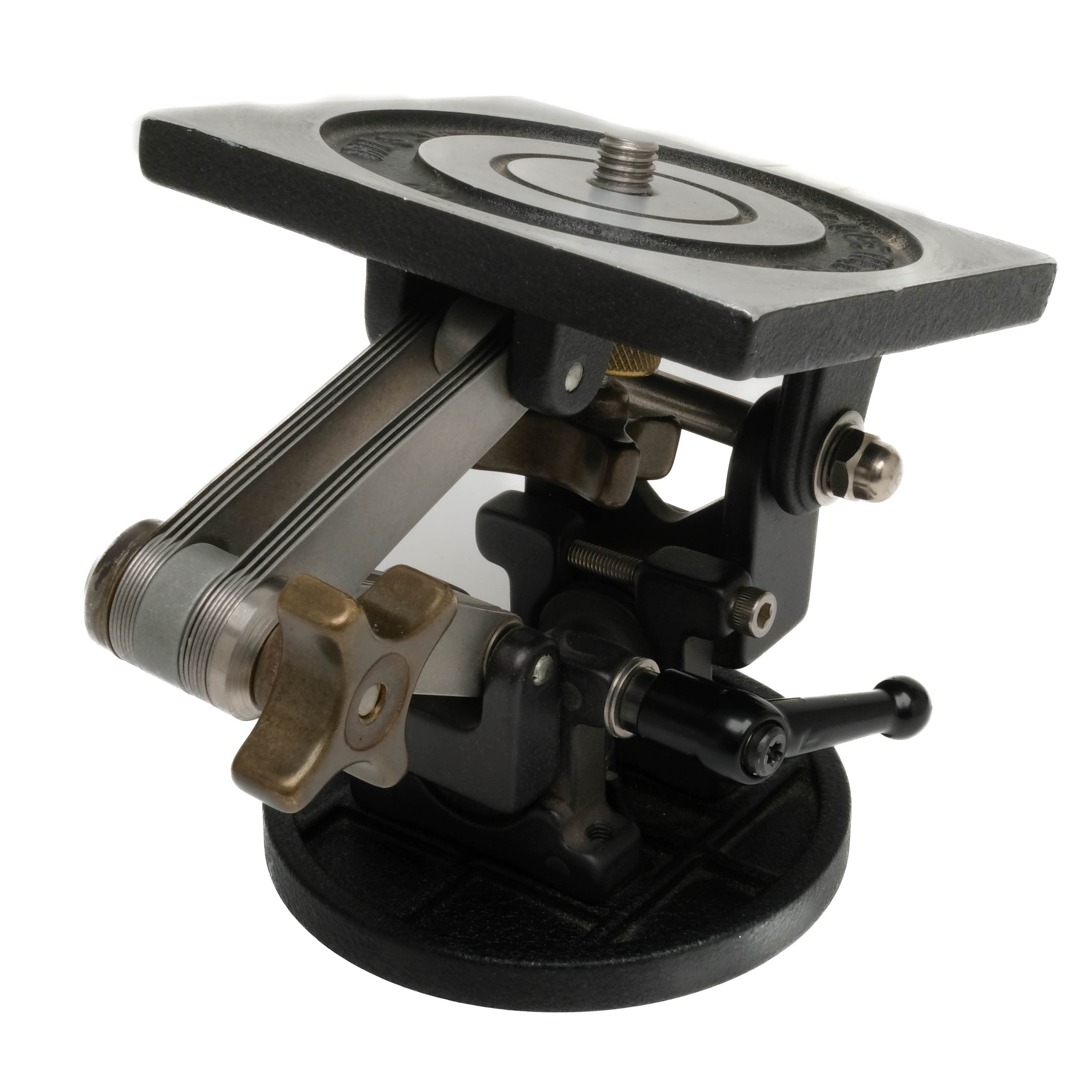 This Ries Jr Photoplane Tilt-Head J250 is in good cosmetic condition with moderate handling wear throughout. Please see photos for visual reference. Cosmetically, this has been rated at a (8+) condition. Functionally, the head is fully operational; all movements lock securely and hold position as intended. Please note, one of the metal components in the tilt mechanism is slightly bent, which causes the tilt motion to feel stiff.