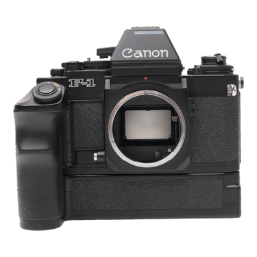 This Canon F-1 AE (Black), #290048, is in great condition with minor handling wear. I rate it cosmetically a (9+). The camera is in proper working order; film advances properly, the focusing screen is clear, the shutter is accurate at all speeds, the meter functions in both modes, and the battery compartment is corrosion-free. The included Canon AE Finder FN is clear. The included Canon AE Power Winder FN, #184113, is also rated a (9+). The electronics function and the battery compartment is corrosion-free. This camera uses one (1) 6V battery (not included) and the winder uses four (4) AA batteries (not included). It also includes a body cap. Please refer to the photos for details.