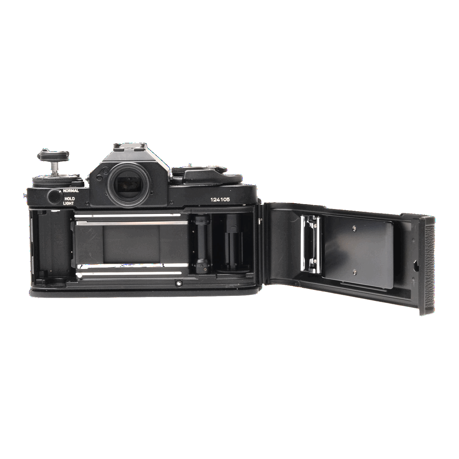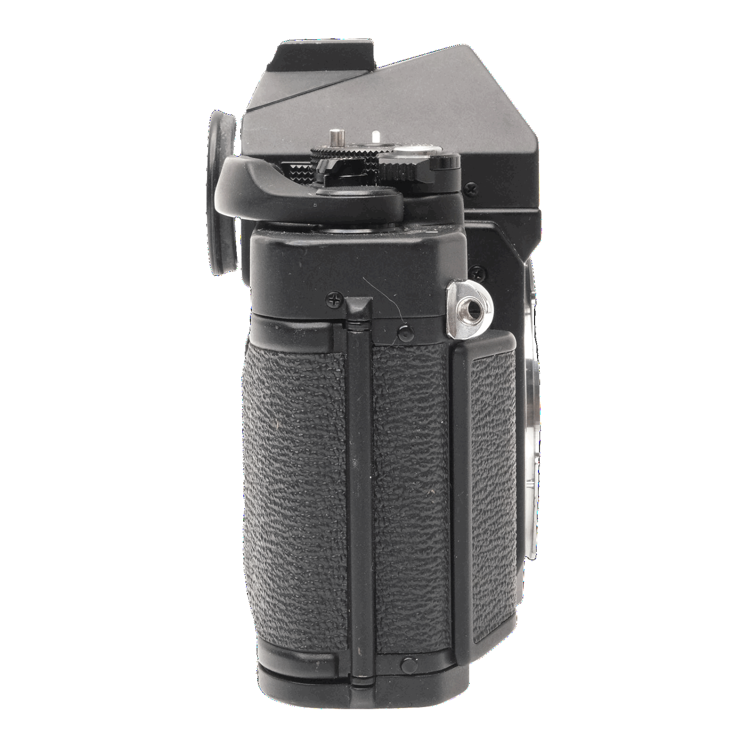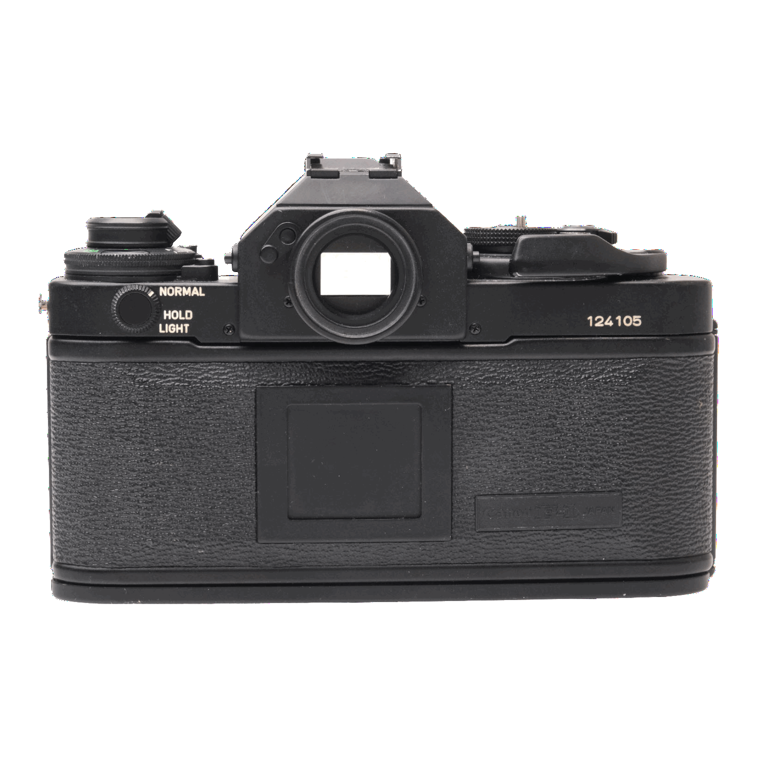 This Canon F-1 FN (Black), #124105, is in great condition with minor handling wear. I rate it cosmetically a (9+). The camera is in proper working order; film advances properly, the focusing screen is clear, the shutter is accurate at all speeds, the meter functions, and the battery compartment is corrosion-free. The included Canon Eye Level Finder FN is clear. This camera also includes a body cap. It uses one (1) 6V battery (not included). Please refer to the photos for details.