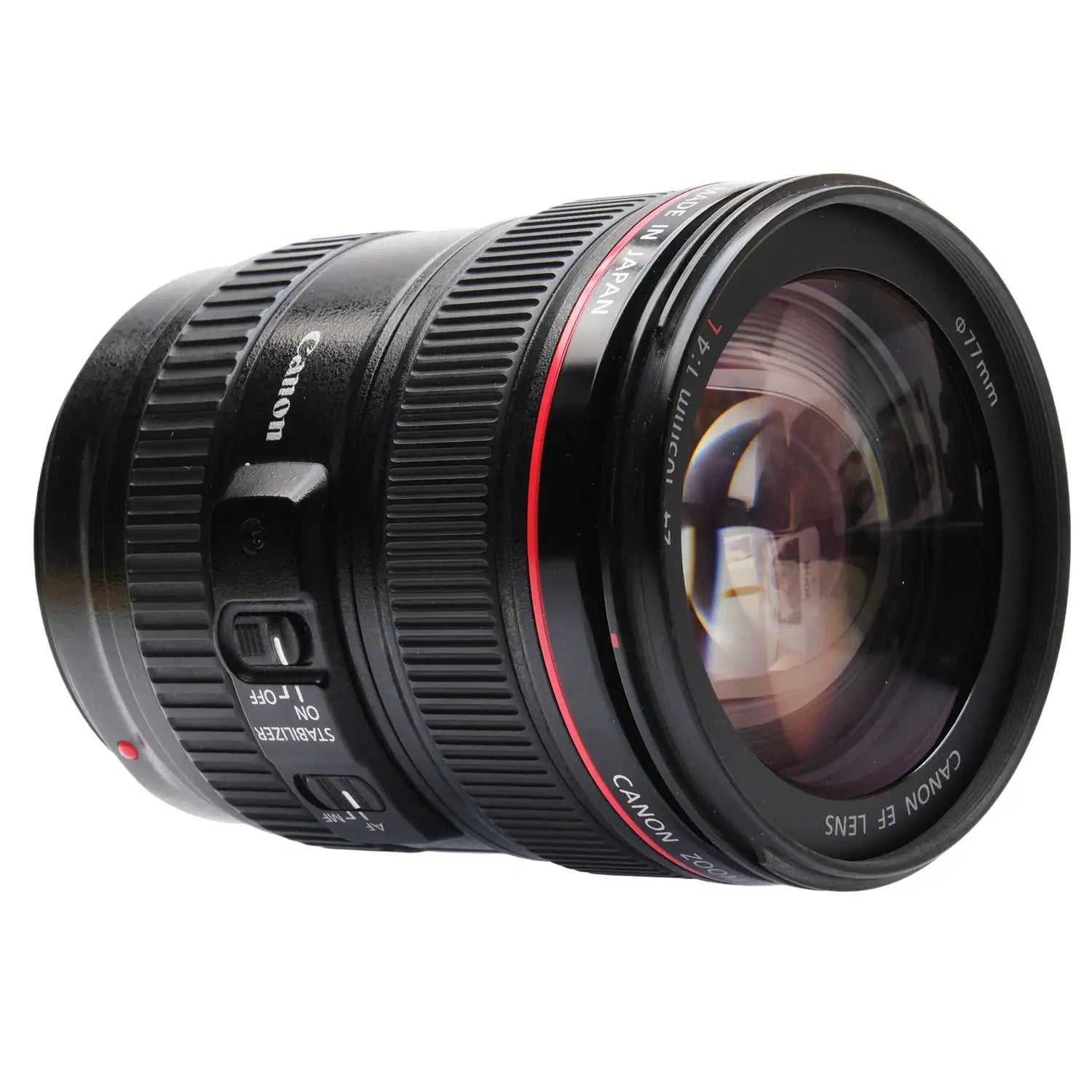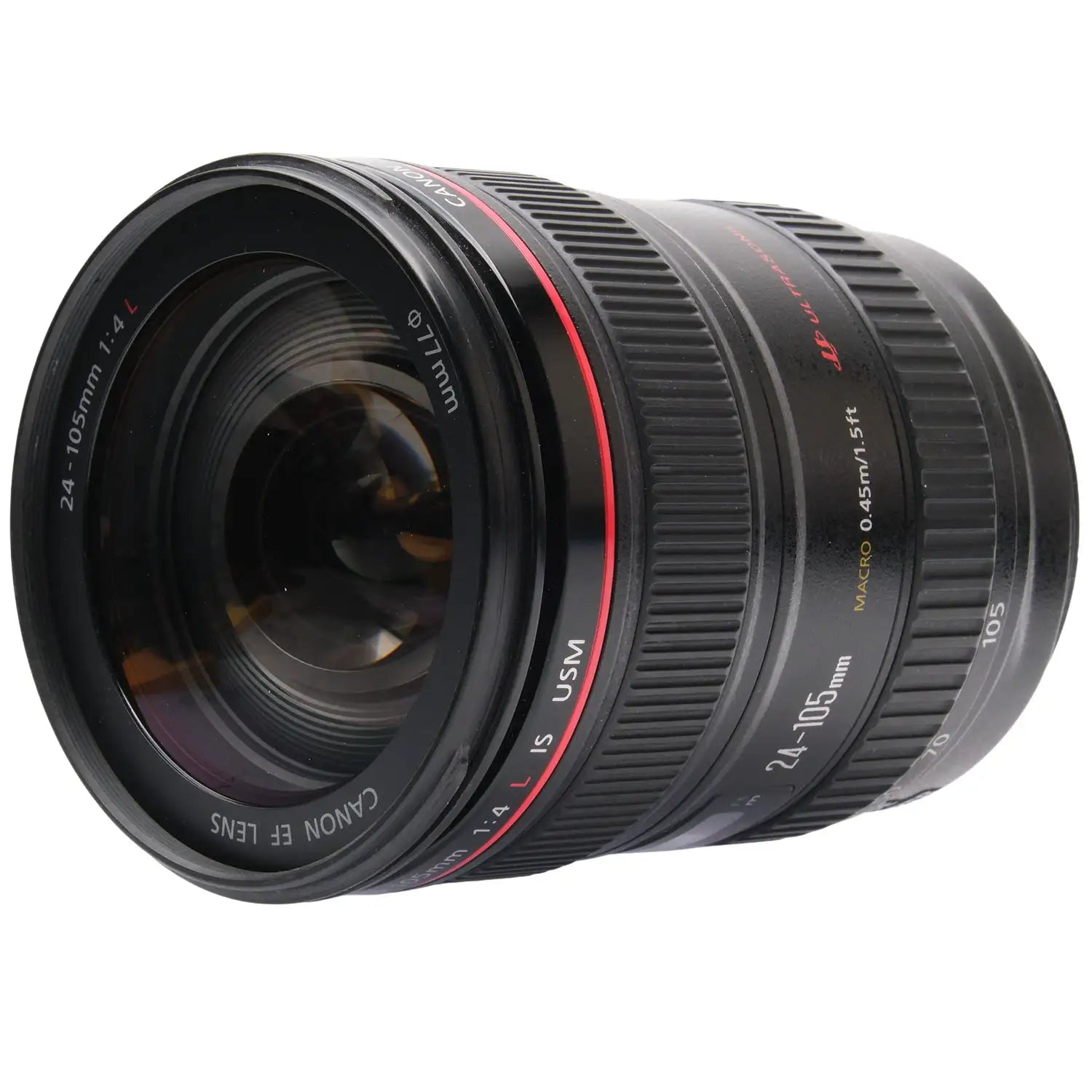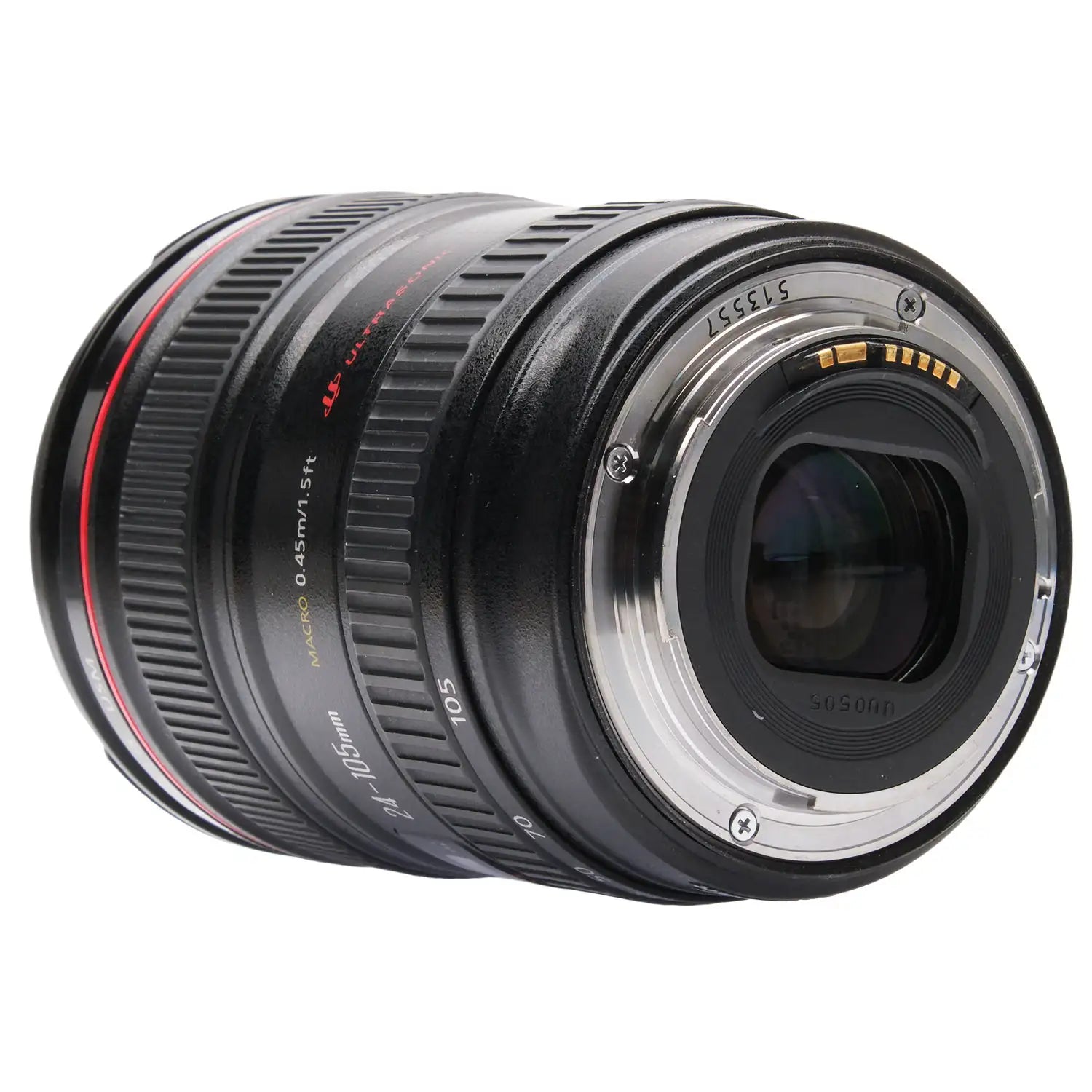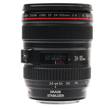 This Canon EF 24-105mm f4 L IS USM Zoom Lens, #513557, is in good condition with some handling wear. I rate it cosmetically an (8+). The focus and zoom rings are a bit stiff, but the autofocus and aperture function properly and the glass is clean and clear with no haze, marks, or fungus. There are a few faint specks of dust inside, but they do not affect image quality. This lens includes a Canon lens hood and front & rear caps. Please refer to the photos for details.