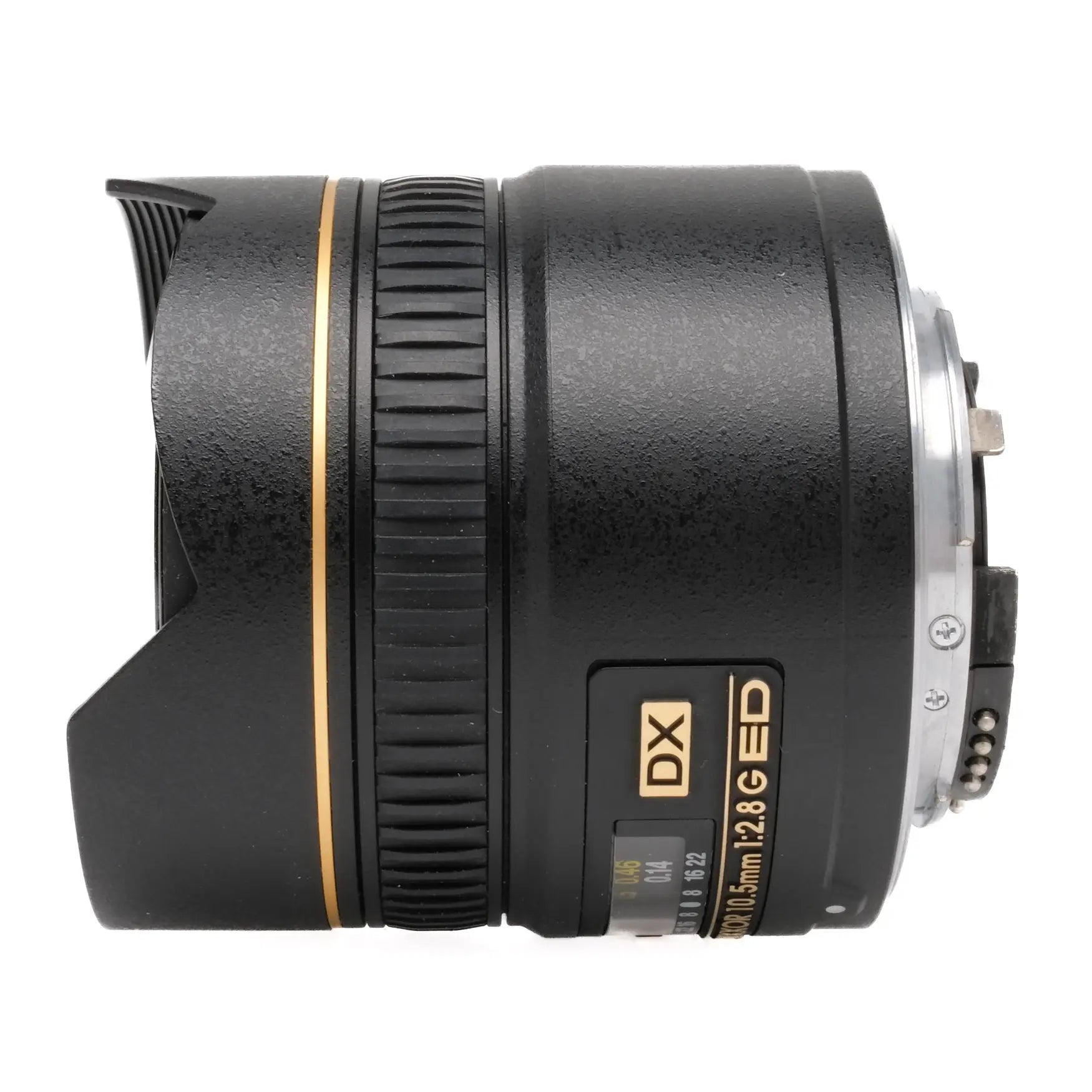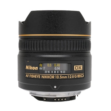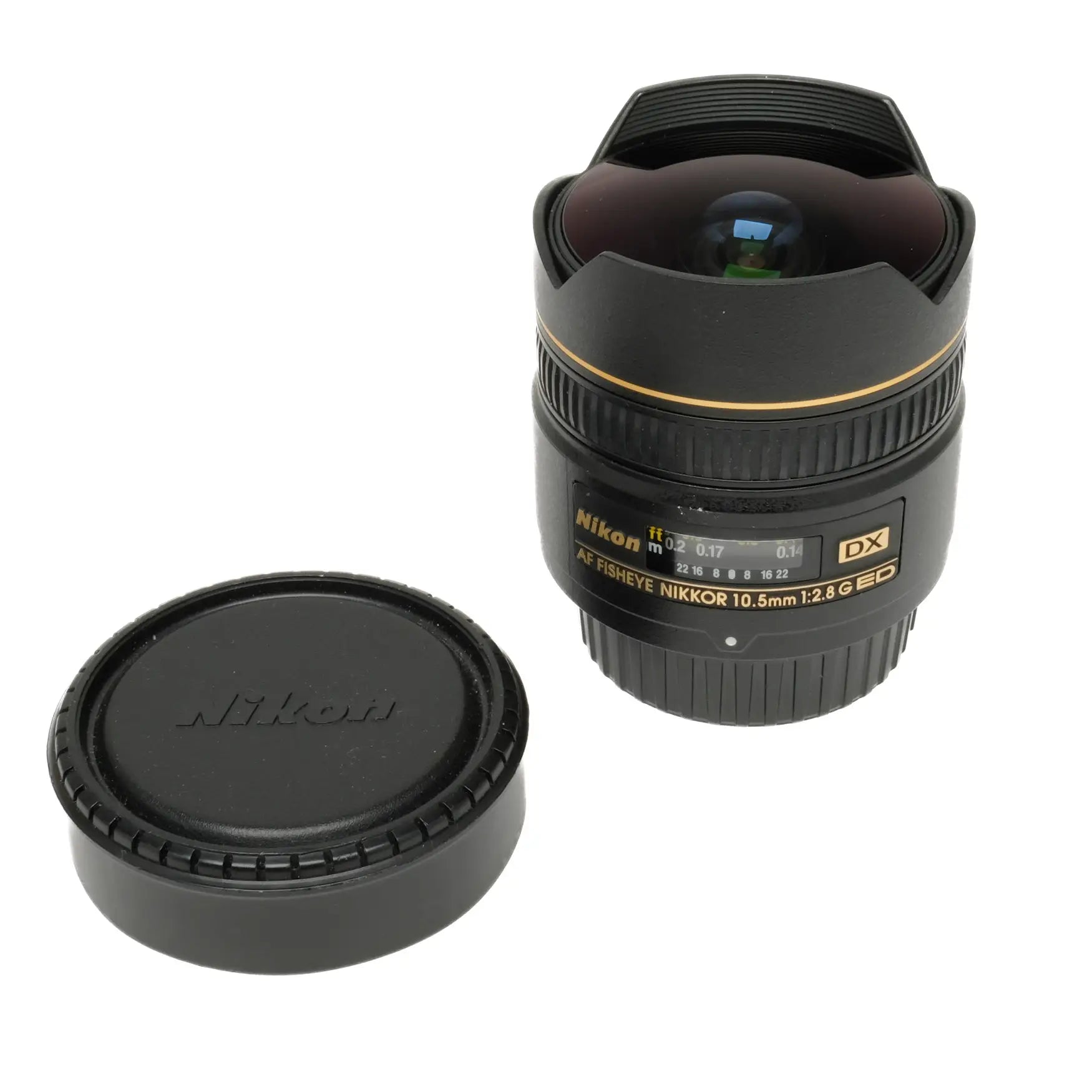 This Nikon Nikon 10.5mm f2.8 Fisheye #315725 is in excellent cosmetic condition with faint handling wear found throughout, please see photos for visual reference. Cosmetically, this lens has been rated at a (9+) condition. This lens is in proper working order, the autofocus is accurate and the focus is smooth. The glass is clean and clear with no marks fungus or haze. This lens includes front/rear caps.