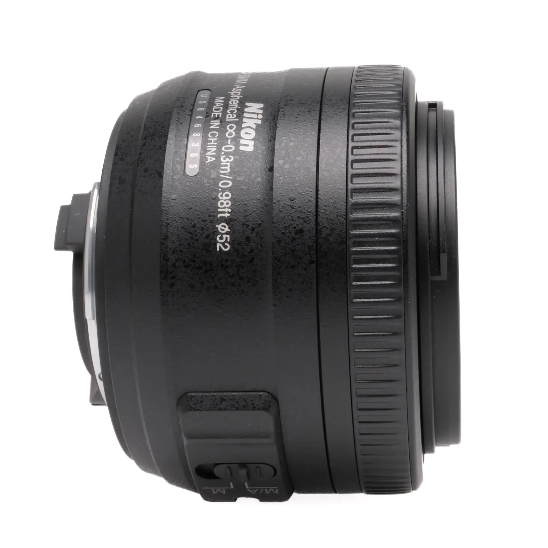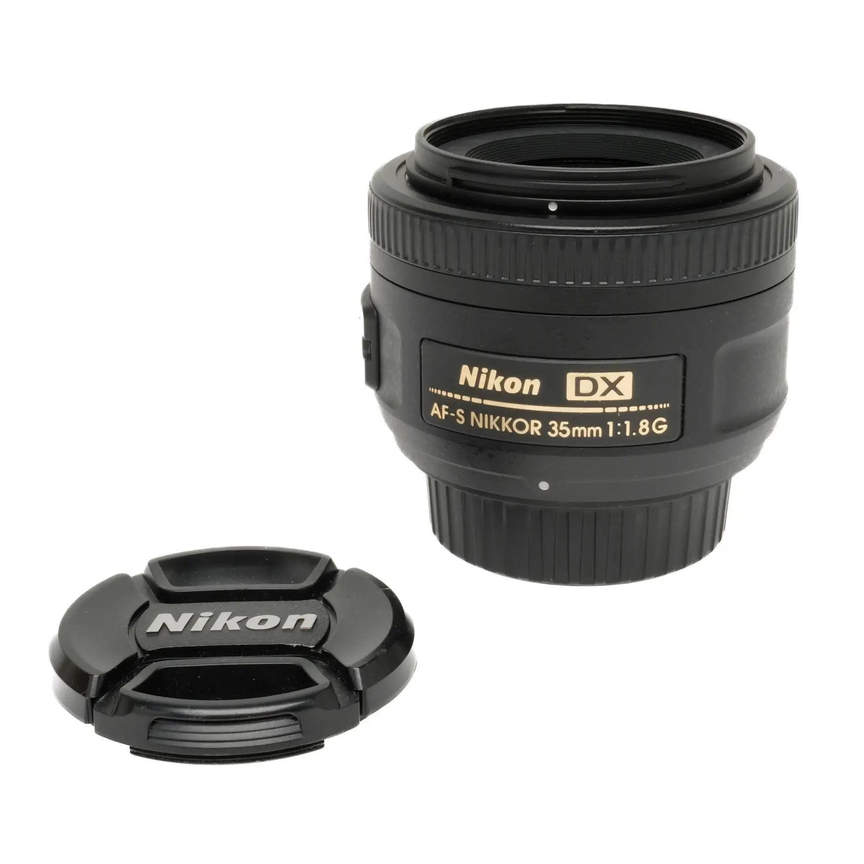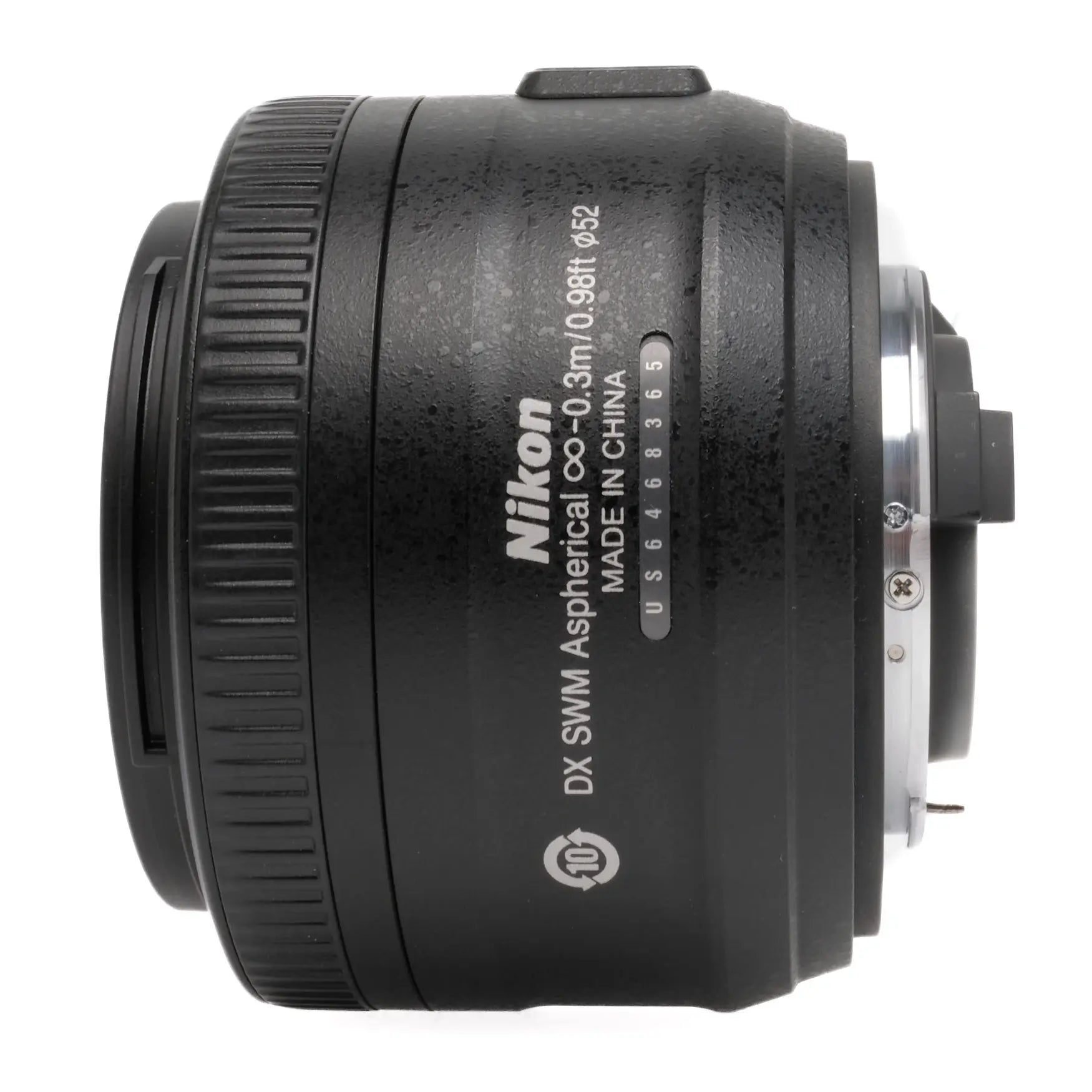 This Nikon AF 35mm f1.8 G DX Lens, #US6468365, is in nice condition with only minor edge wear. I rate it cosmetically at (9) condition. The focus is smooth and the aperture works well. The glass is clean and clear with no haze, marks or fungus. This lens comes with both caps.