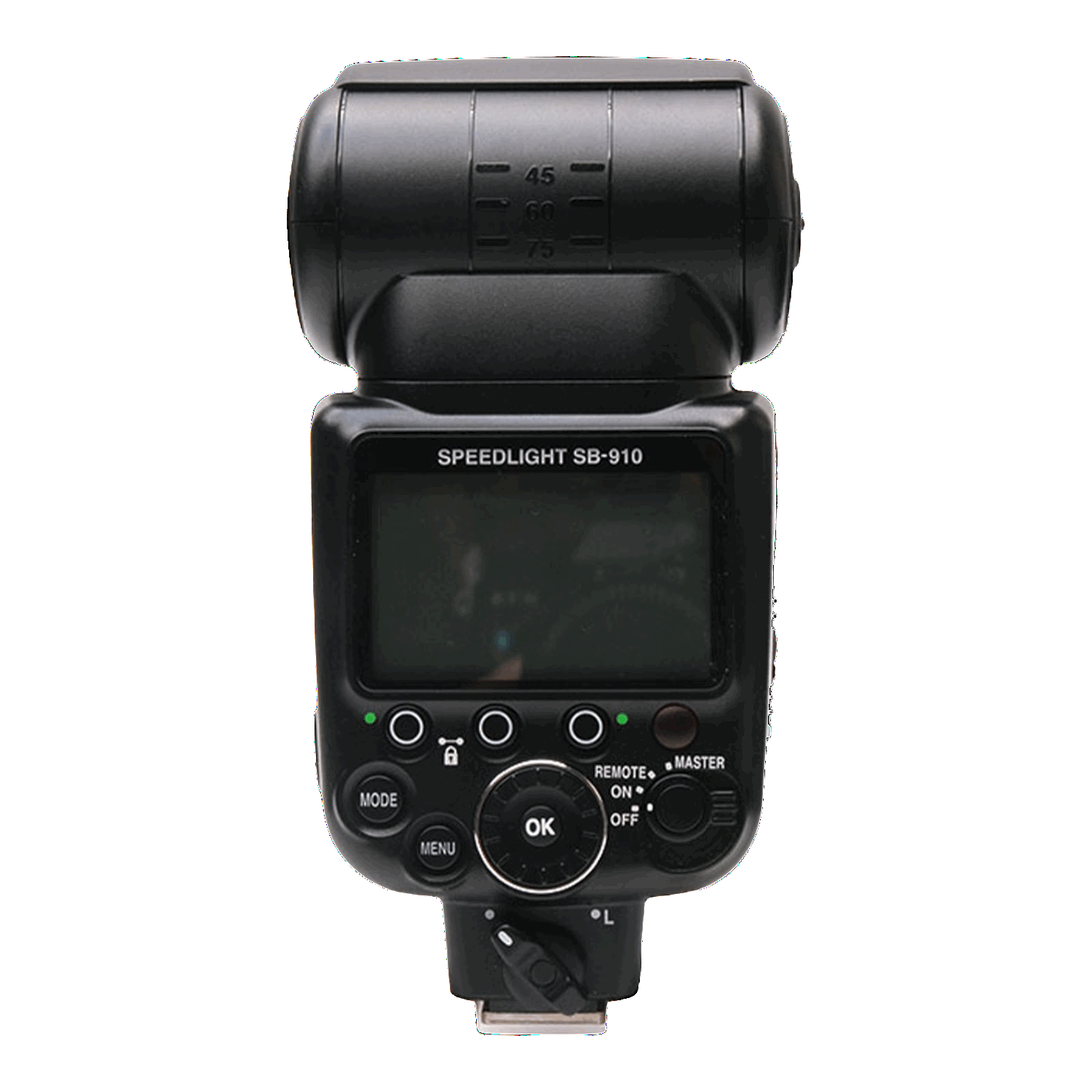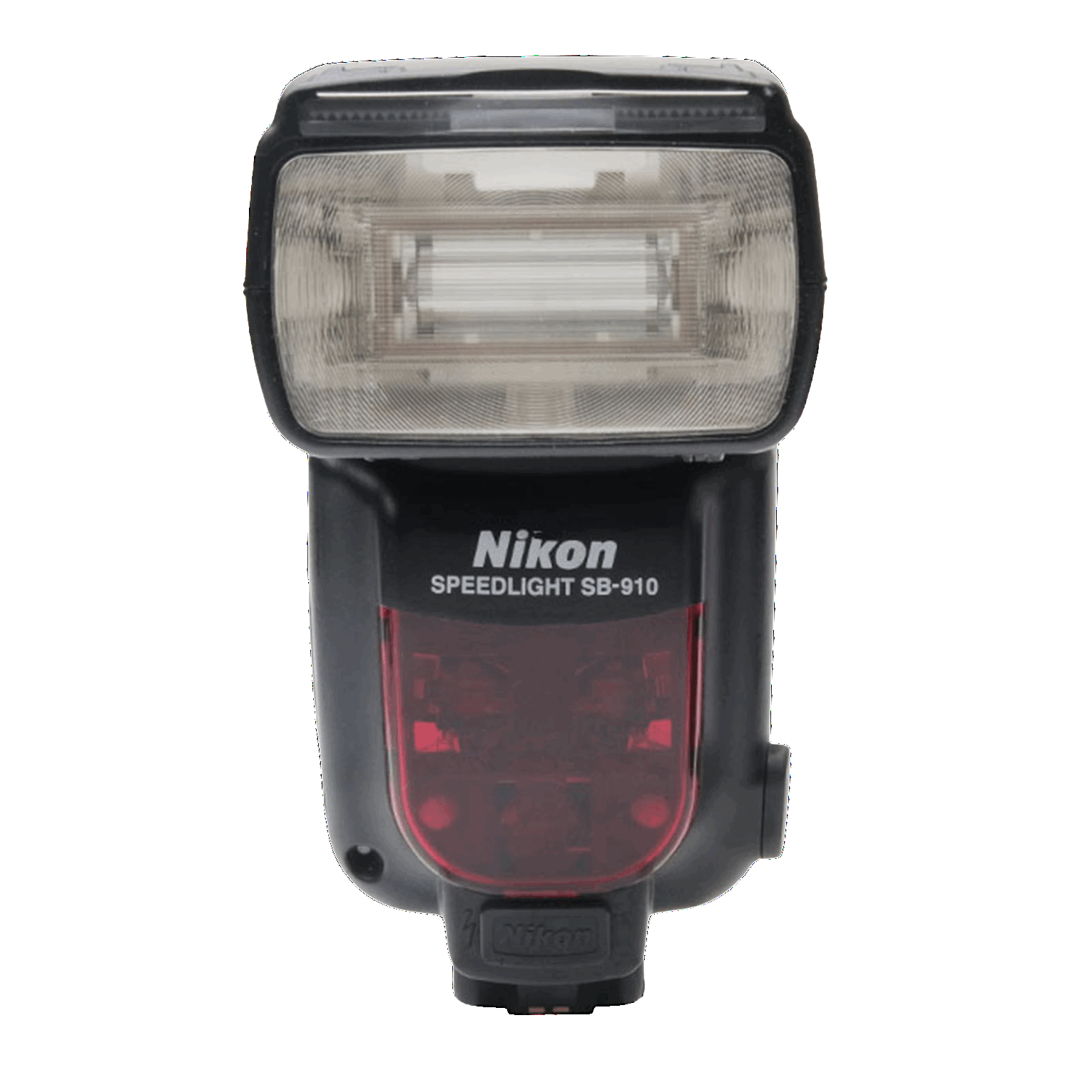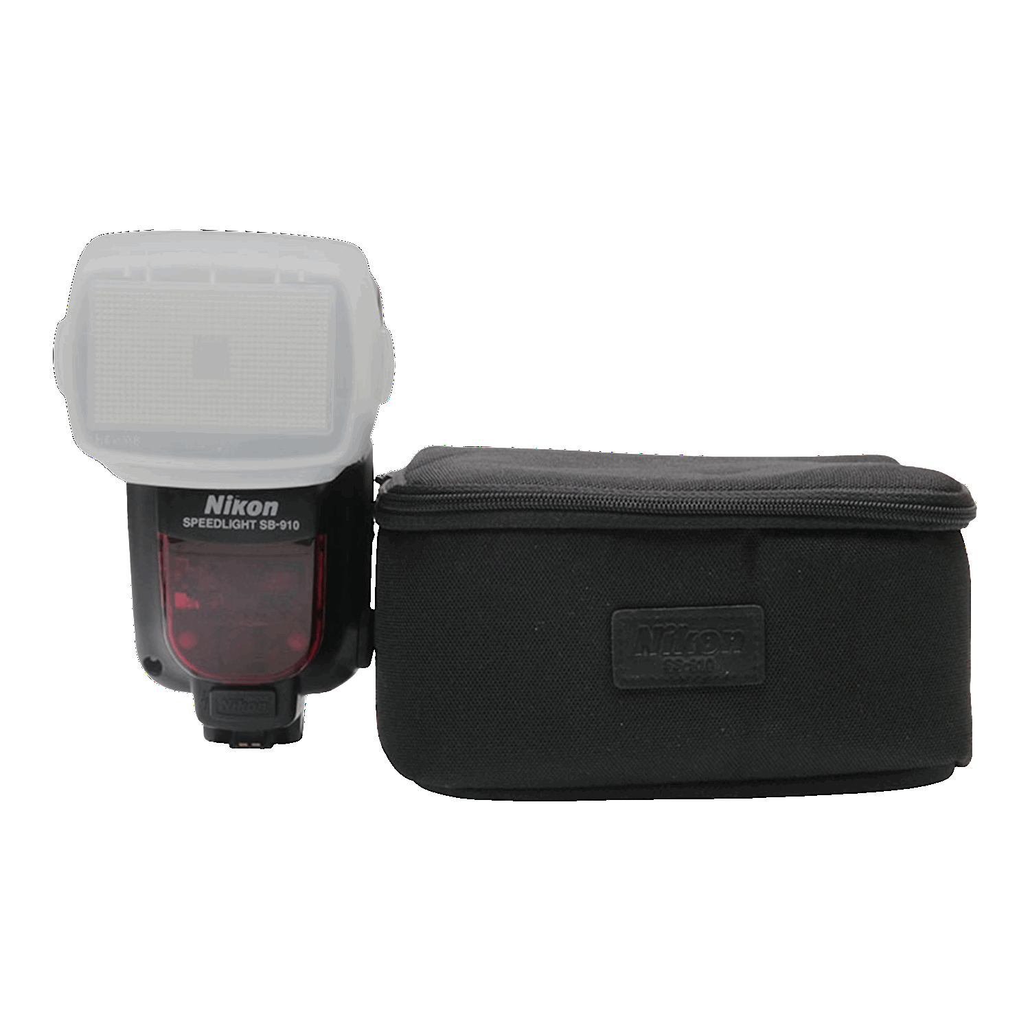 This Nikon Speedlight SB-910 Flash, #2275609, is in great condition with minor handling wear. I rate it cosmetically a (9). The flash is in proper working order and ready to be used; it fires and the battery compartment is corrosion-free. This flash includes a padded Nikon case, a tabletop stand, slip-on diffuser, and orange & green filters. The flash uses four (4) AA batteries (not included). Please refer to the photos for details.