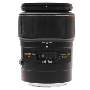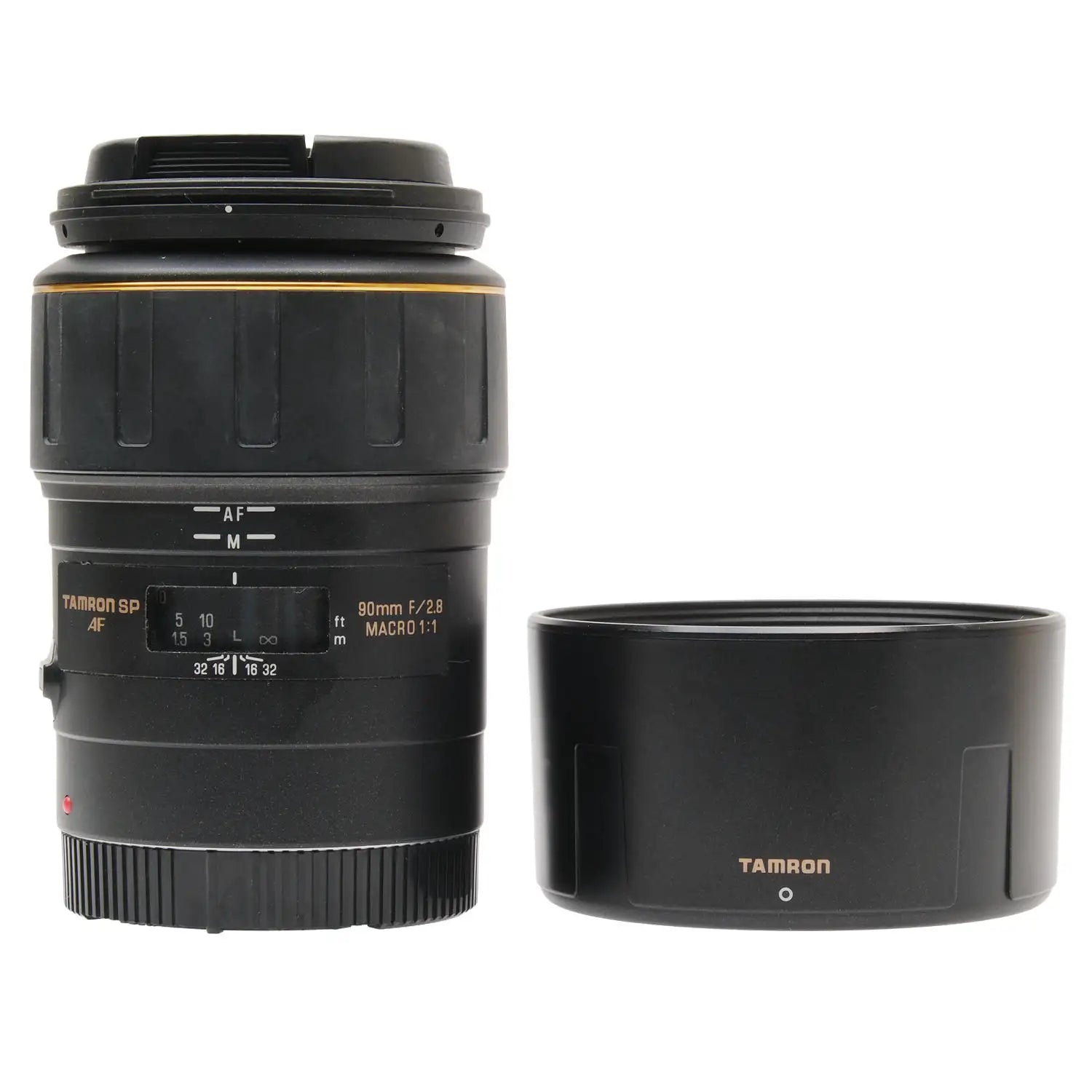 This Tamron SP AF 90mm f2.8 Macro 1:1 Lens for Canon EF, #012271, is in great condition with minor handling wear. I rate it cosmetically a (9). The focus ring is smooth, the autofocus and aperture function properly, and the glass is clean and clear with no haze, marks, or fungus. There are a few faint specks of dust inside, but they do not affect image quality. This lens includes a Tamron lens hood and front & rear caps. Please refer to the photos for details.
