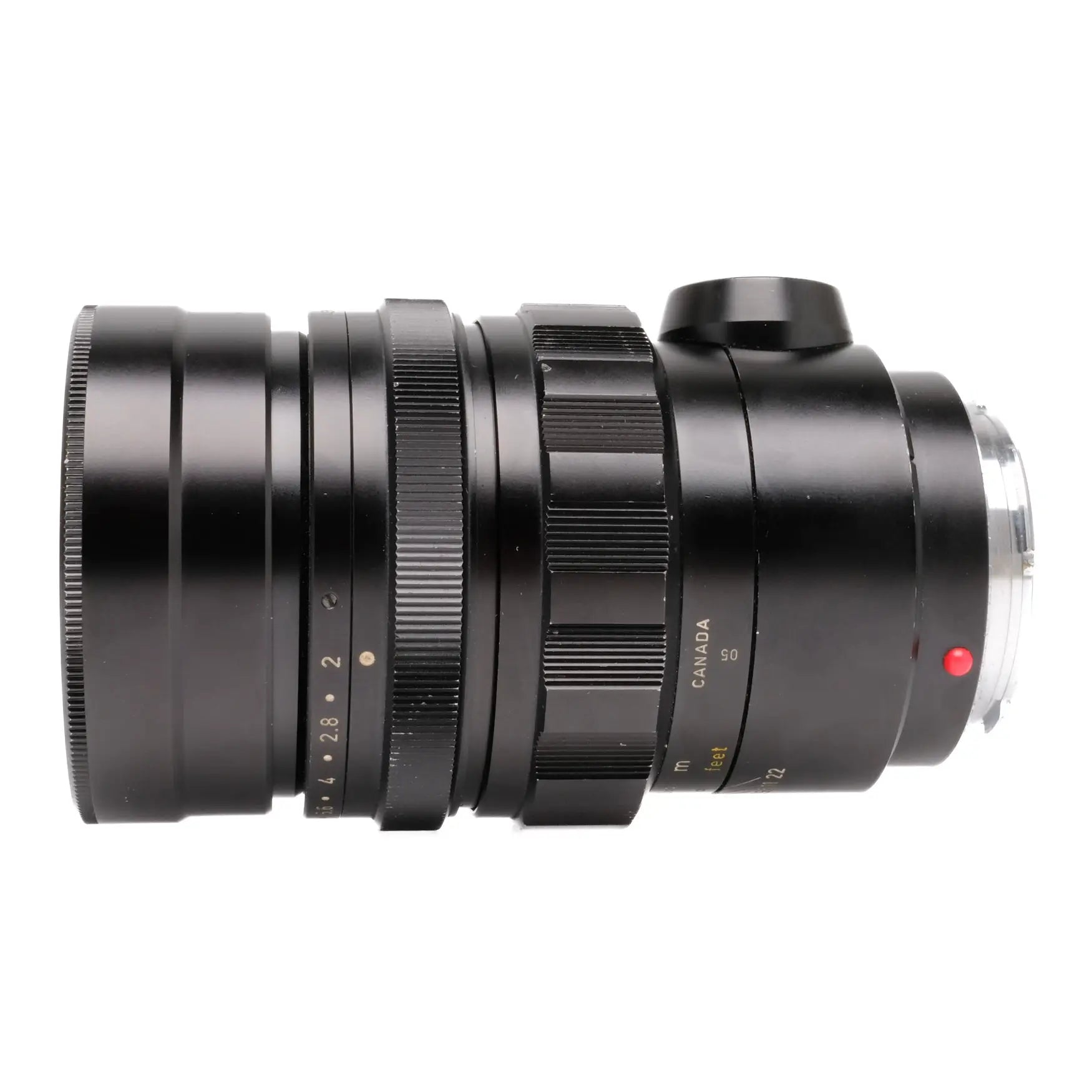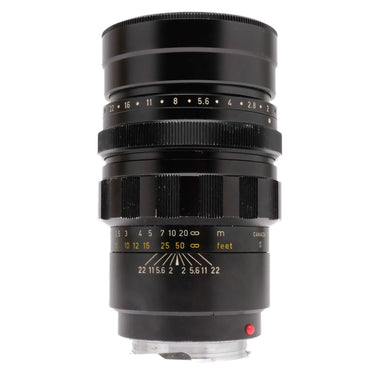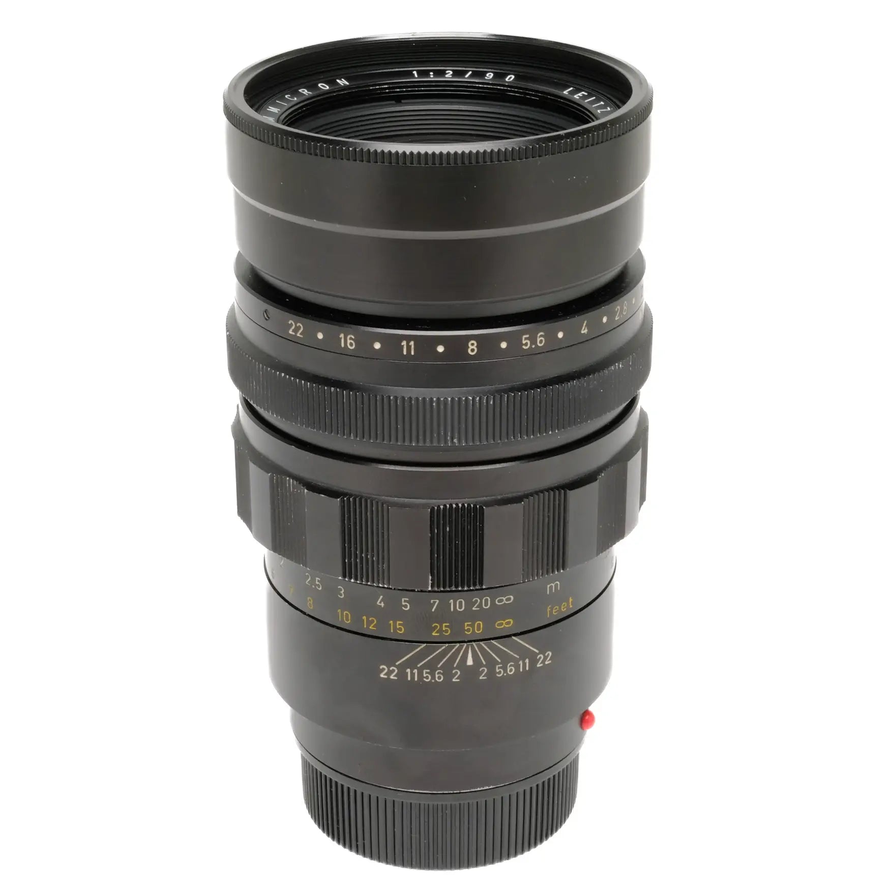 This Leica 90mm f/2 Summicron is in average cosmetic condition with normal handling and edge wear found throughout; please see photos for visual reference. Cosmetically, this lens has been rated at an (8) condition. This lens is in proper working order; the aperture and focus are smooth, and the glass is clean and clear with no signs of fungus, haze, or marks present. This lens includes a rear cap.