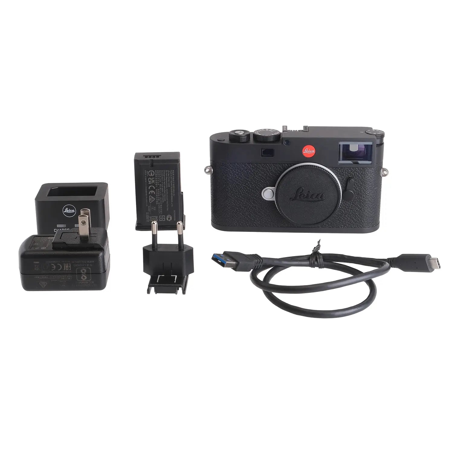 This Leica M11 Camera Body Black #5669550, is in good cosmetic condition with minor signs of handling wear found throughout, please see photos for visual reference. Cosmetically, this camera has been rated at a (9) condition. This camera is in proper working order; the finder is bright and accurate, the sensor is unmarked, and the memory card slot reads and writes. This camera comes with a battery and a charger only. This camera is ready for use!