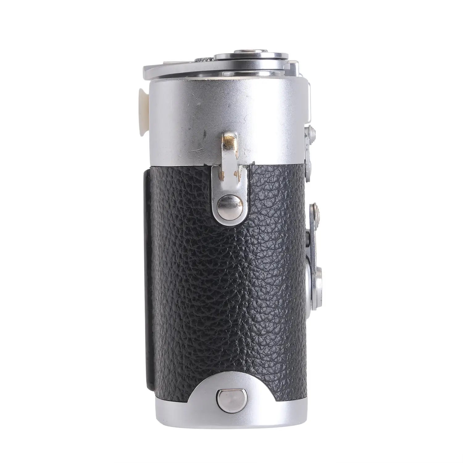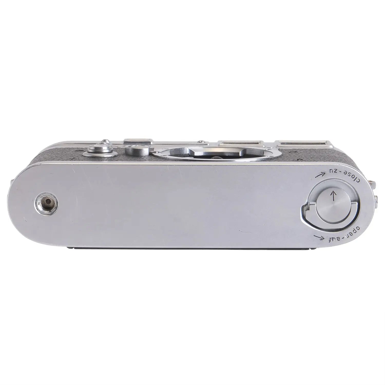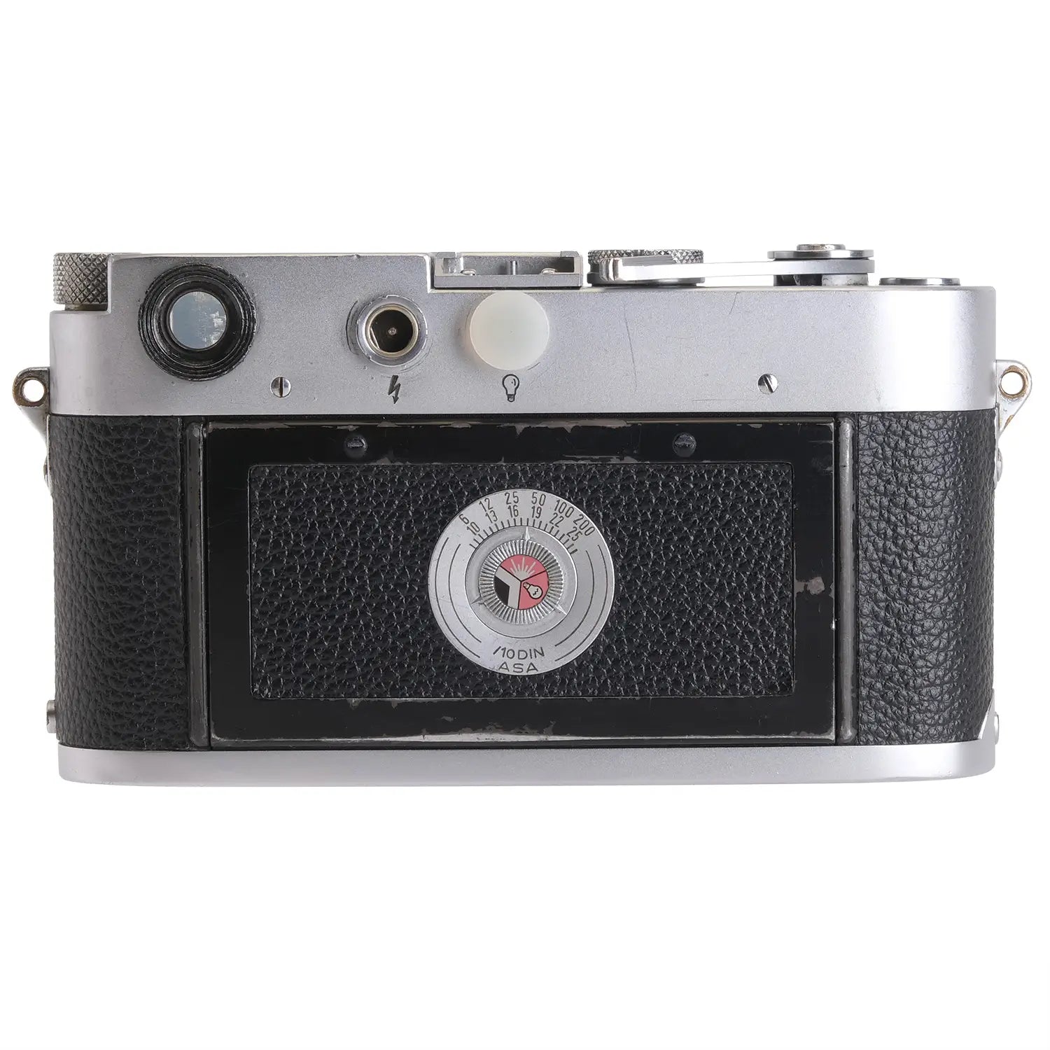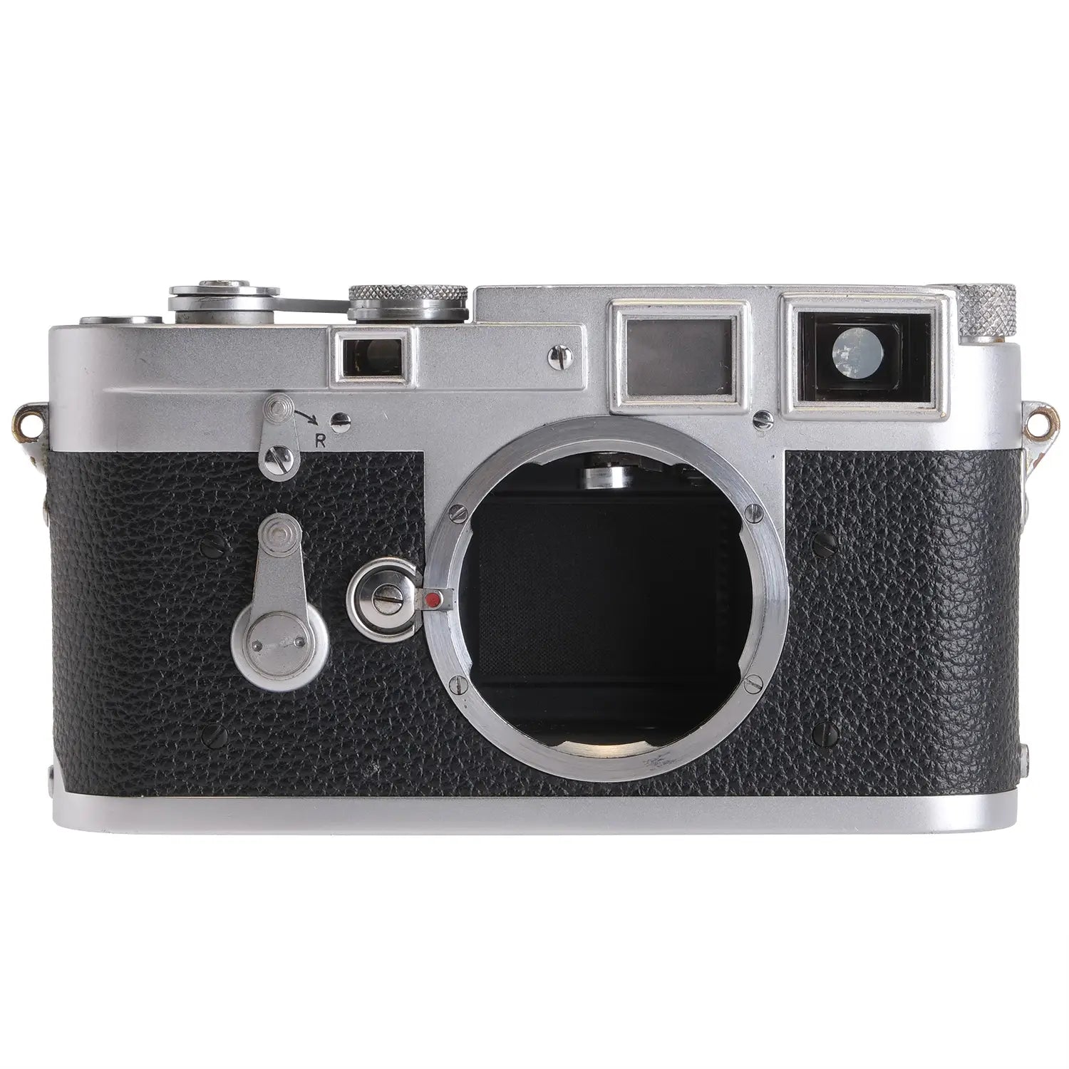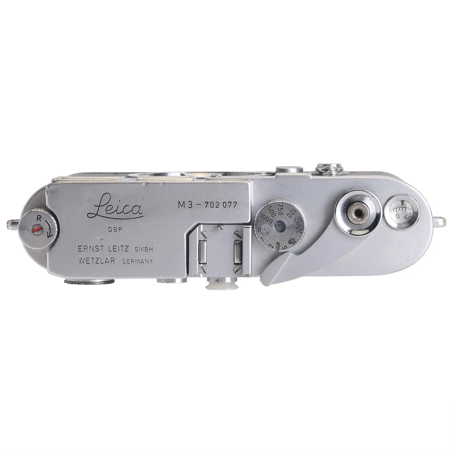 This Leica M3 DS Camera Body #702077, is in average cosmetic condition with heavy signs of handling wear found throughout, please see photos for visual reference. Cosmetically, this camera has been rated at a (8) condition. This camera is in proper working order; the finder is bright and accurate with minor coating separation that does not affect use, the film advance and shutter are smooth, all shutter speeds are accurate, the self timer functions as intended, and the shutter curtain is in excellent condition. This camera was serviced by DAG camera. This camera is ready for use!