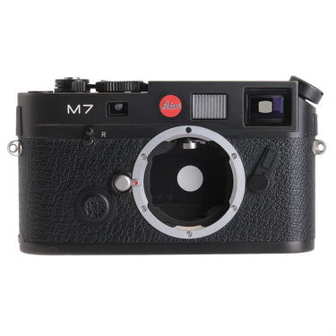 This Leica M7 Camera Body Black 2943619, is in good cosmetic condition with minor signs of handling wear found throughout, please see photos for visual reference. Cosmetically, this camera has been rated at a (9) condition. This camera is in proper working order; the finder is bright and accurate, the light meter is accurate, the film advance and shutter dial are smooth, all shutter speeds are accurate, and the shutter curtain is in excellent condition. This camera was serviced by DAG camera and is ready for use!