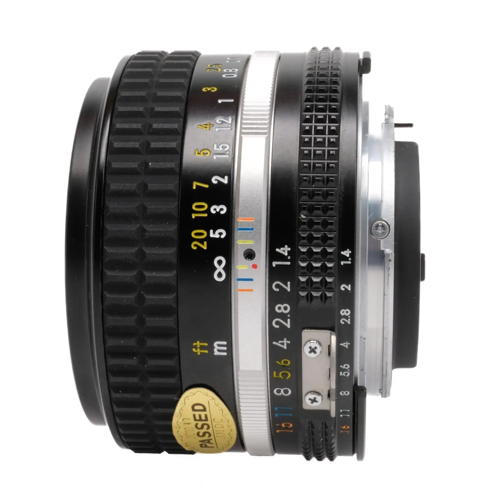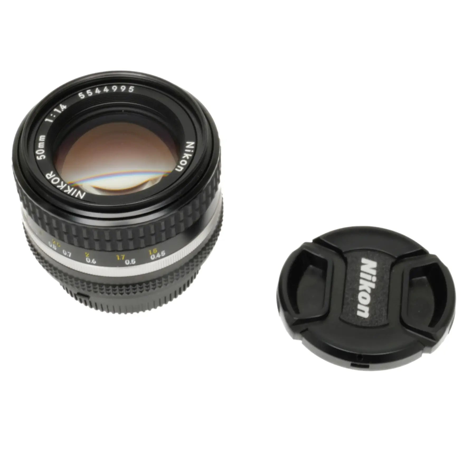 This Nikon 50mm f1.4 AIS #5544995 is in excellent cosmetic condition with faint handling wear found throughout, please see photos for visual reference. Cosmetically, this lens has been rated at a (9+) condition. This lens is in proper working order; the aperture and focus are smooth, and the glass is clean and clear with no signs of fungus, haze, or marks present. This lens includes front/rear caps.