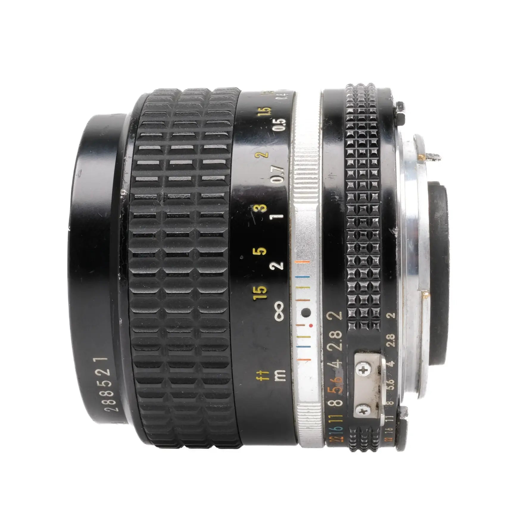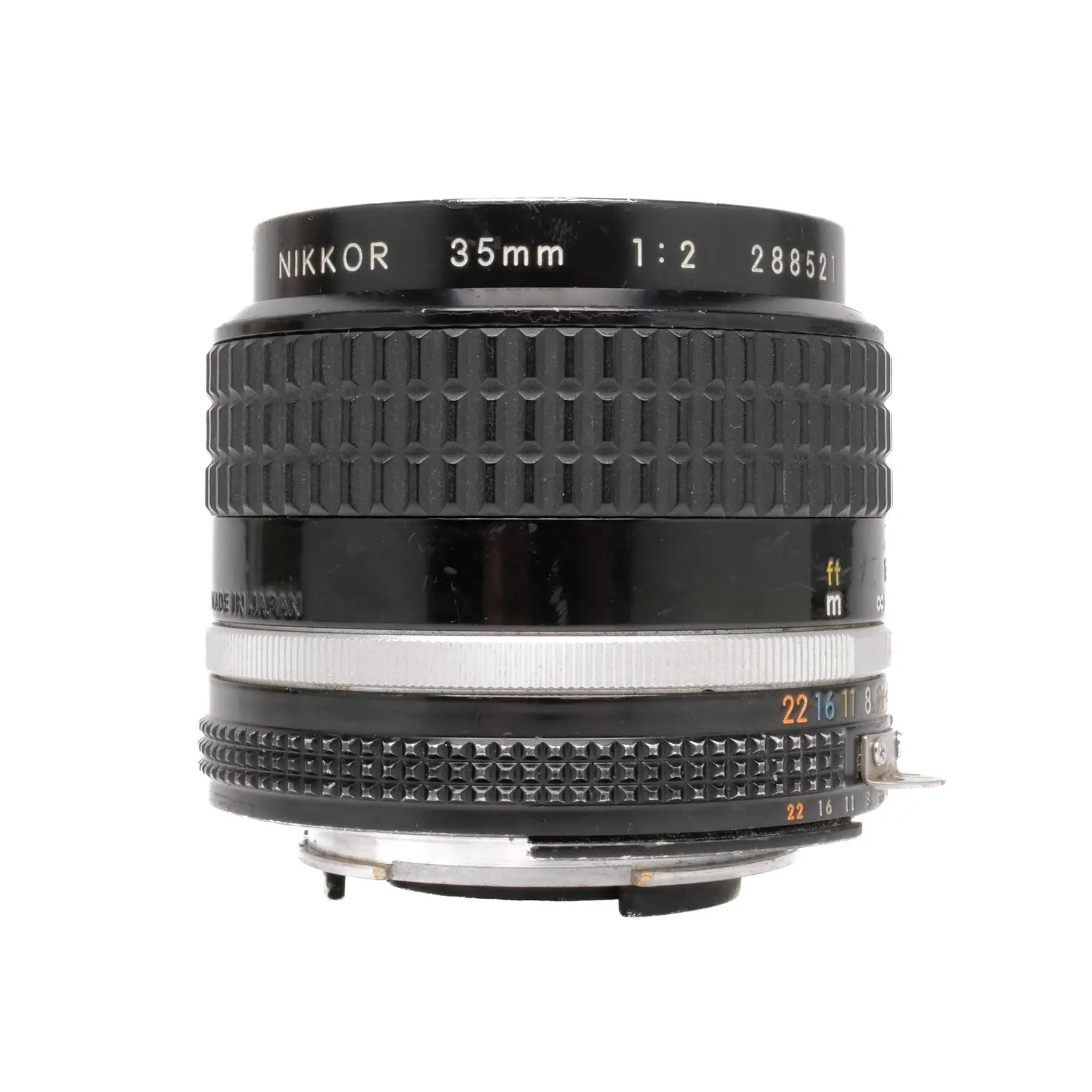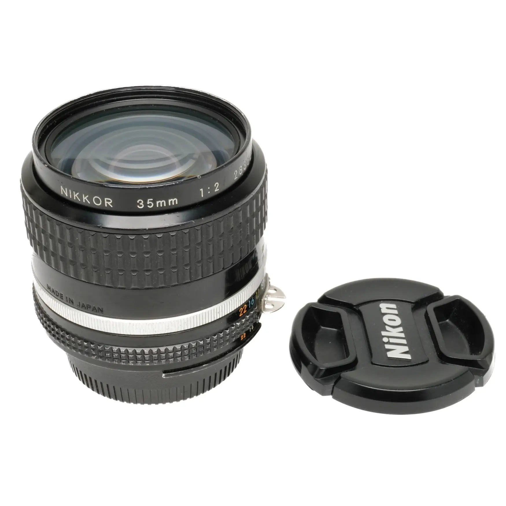 This Nikon AI-S 35mm f/2 is in heavily used cosmetic condition with noticeable handling and edge wear found throughout; please see photos for visual reference. Cosmetically, this lens has been rated at a (7+) condition. This lens is in proper working order; the aperture and focus are smooth, and the glass is clean with no signs of fungus or haze. Please note, this lens does have minor scratches on the front element. This lens includes front and rear cap.