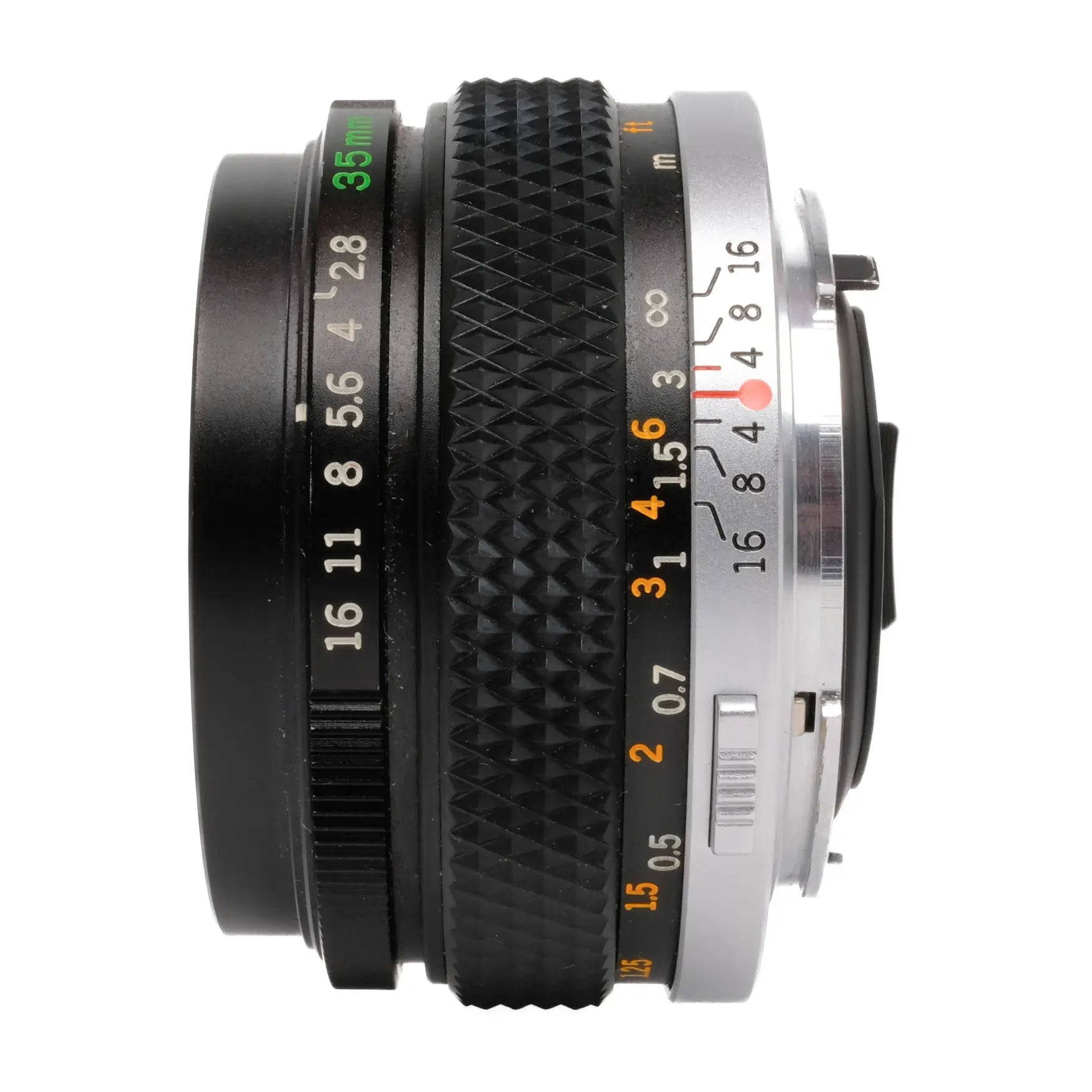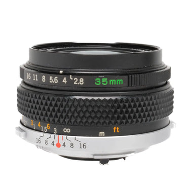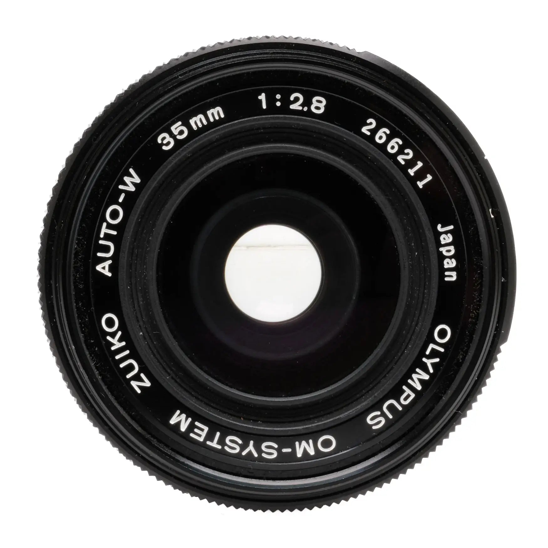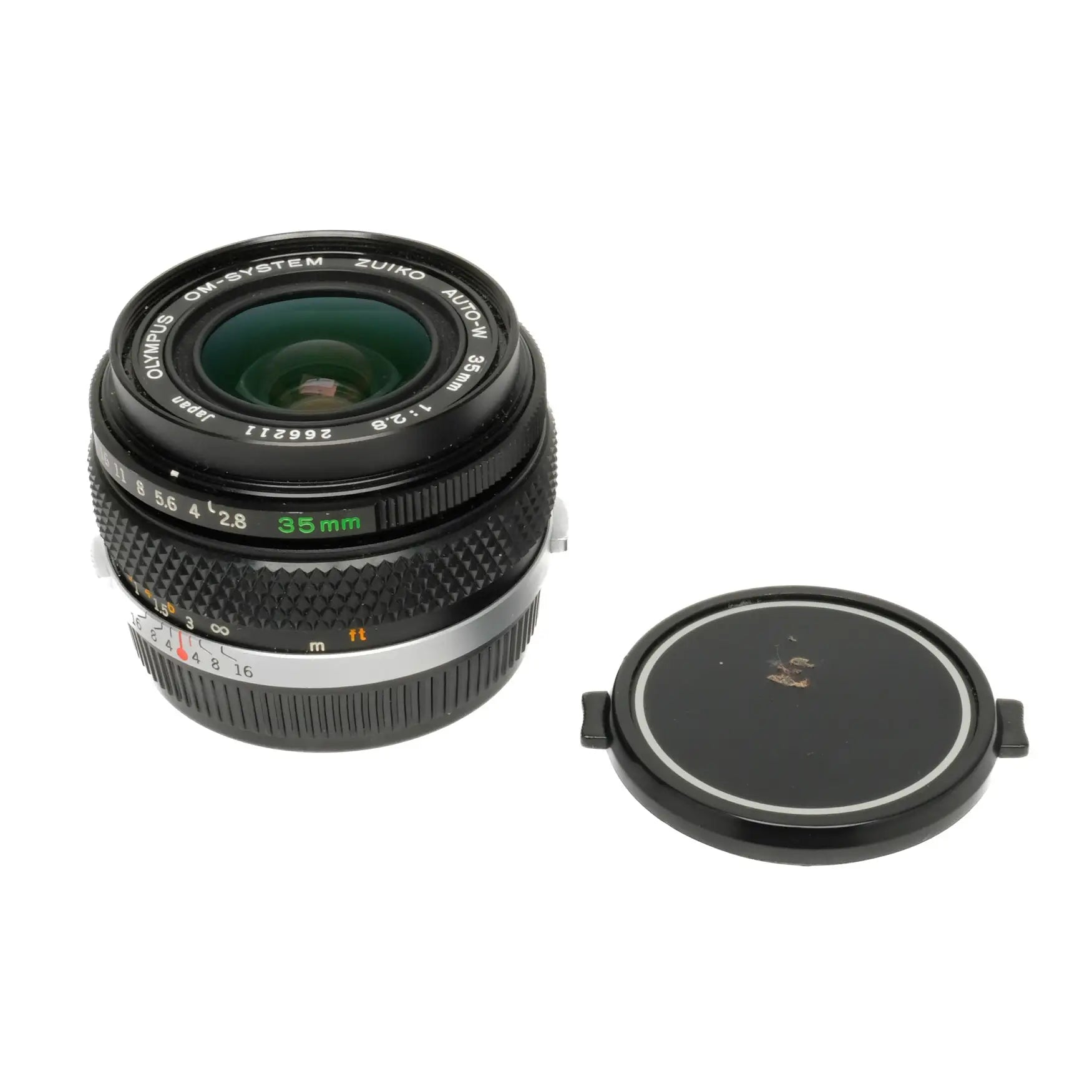 This Olympus 35mm f2.8 Auto-W #266211 is in great cosmetic condition with minor handling wear found throughout, please see photos for visual reference. Cosmetically, this lens has been rated at a (9) condition. This lens is in proper working order; the aperture and focus are smooth, and the glass is clean and clear with no signs of fungus, haze, or marks present. This lens includes front/rear caps.