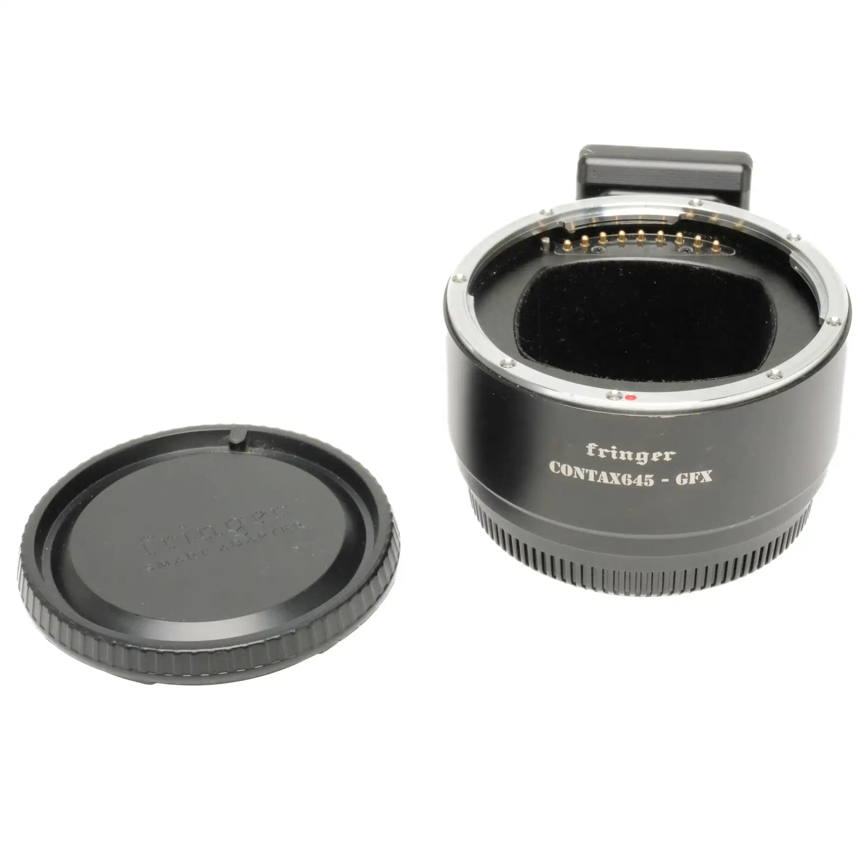 This Fringer Contax 645–GFX adapter is in great cosmetic condition with minor handling wear found throughout; please see photos for visual reference. Cosmetically, it has been rated at a (9) condition. It is in proper working order and mounts securely. This includes the front/rear caps.
