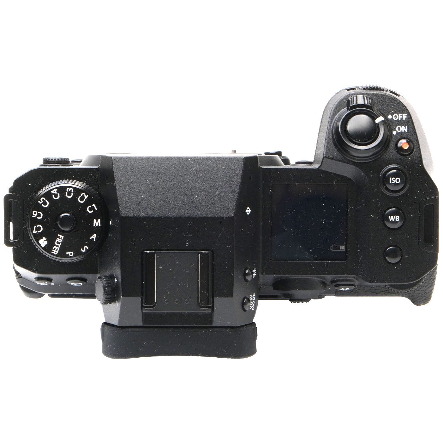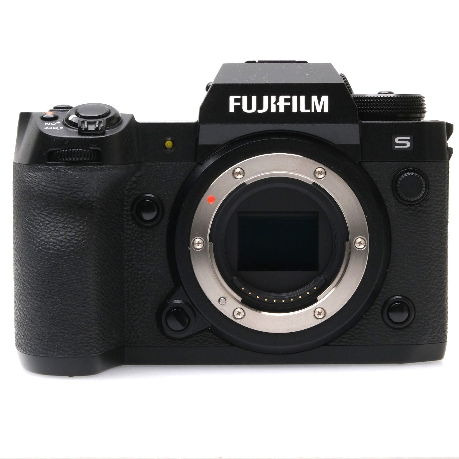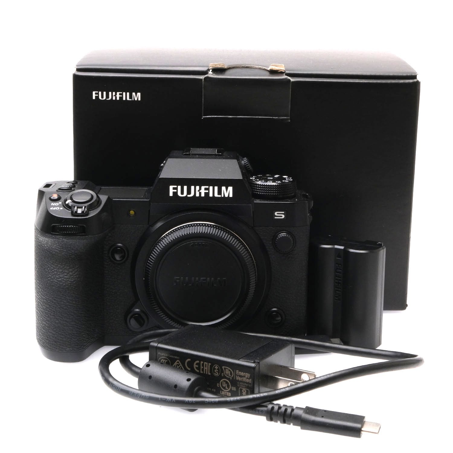 This Fujifilm X-H2S, #2B605057, is in great condition with some handling wear. I rate it cosmetically an (8+). The camera is in proper working order; the viewfinder is clear, the sensor is unmarked, and the memory card slots read & write. This camera includes a Fuji battery, a Fuji AC adaptor with a set of plug adapters, a USB-C to USB-C cable, body cap, hot shoe cover, and the original instructions & box. Please refer to the photos for details.