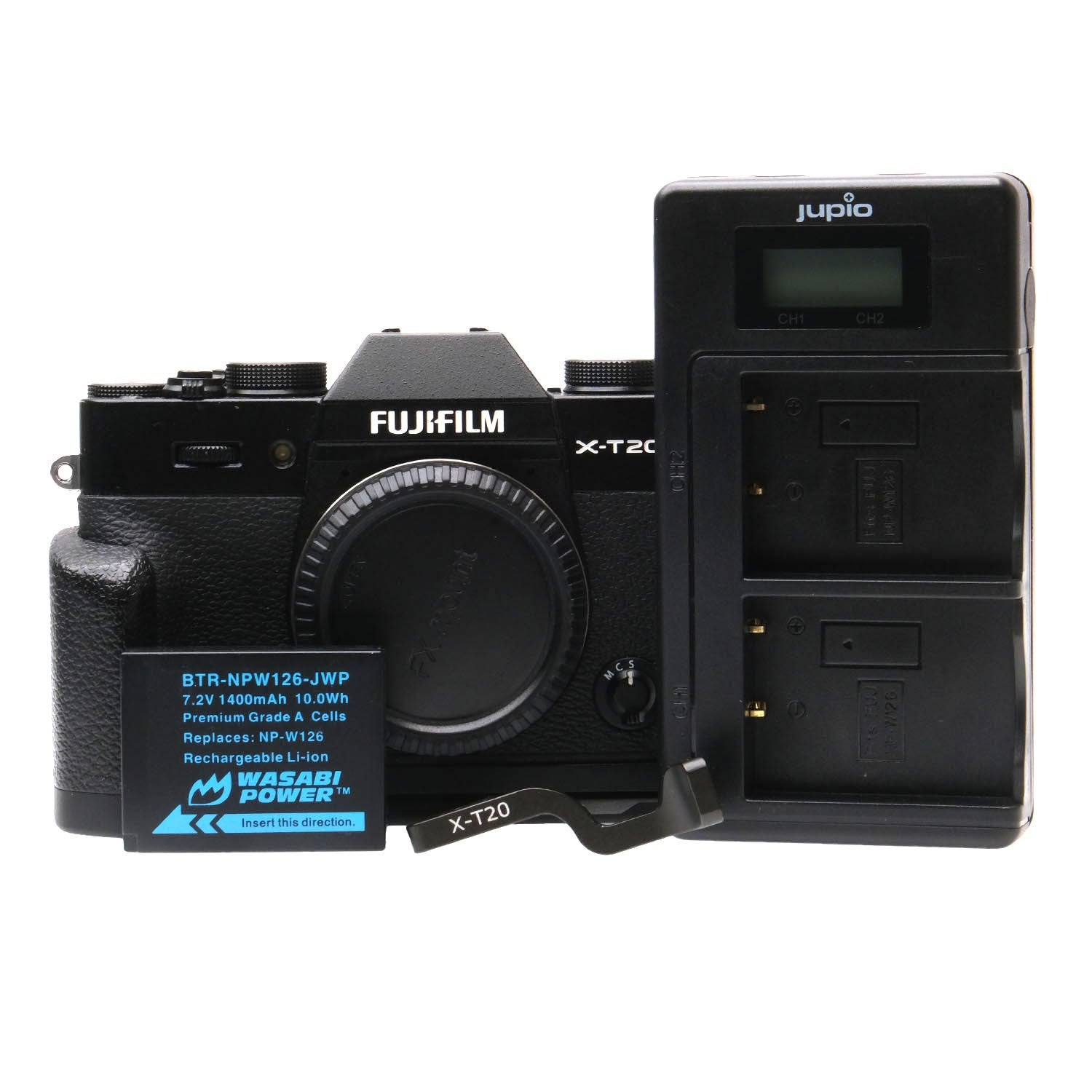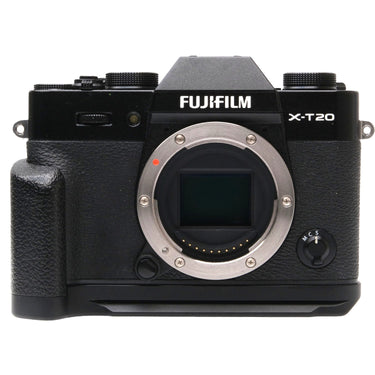 This Fujifilm X-T20 (Black), #8BA00064, is in great condition with minor handling wear. I rate it cosmetically a (9). The camera is in proper working order; the viewfinder is clear, the sensor is unmarked, the memory card slot reads & writes, and the built-in flash opens, closes, and fires. This camera includes a third-party battery, a third-party USB dual-battery charger, body cap, a third-party handgrip/baseplate, and a third-party thumb support. Please refer to the photos for details.