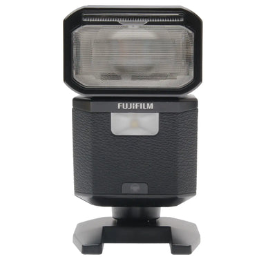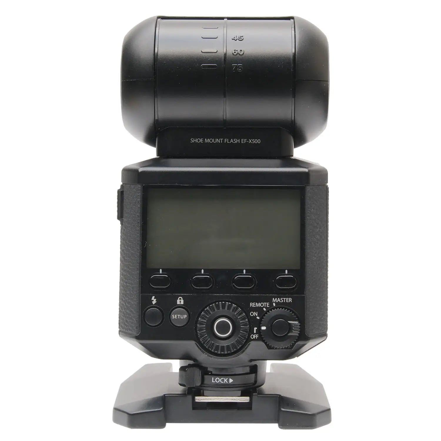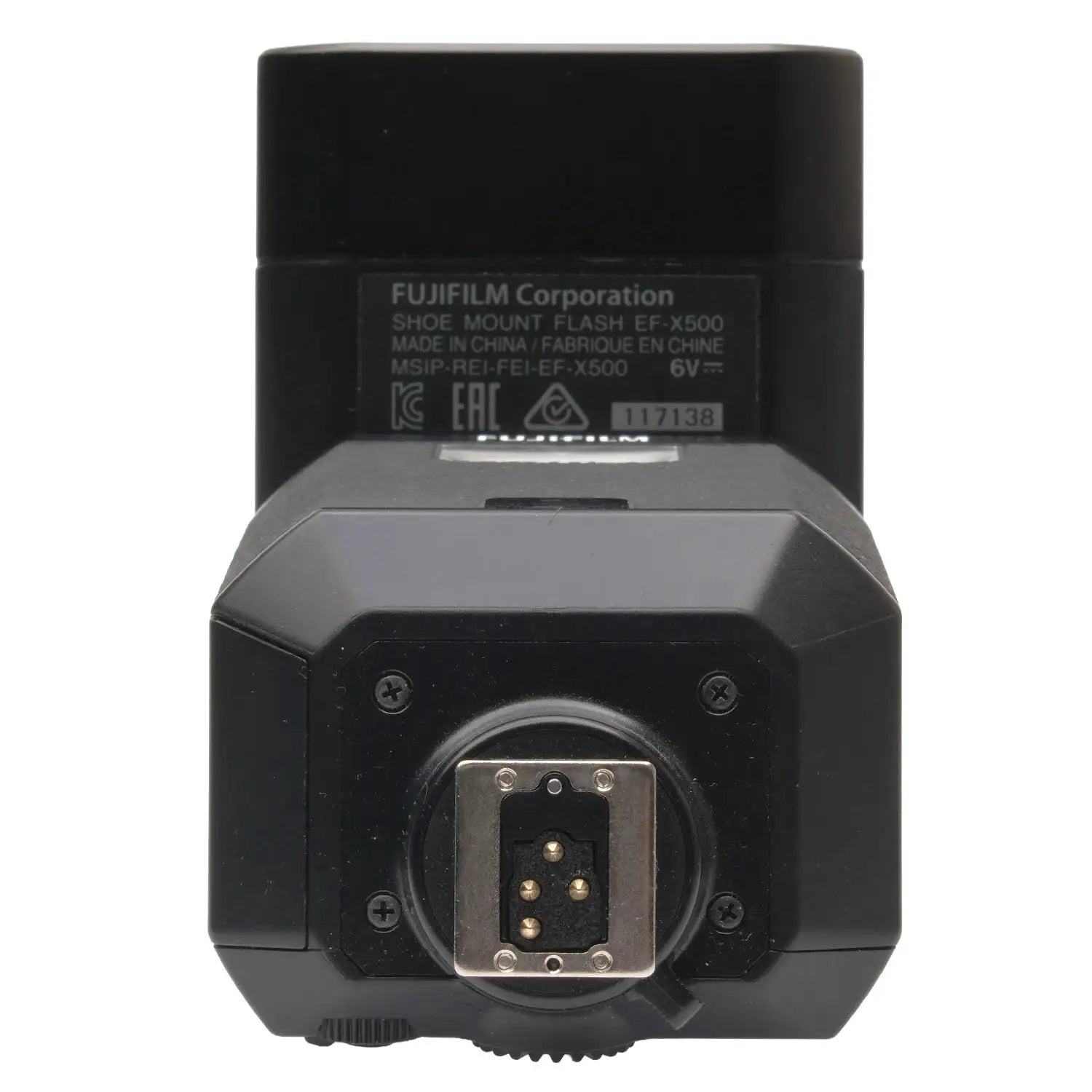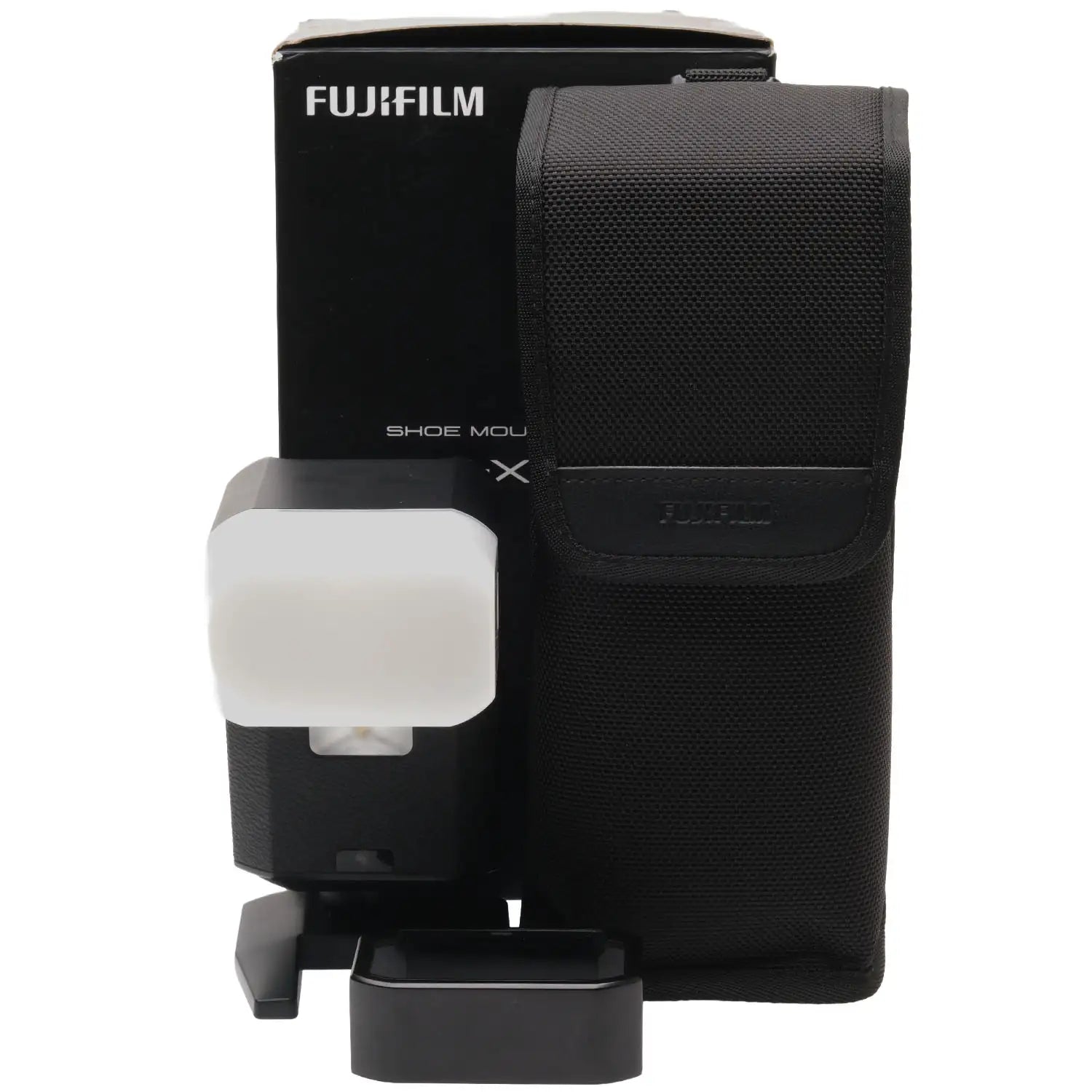 This Fujifilm EF-X500 Flash, #117138, is in great condition with minor handling wear. I rate it cosmeticaly a (9+). The flash is in proper working order; it fires and the battery compartment is corrosion-free. It includes a padded Fuji case, tabletop stand, slip-on diffuser, and the original instructions & box. It uses four (4) AA batteries (not included). Please refer to the photos for details.