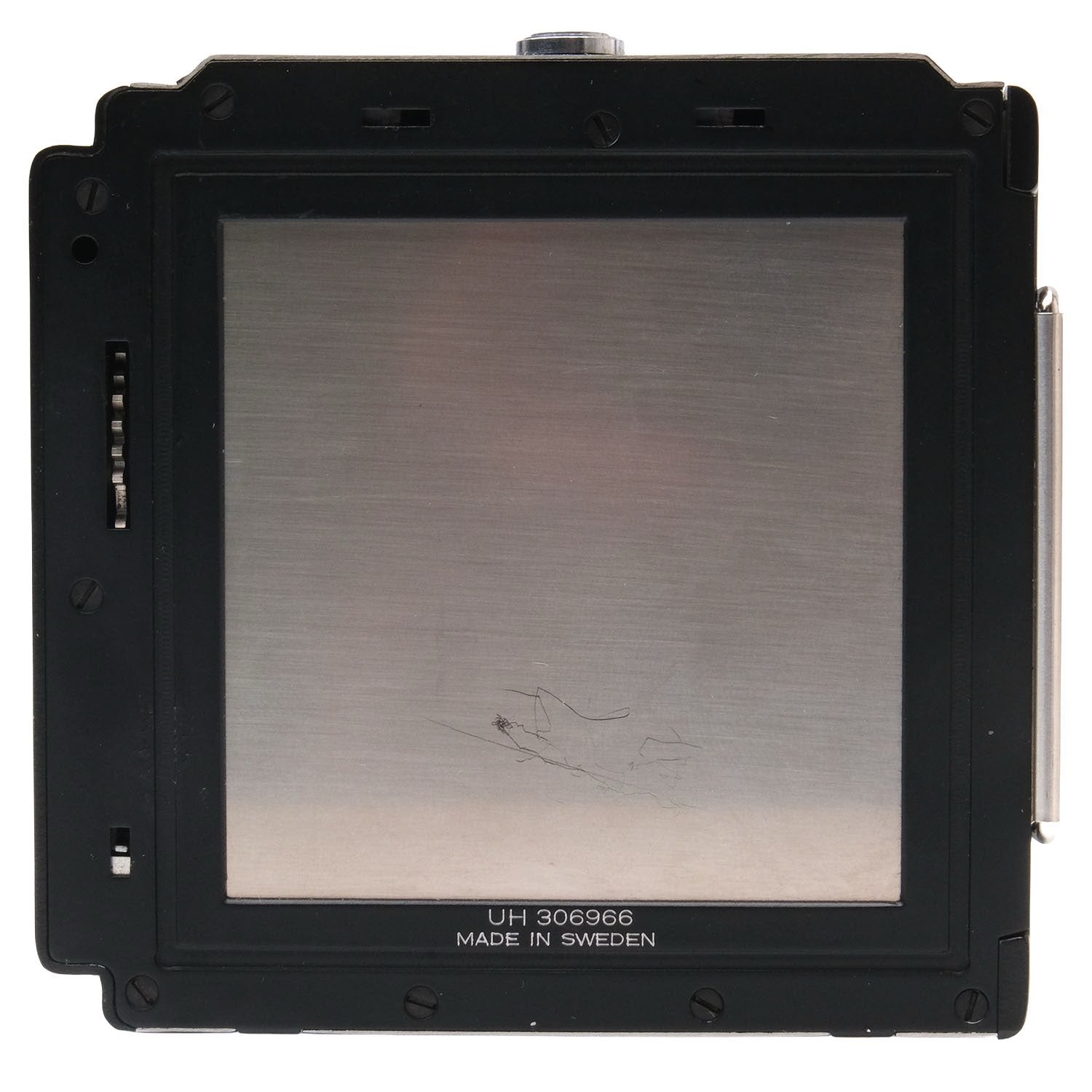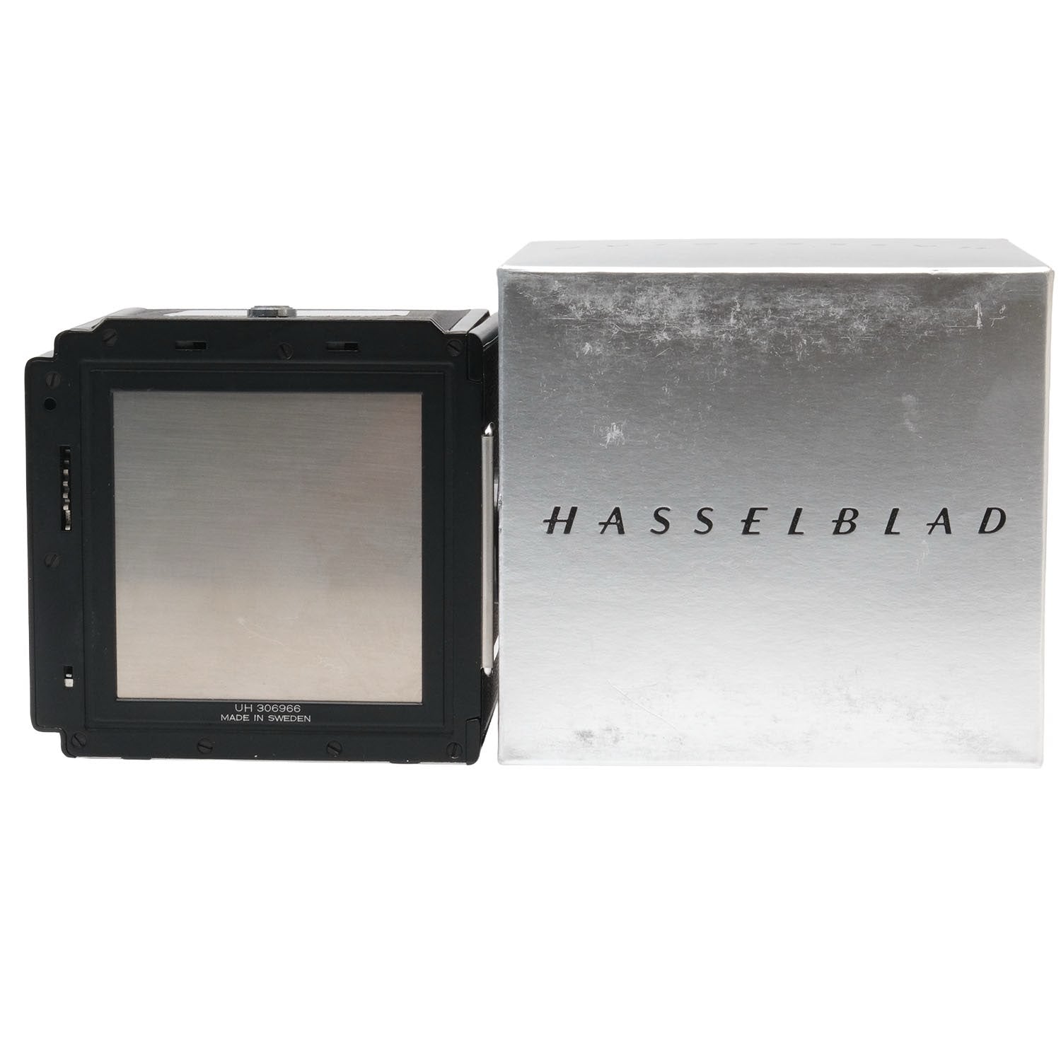 This Hasselblad A70 Film Back (Black), #UH306966, is in great condition wiht minor handling wear. I rate it cosmetically a (9+). The back is in proper working order; film advances properly and the film holder has a matching serial number. It includes a darkslide and the original box. Please refer to the photos for details.