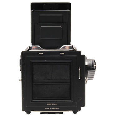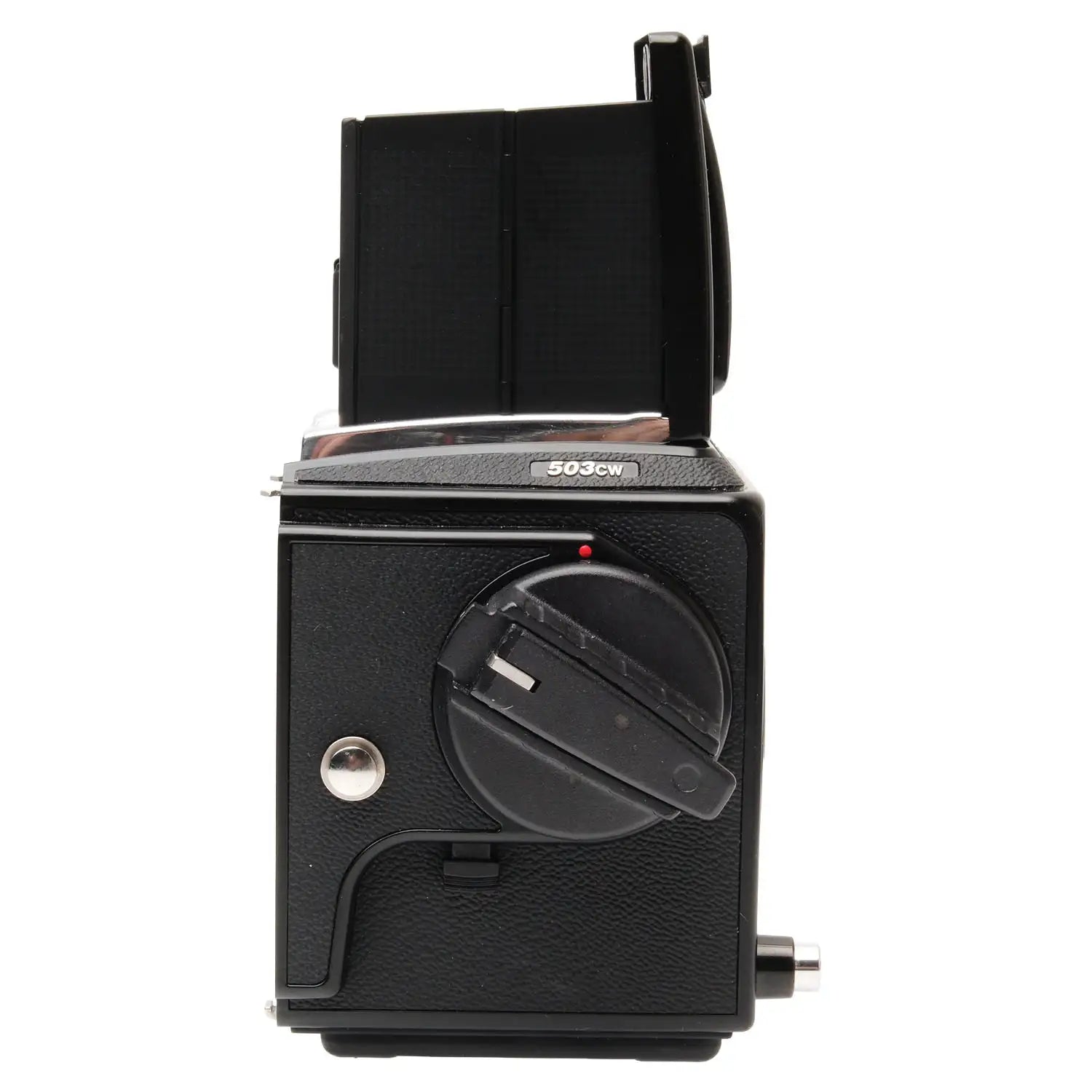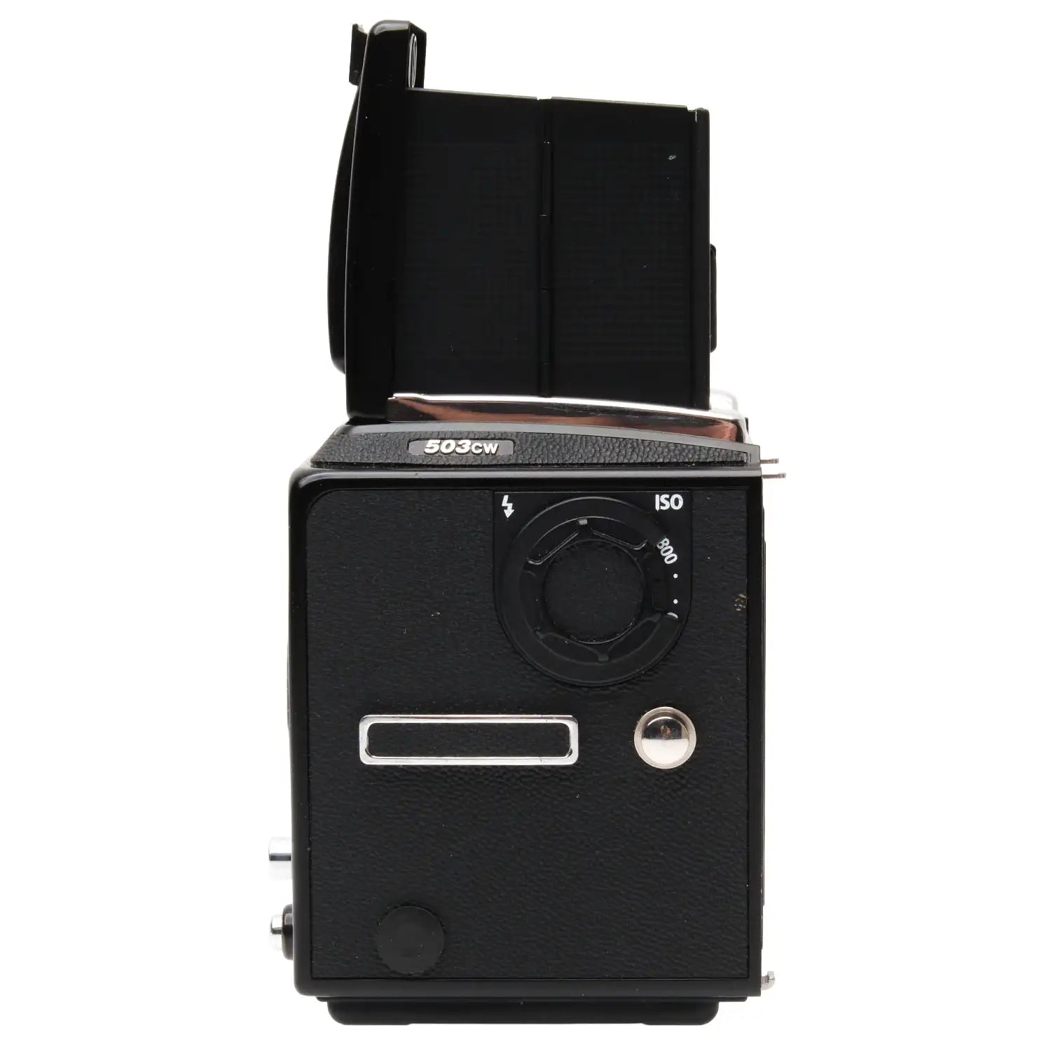 This Hasselblad 503CW (Black), #19ER18748, is in great condition with minor handling wear. I rate it cosmetically a (9). The camera is in proper working order; it fires and the Acute Matte grid focusing screen is clear. The waist-level finder (in matching black) opens, closes, and the magnifier is clear. This camera also includes front & rear covers. Please refer to the photos for details.