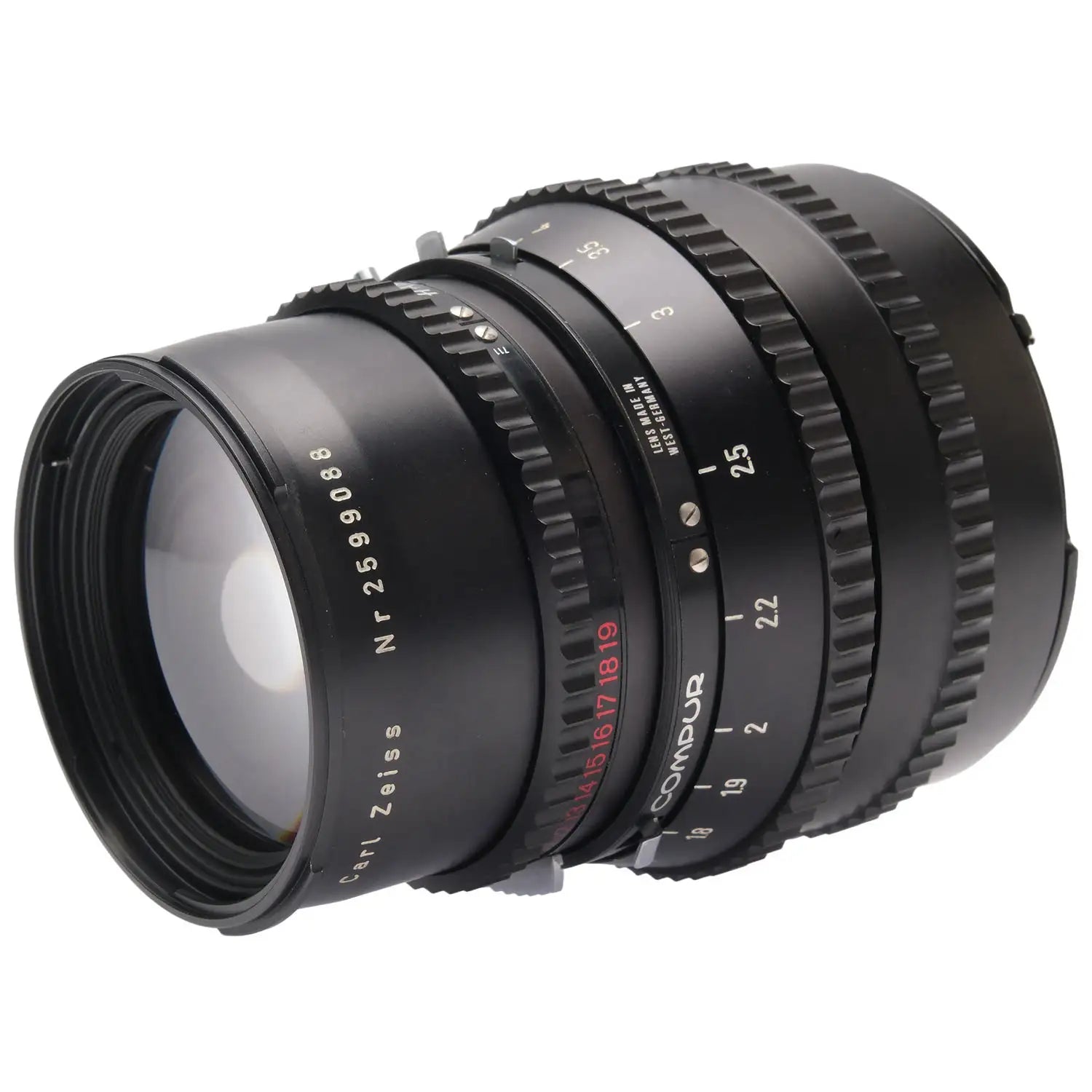 This Hasselblad C 150mm f4 Sonnar T* Lens (Black), #2599088, is in great condition with some handling wear. I rate it cosmetically an (8+). The aperture and shutter speed rings are smooth, but the focus ring is a bit stiff. The aperture functions properly, the shutter is accurate at all speeds, and the glass is clean and clear with no haze, marks, or fungus. There are a few faint specks of dust inside, but they do not affect image quality. This lens includes a front cap, a Hasselblad lens bubble (the base of which doubles as a rear cap), and the original box. Please refer to the photos for details.